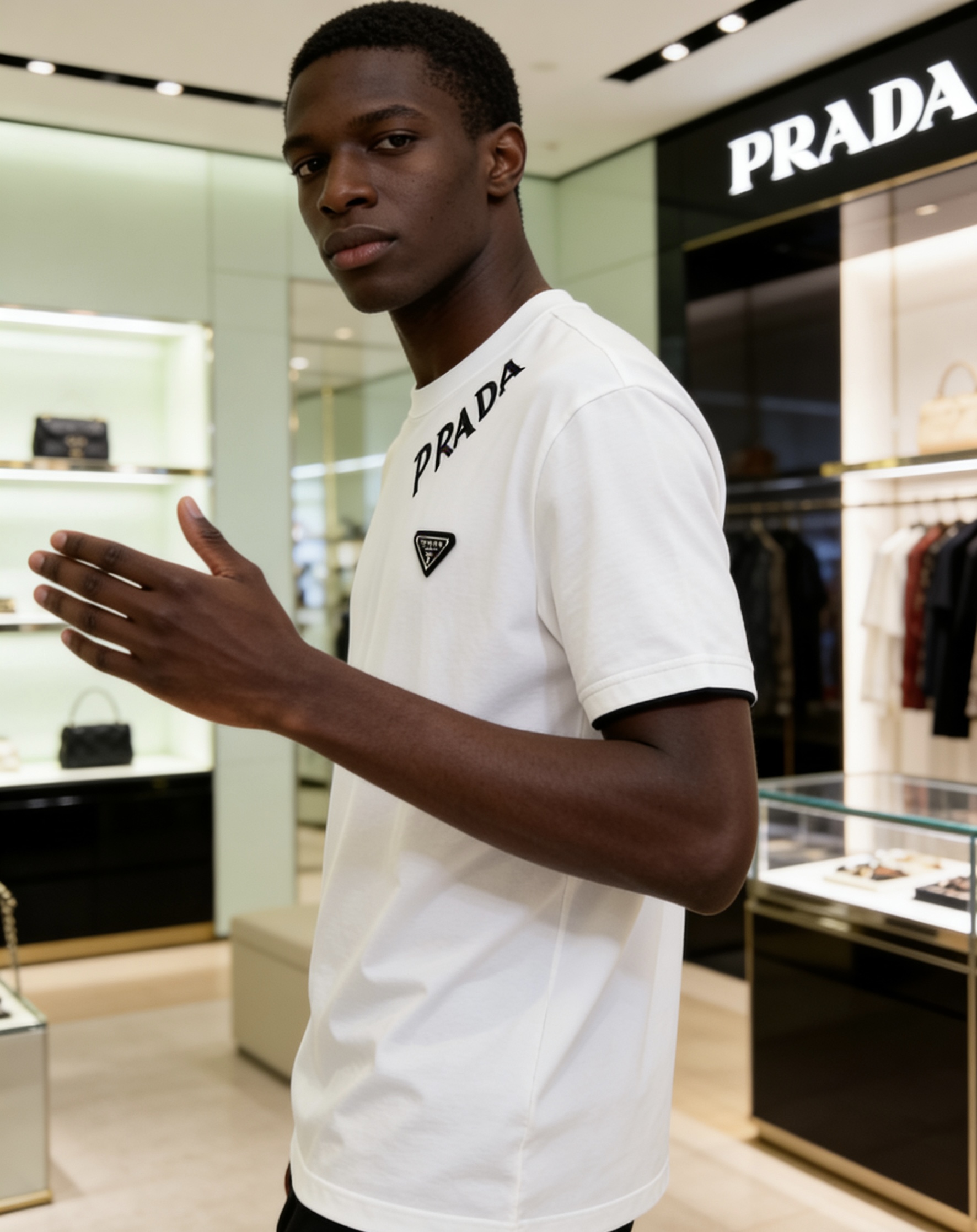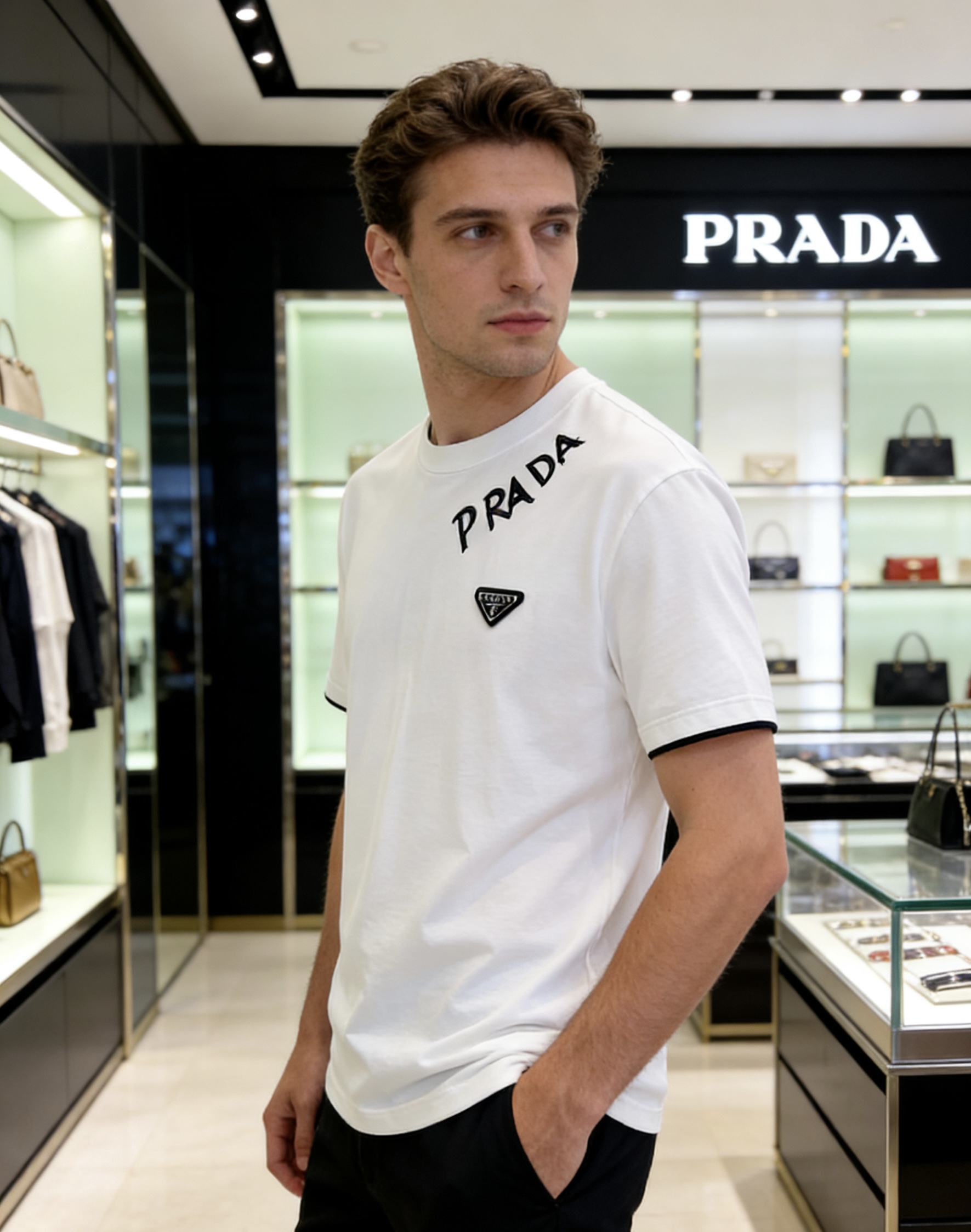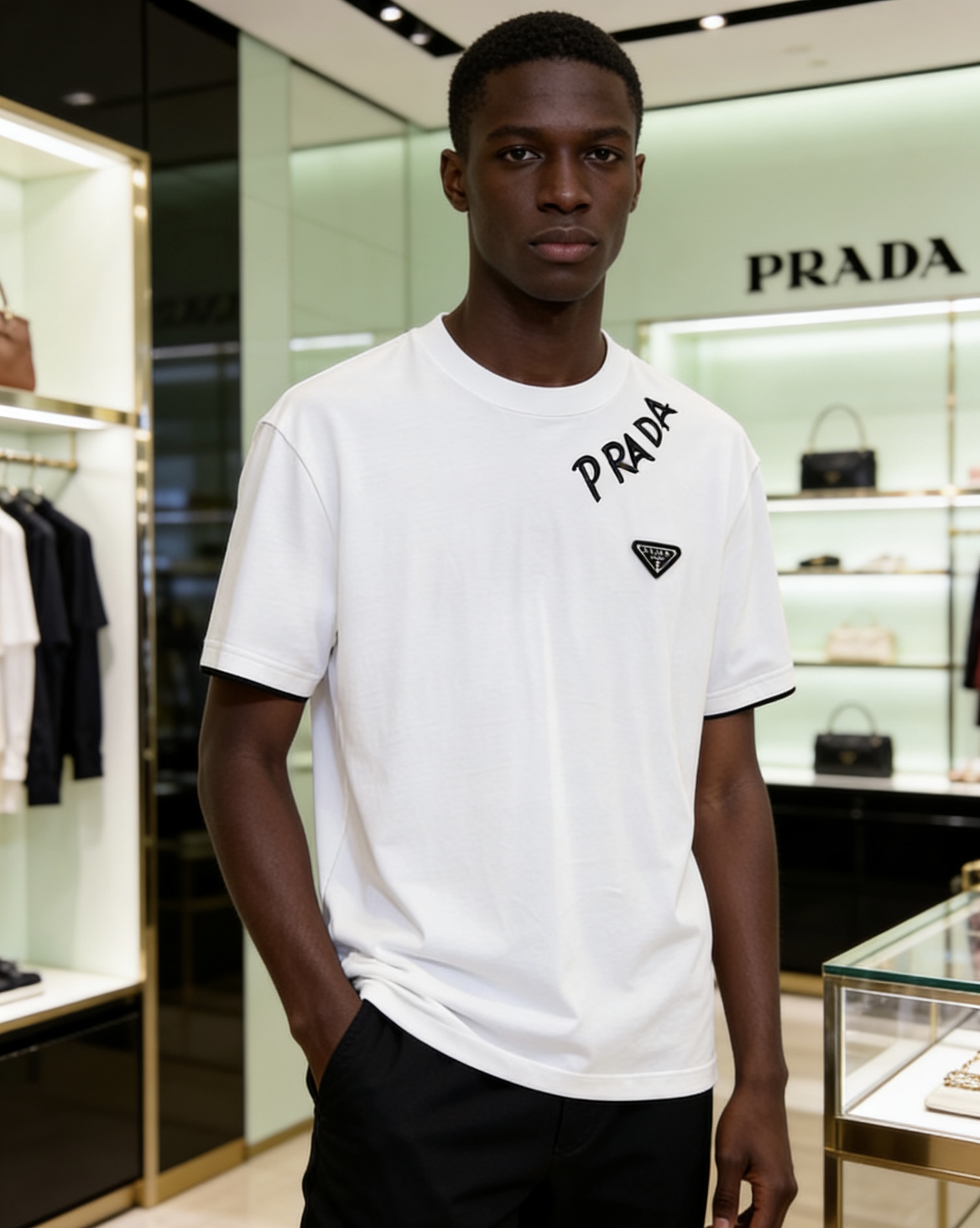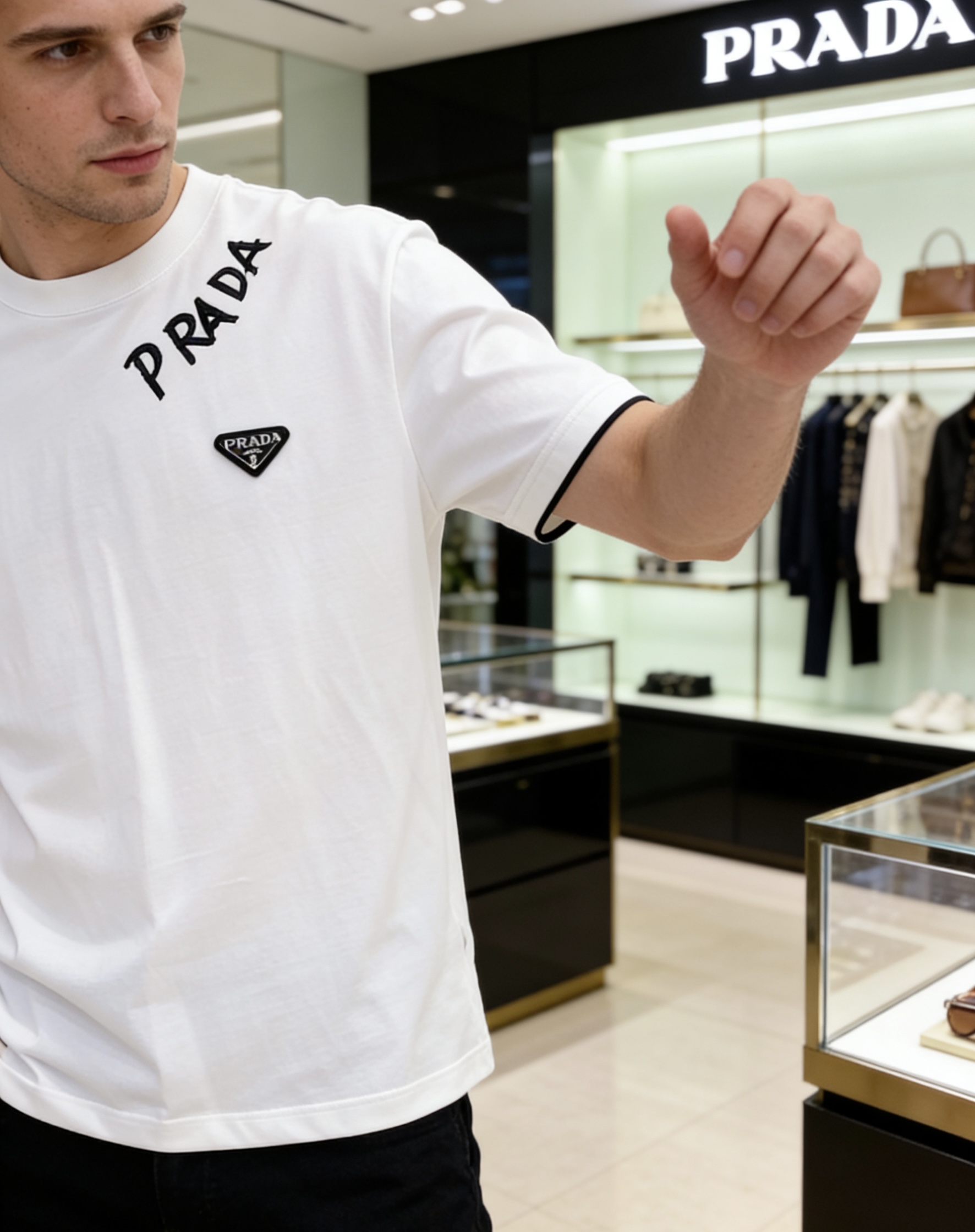 这款衣服是AAAAA 1:1 质量 (非常棒). 使用了和原版一模一样的材料. 商标部分也保持了和普拉达/Prada一样. 图片拍摄是实物衣服拍摄, 您所收到的实物保证和我们图片一模一样.
