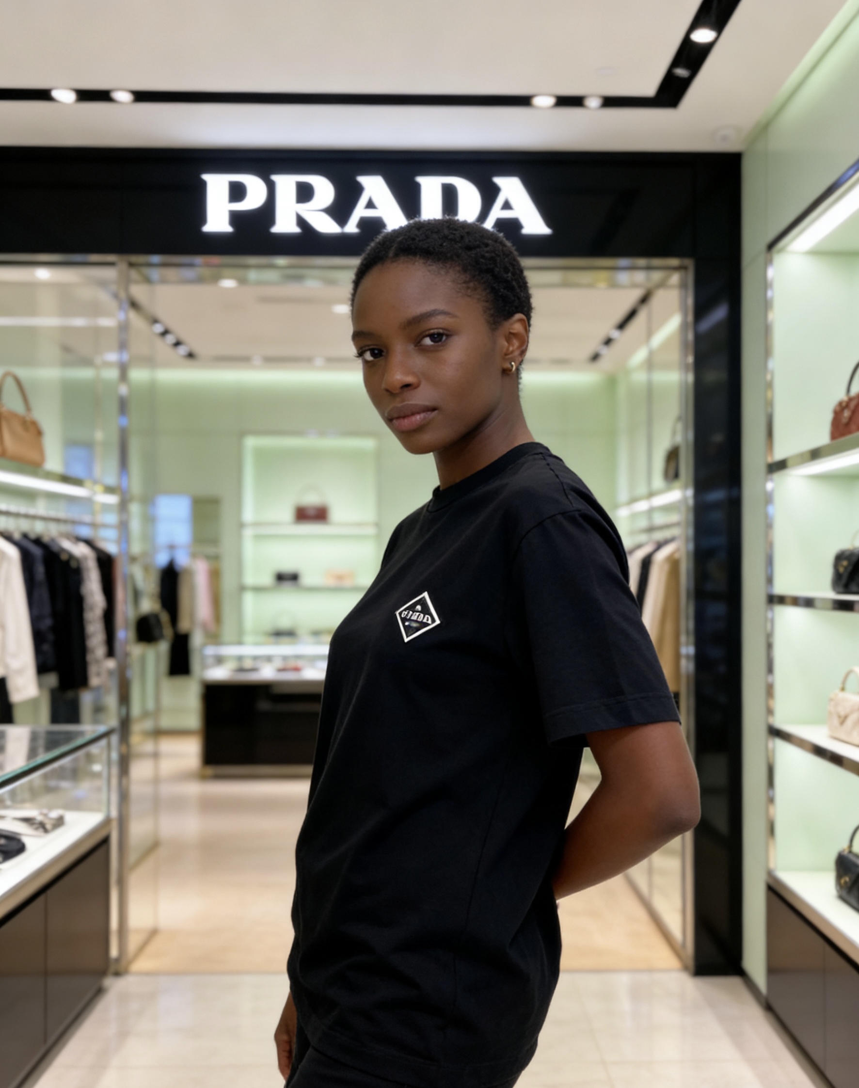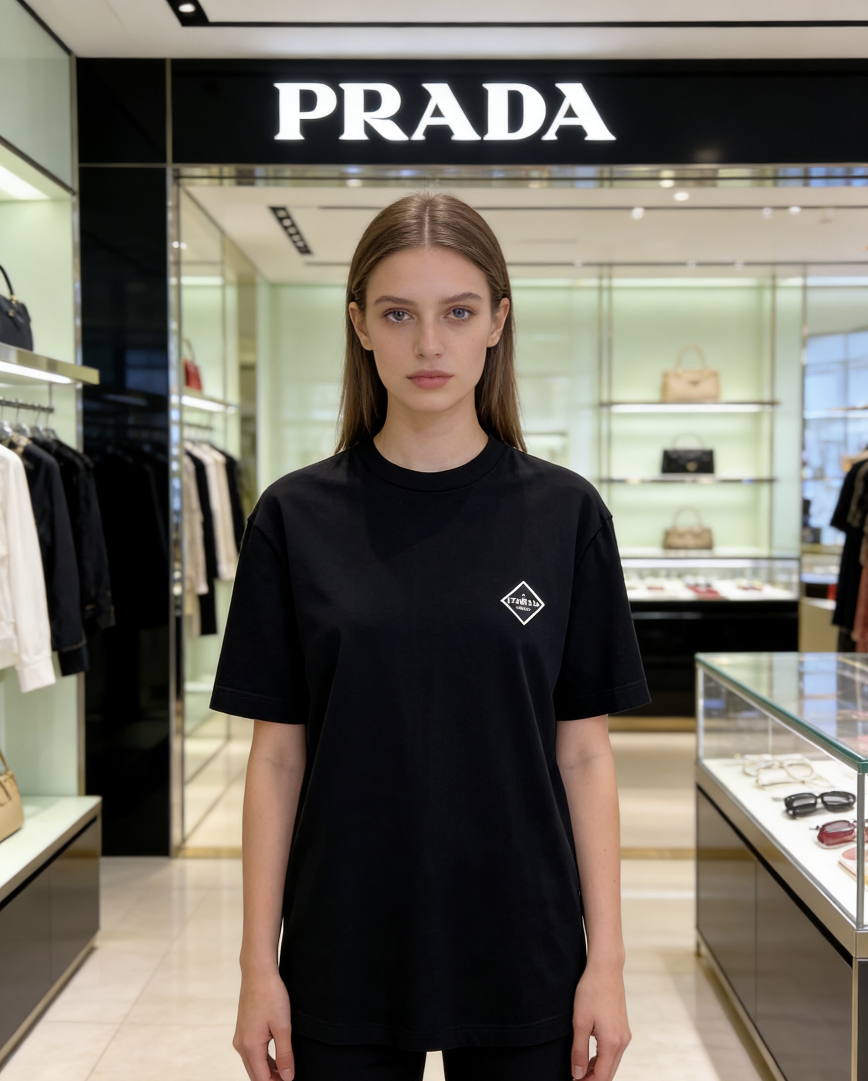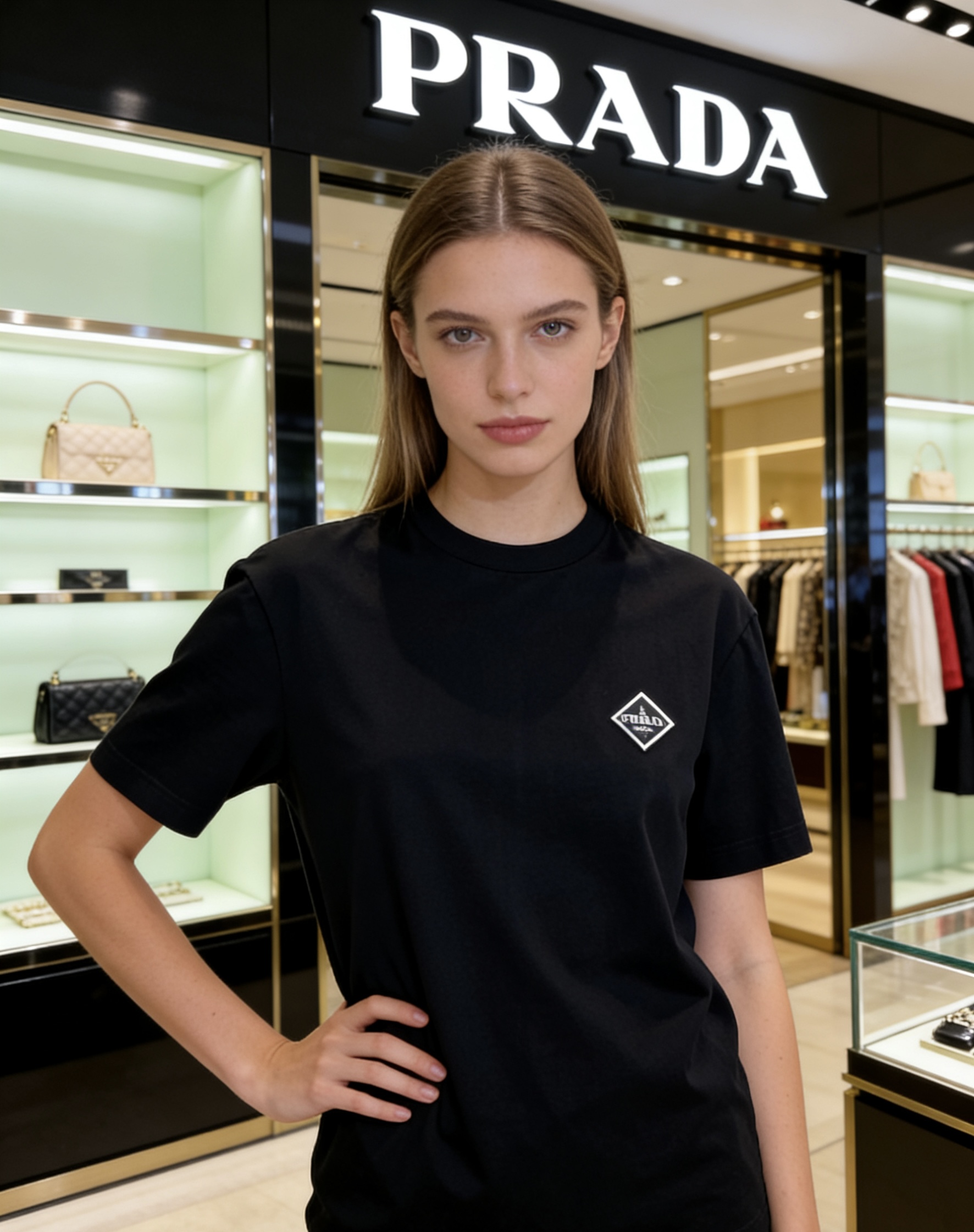这款衣服是AAAAA 1:1 质量 (非常棒). 使用了和原版一模一样的材料. 商标部分也保持了和普拉达/Prada一样. 图片拍摄是实物衣服拍摄, 您所收到的实物保证和我们图片一模一样.