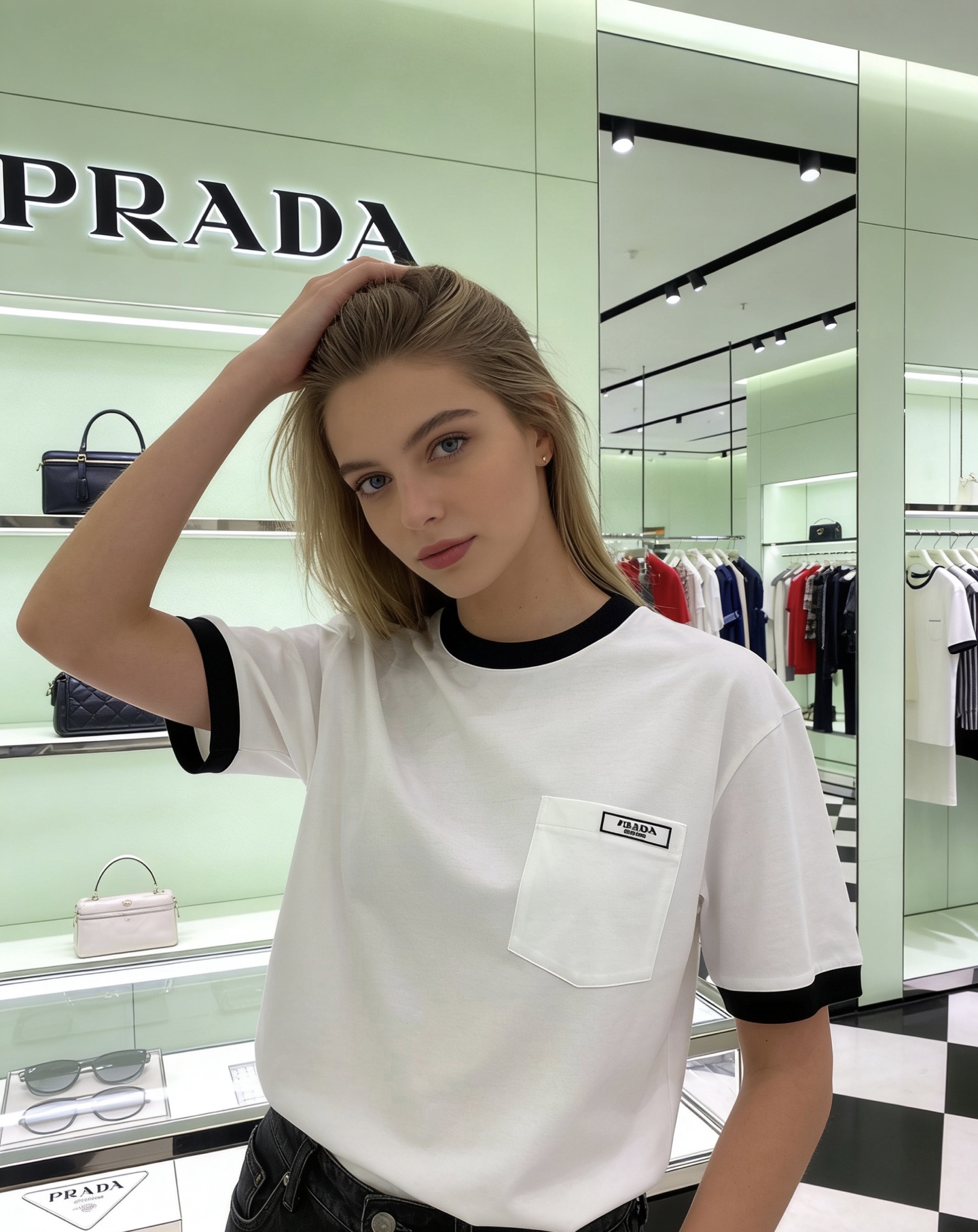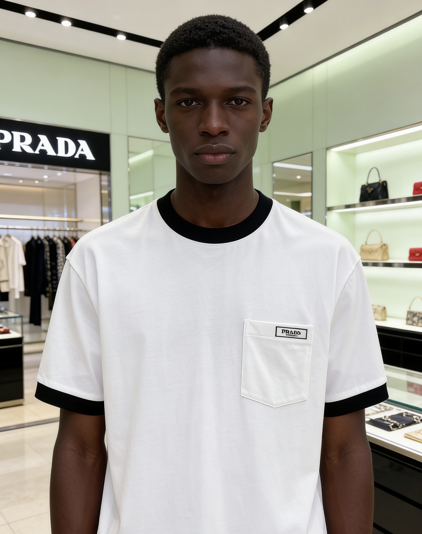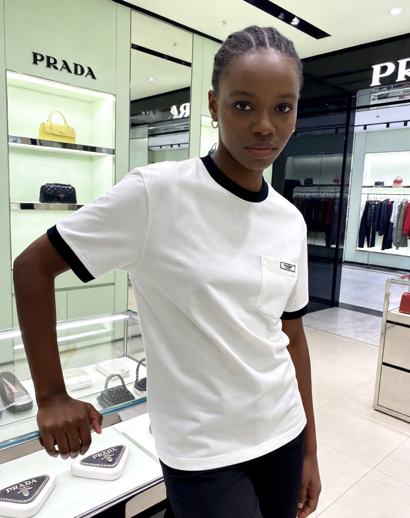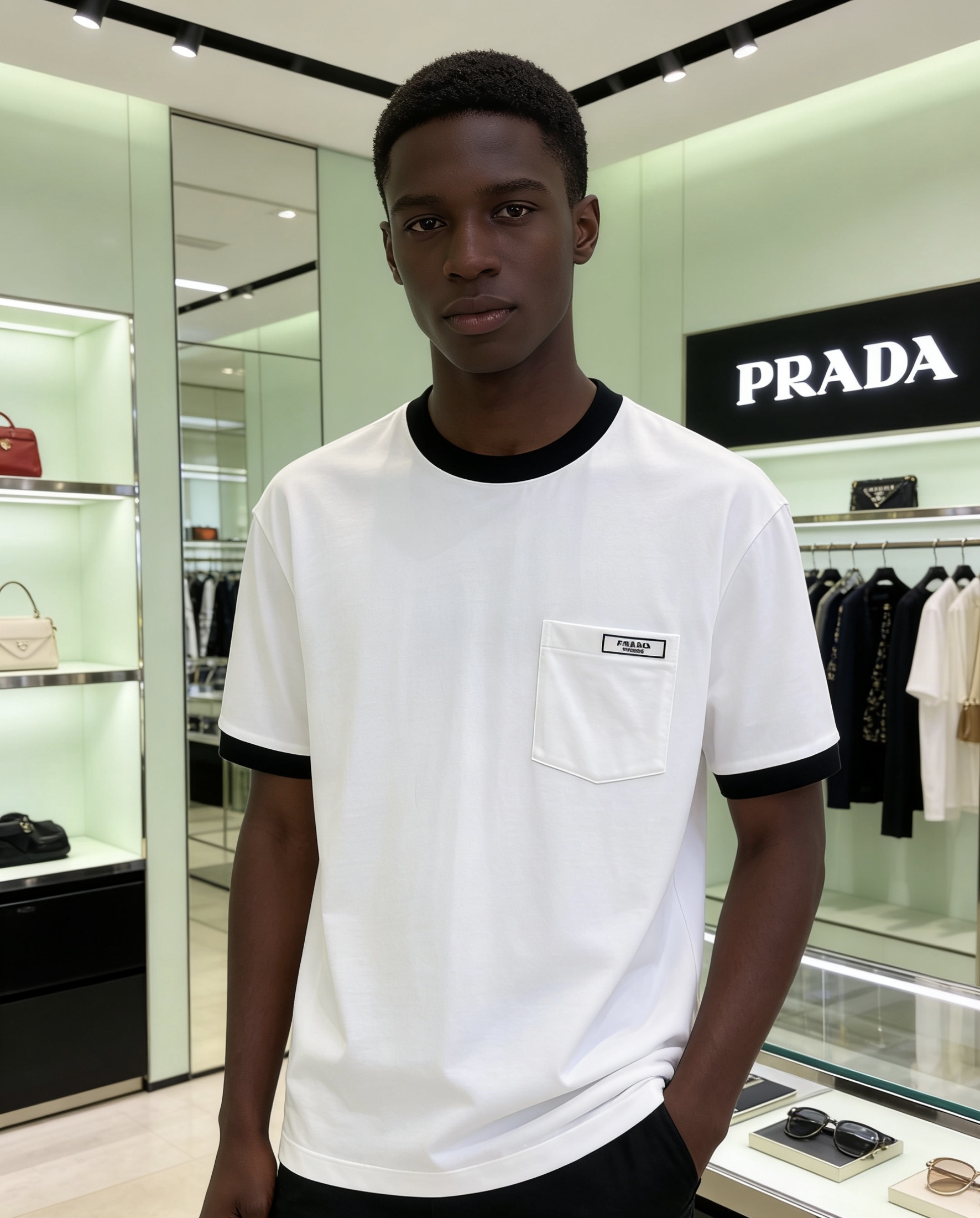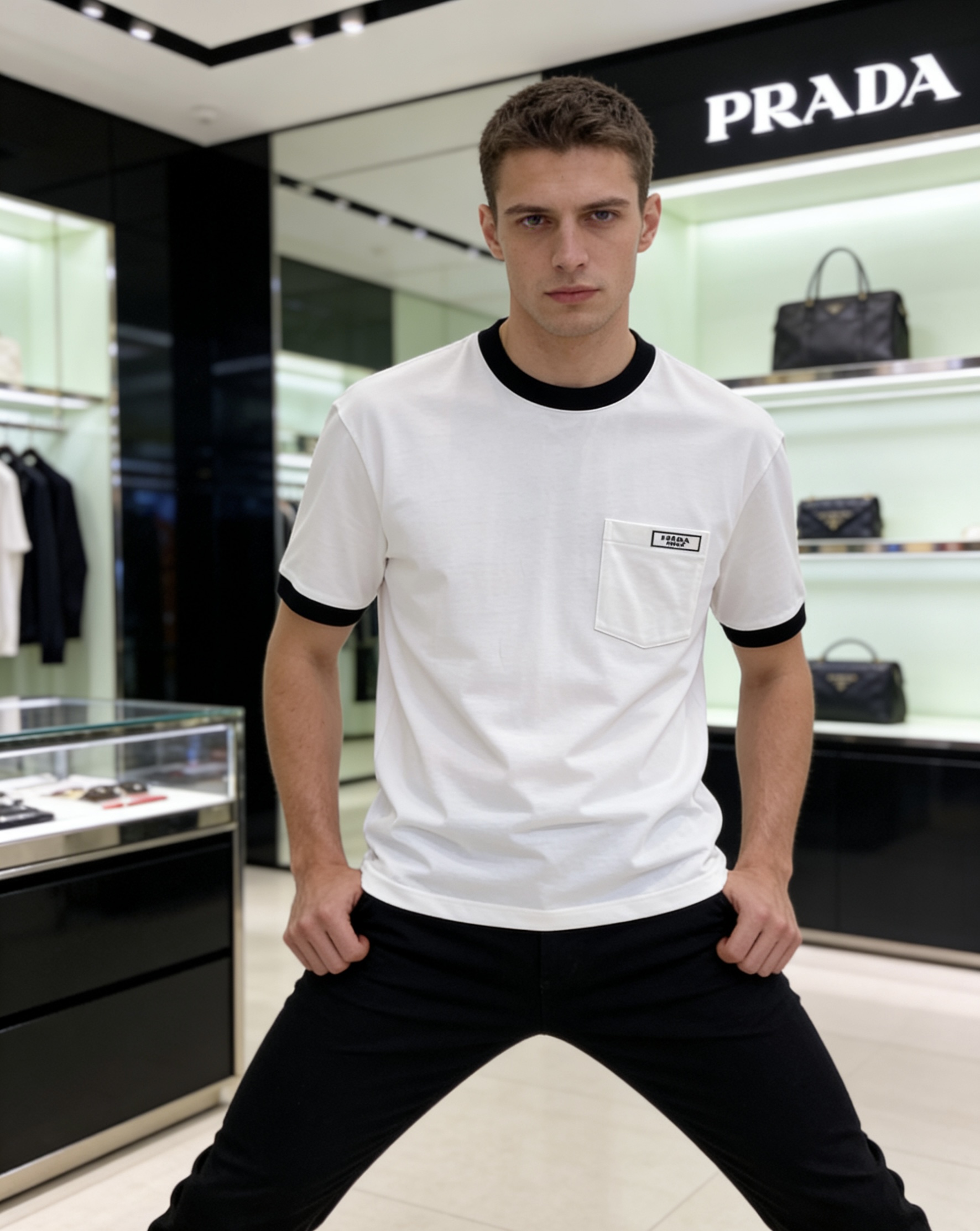 这款衣服是AAAAA 1:1 质量 (非常棒). 使用了和原版一模一样的材料. 商标部分也保持了和普拉达/Prada一样. 图片拍摄是实物衣服拍摄, 您所收到的实物保证和我们图片一模一样.