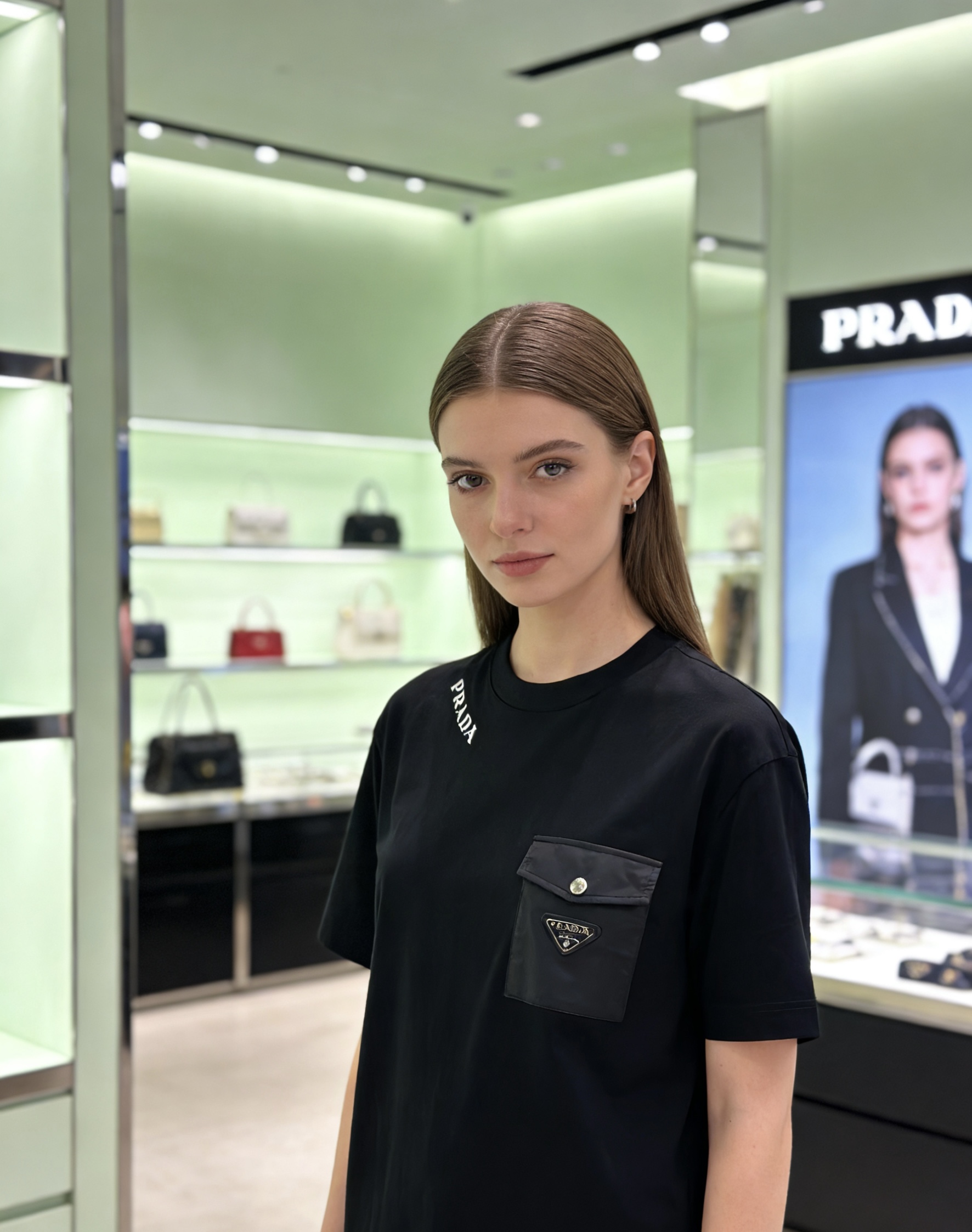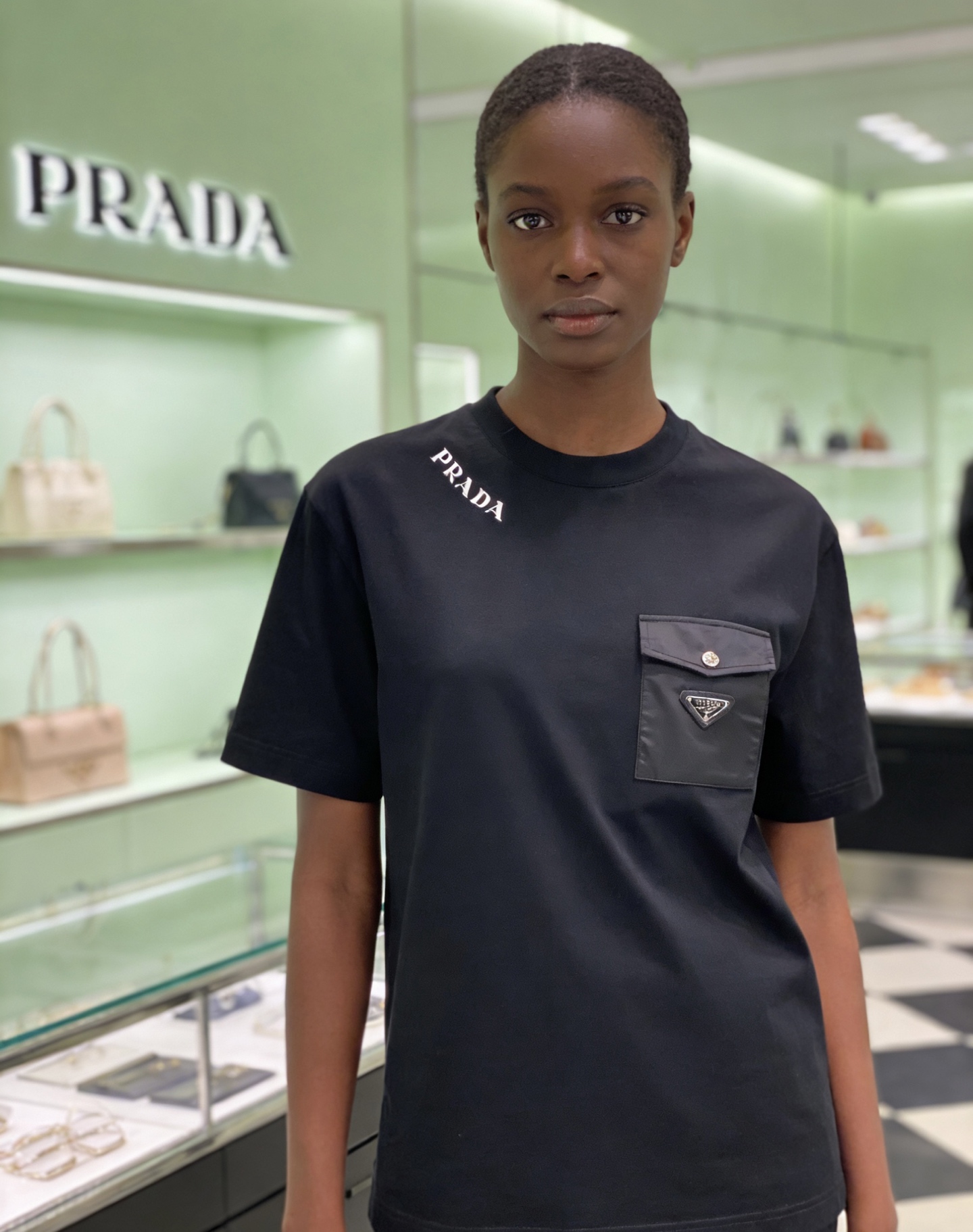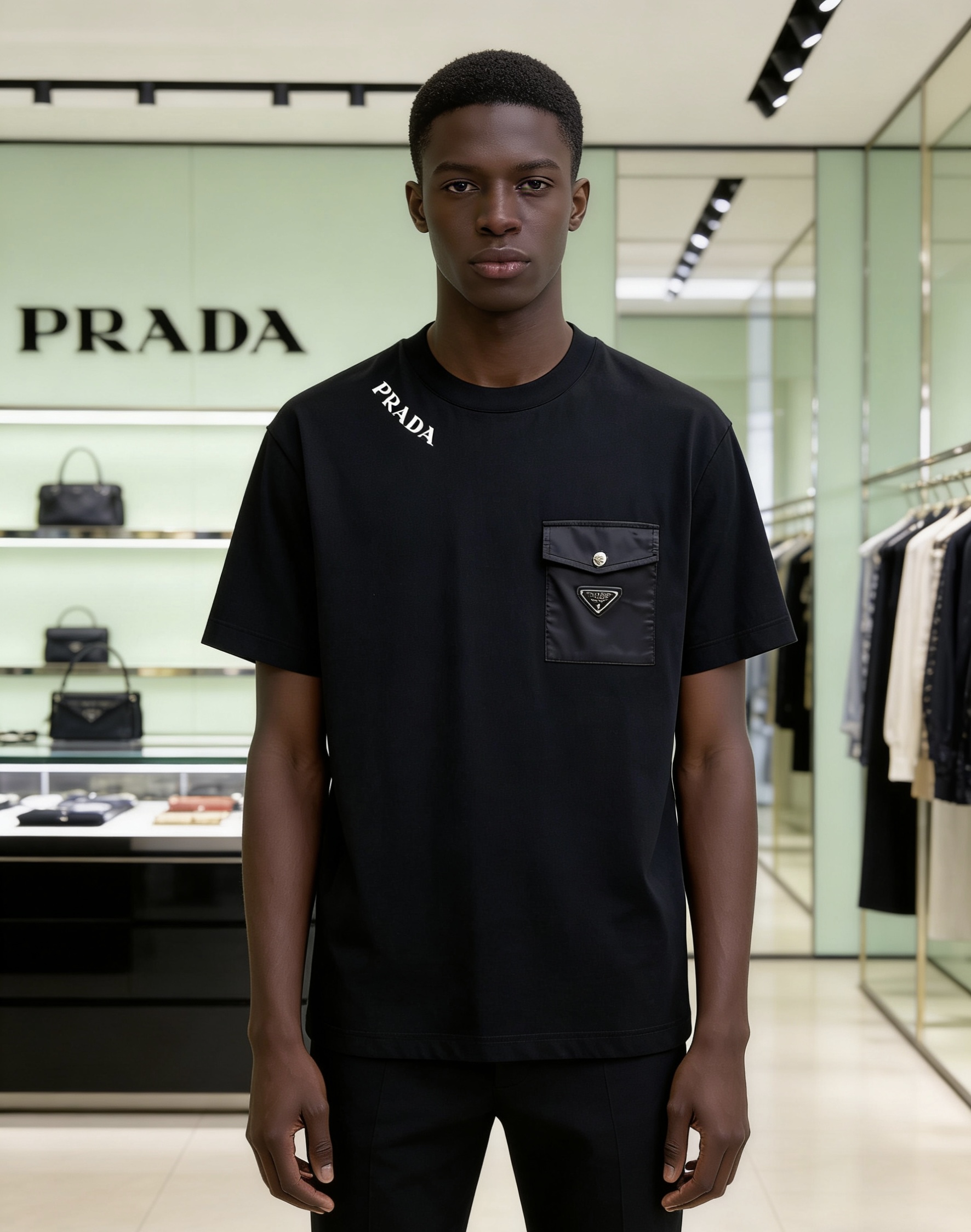 这款衣服是AAAAA 1:1 质量 (非常棒). 使用了和原版一模一样的材料. 商标部分也保持了和普拉达/Prada一样. 图片拍摄是实物衣服拍摄, 您所收到的实物保证和我们图片一模一样.