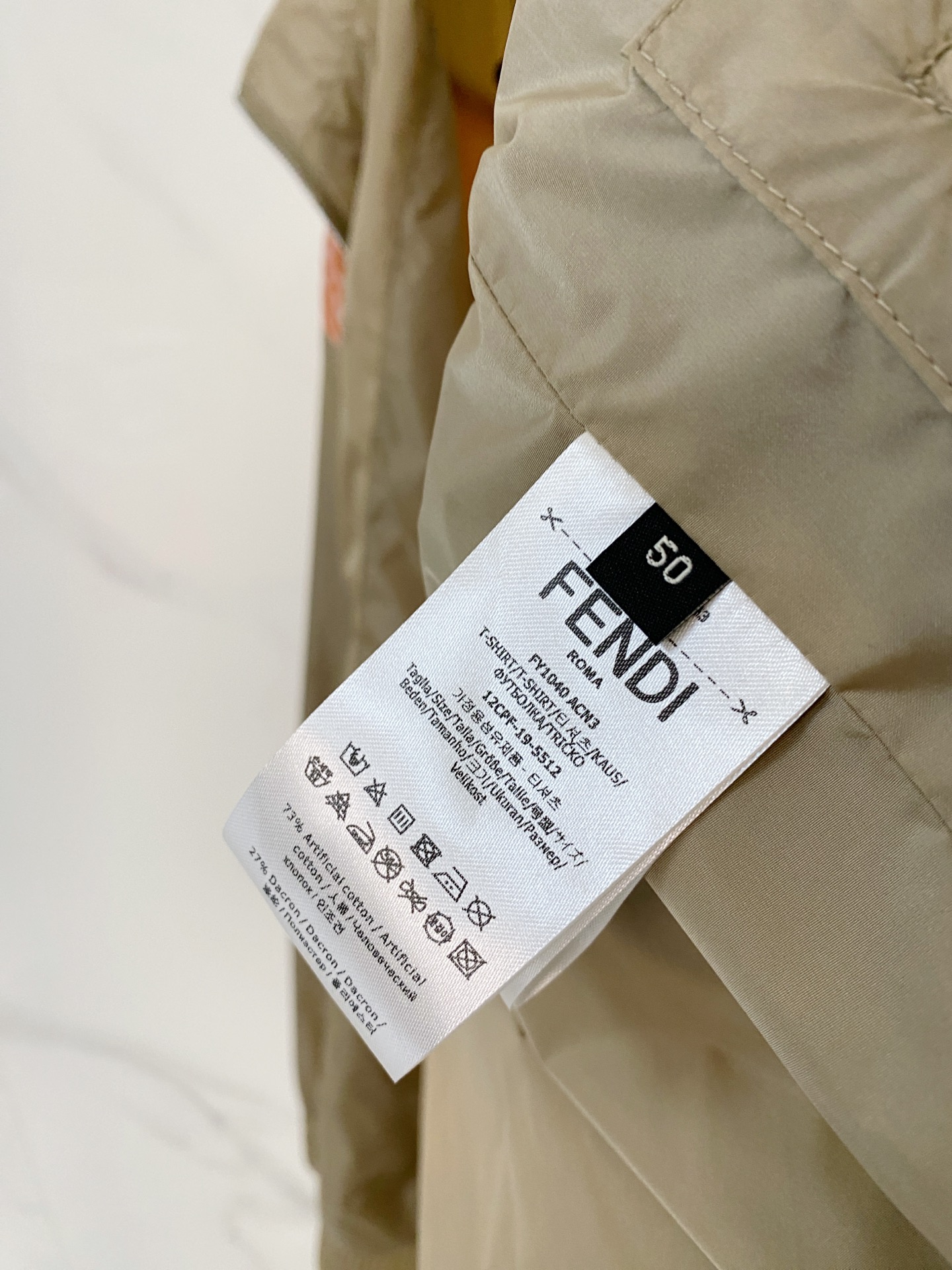 这款衣服是AAAAA 1:1 质量 (非常棒). 使用了和原版一模一样的材料. 商标部分也保持了和芬迪/Fendi一样. 图片拍摄是实物衣服拍摄, 您所收到的实物保证和我们图片一模一样.