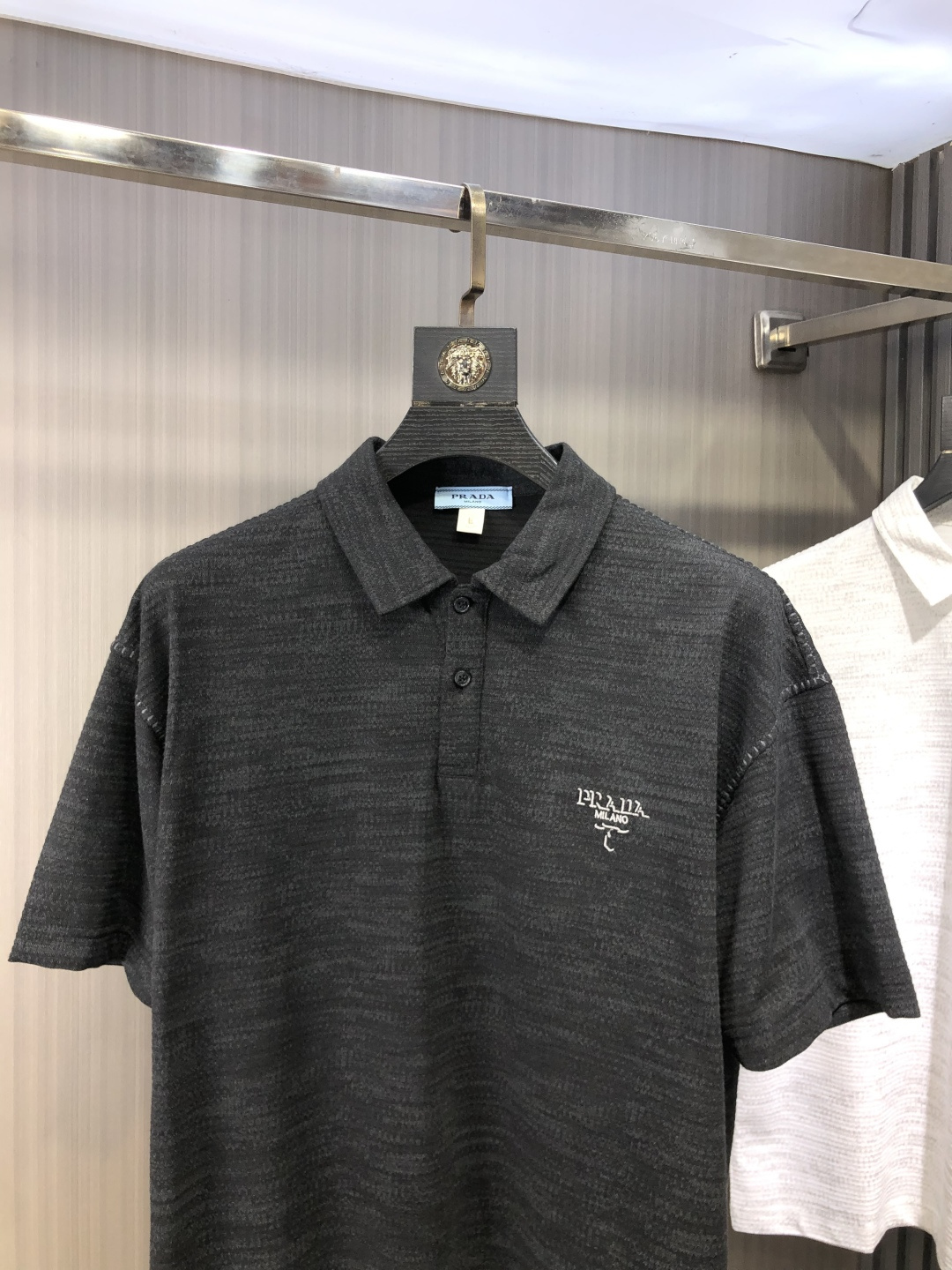 这款衣服是AAAAA 1:1 质量 (非常棒). 使用了和原版一模一样的材料. 商标部分也保持了和普拉达/Prada一样. 图片拍摄是实物衣服拍摄, 您所收到的实物保证和我们图片一模一样.