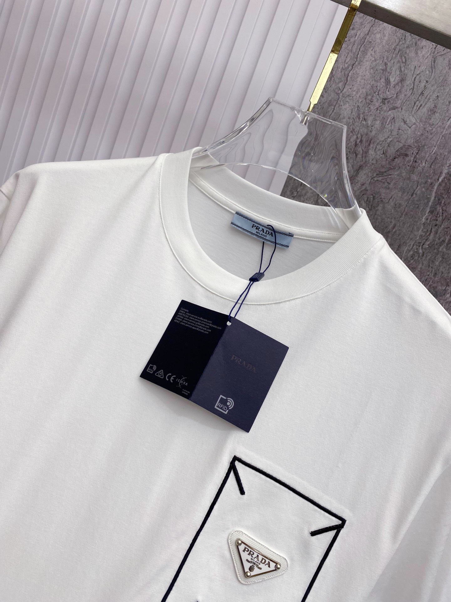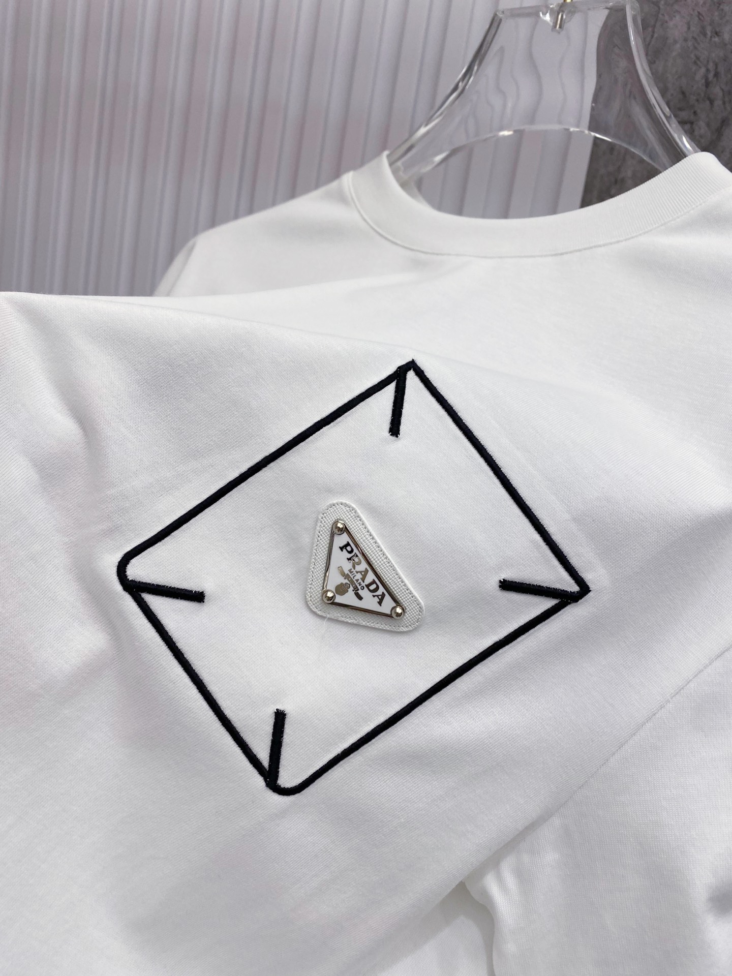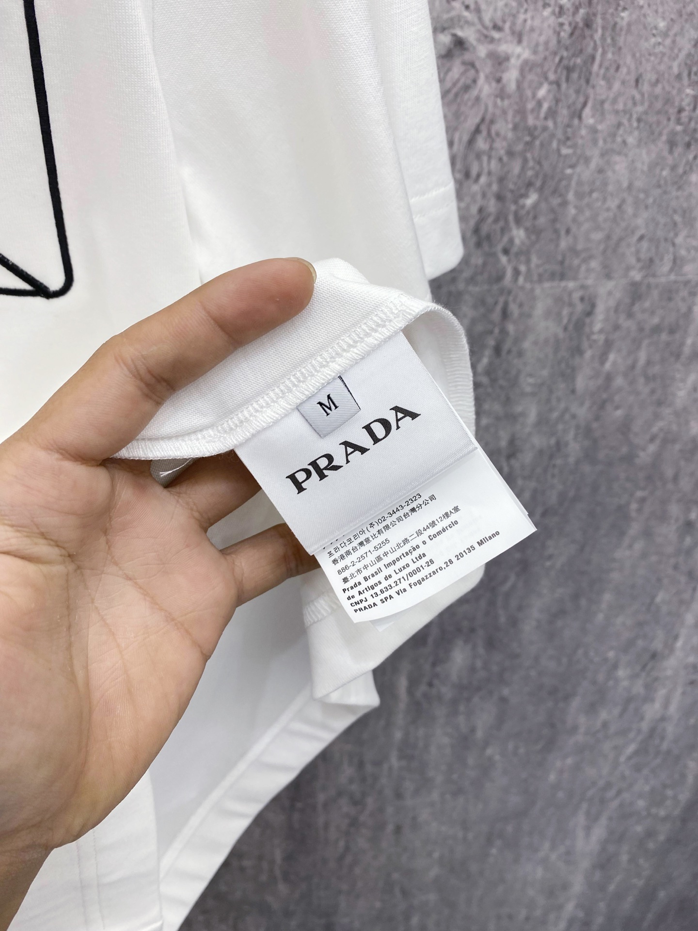 这款衣服是AAAAA 1:1 质量 (非常棒). 使用了和原版一模一样的材料. 商标部分也保持了和普拉达/Prada一样. 图片拍摄是实物衣服拍摄, 您所收到的实物保证和我们图片一模一样.