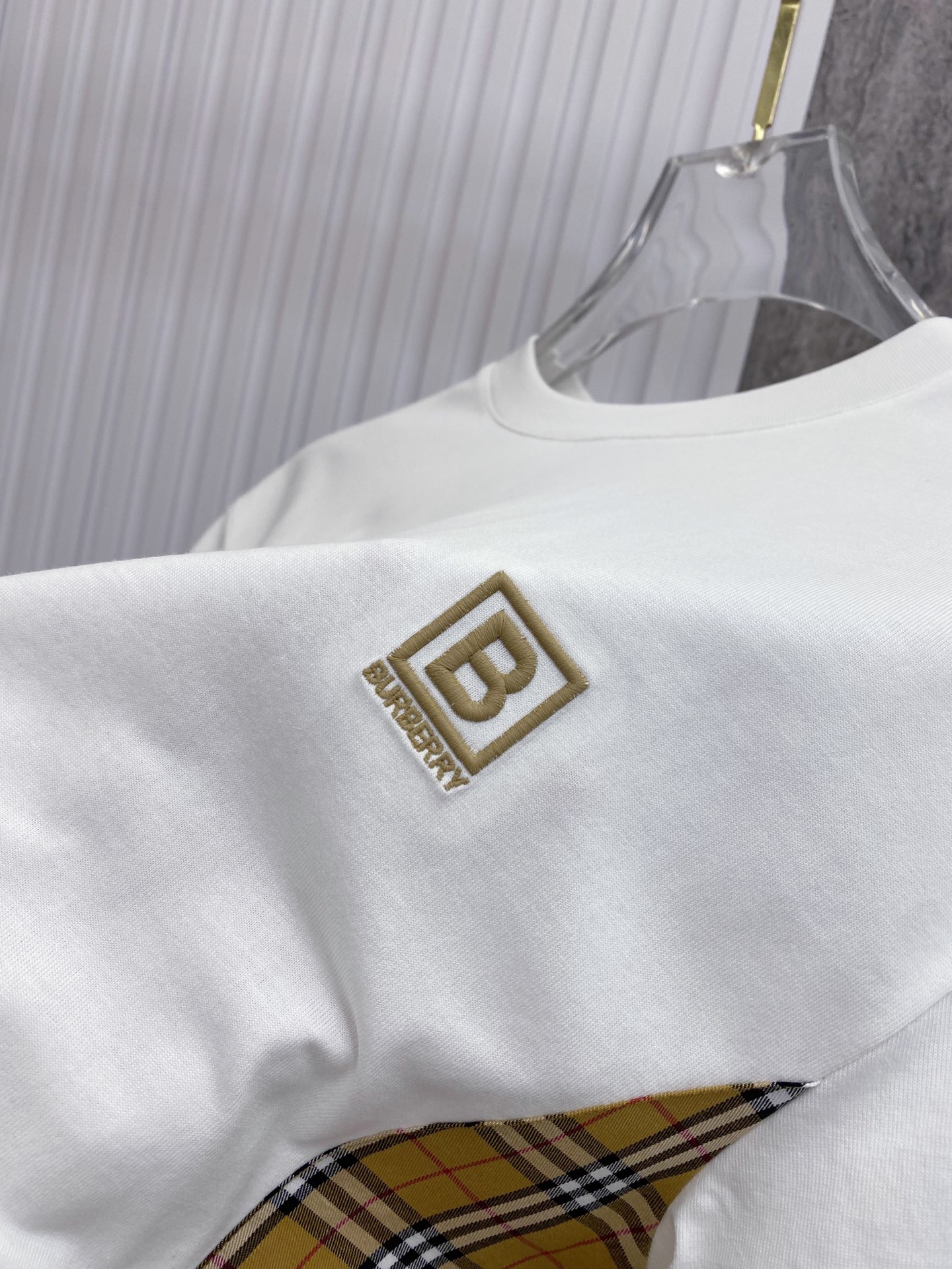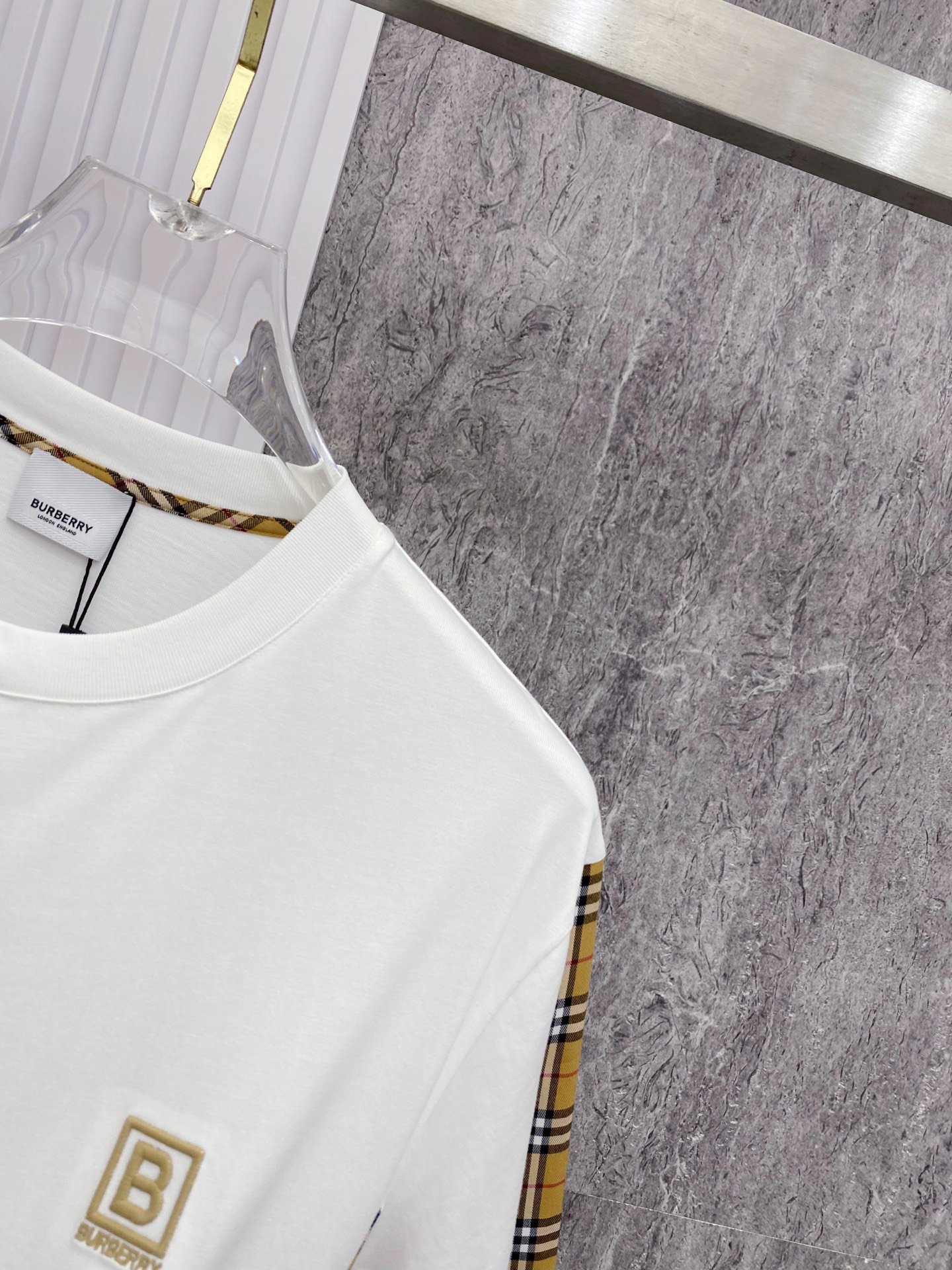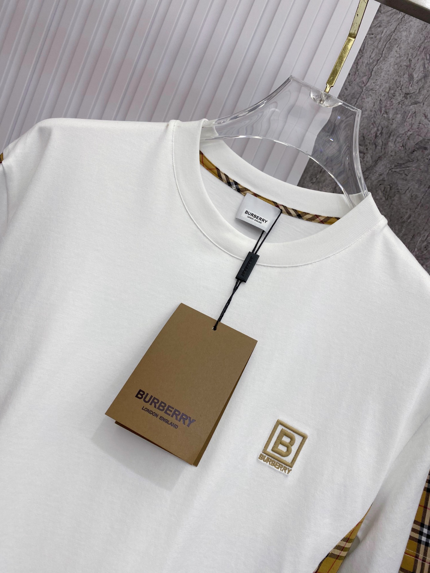 这款衣服是AAAAA 1:1 质量 (非常棒). 使用了和原版一模一样的材料. 商标部分也保持了和巴宝莉/Burberry一样. 图片拍摄是实物衣服拍摄, 您所收到的实物保证和我们图片一模一样.