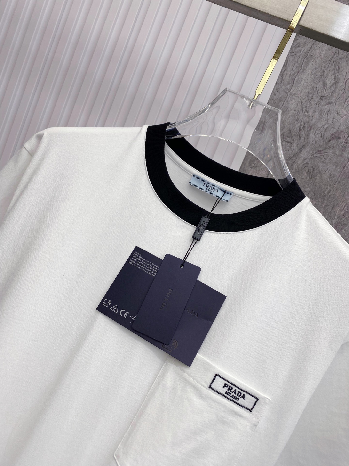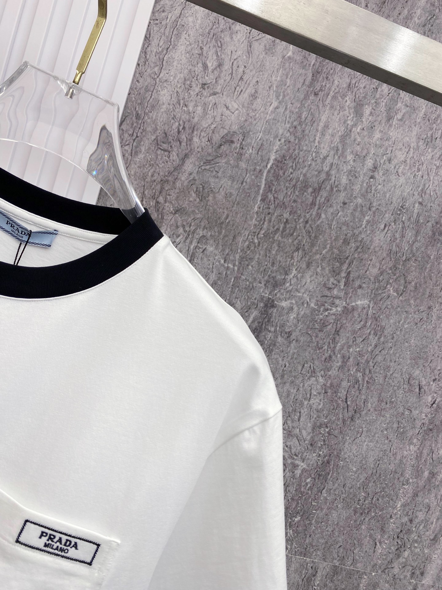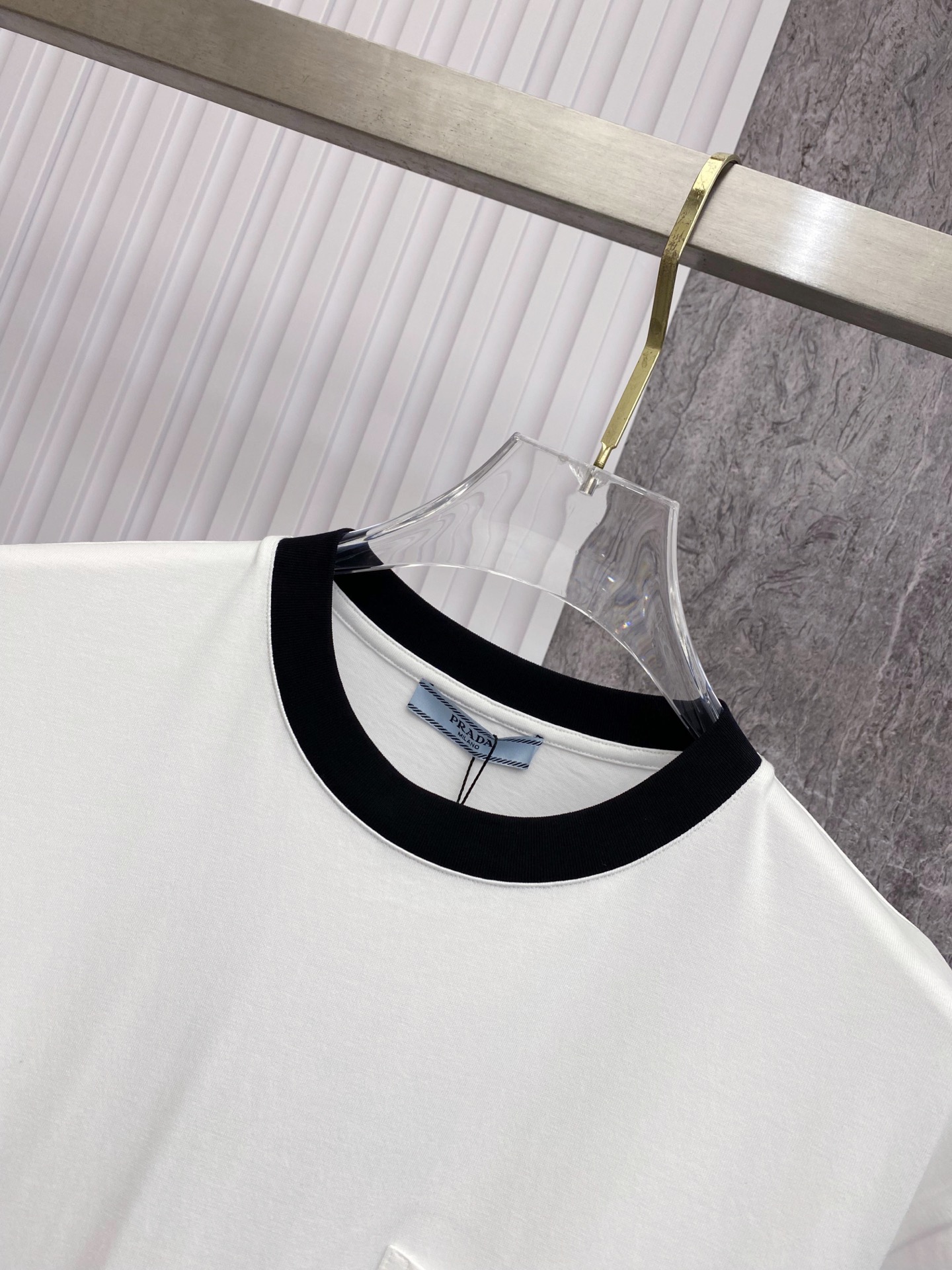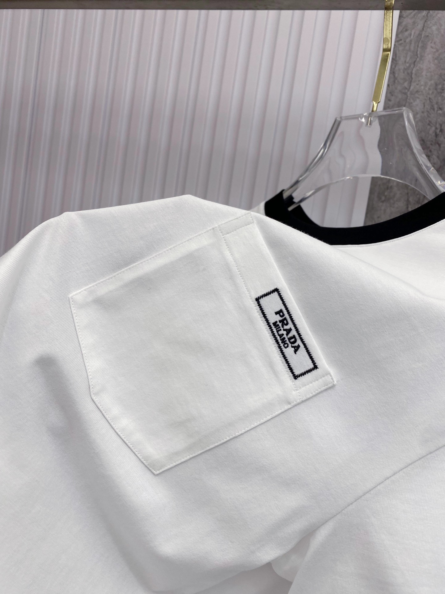 这款衣服是AAAAA 1:1 质量 (非常棒). 使用了和原版一模一样的材料. 商标部分也保持了和普拉达/Prada一样. 图片拍摄是实物衣服拍摄, 您所收到的实物保证和我们图片一模一样.
