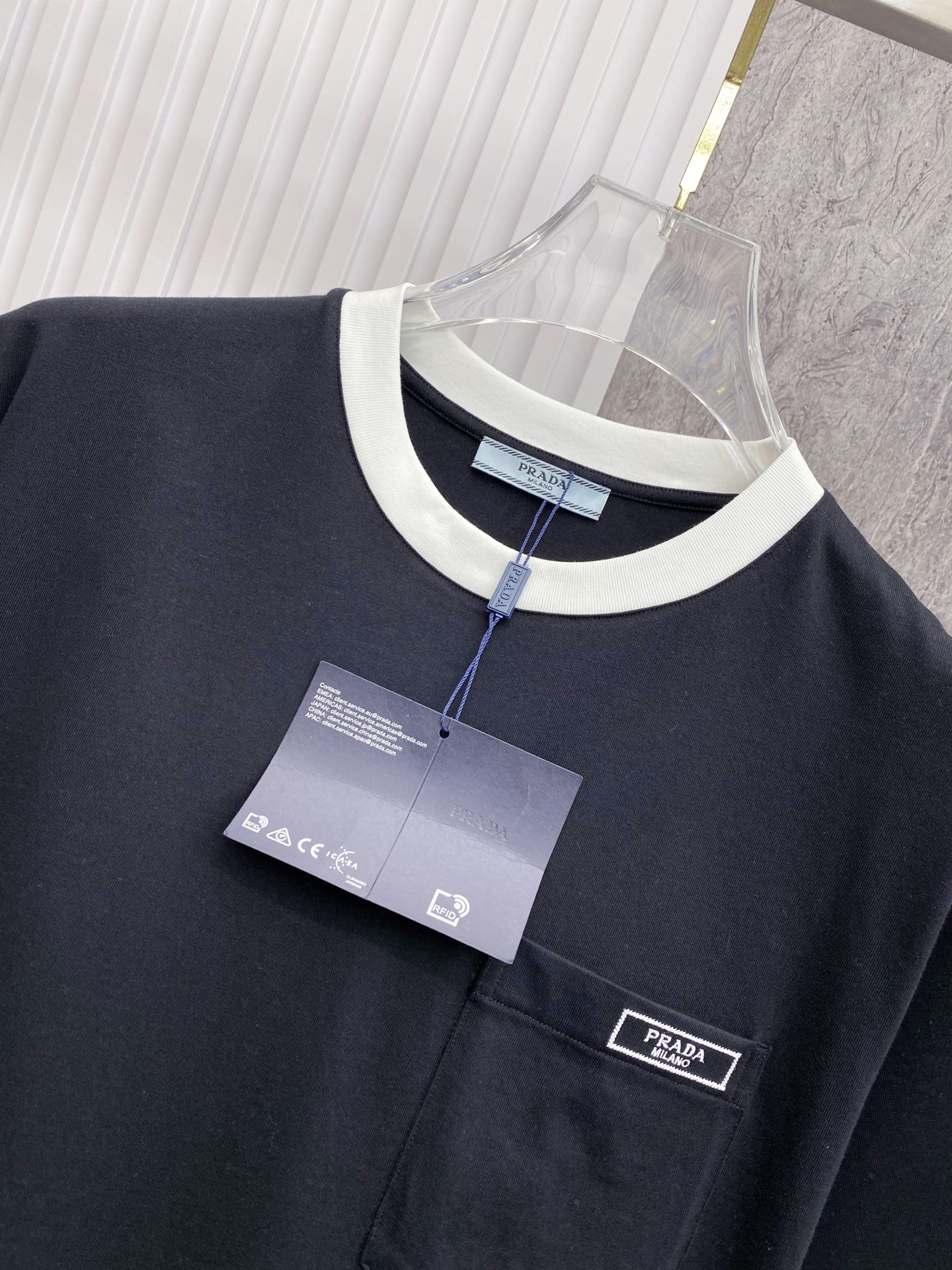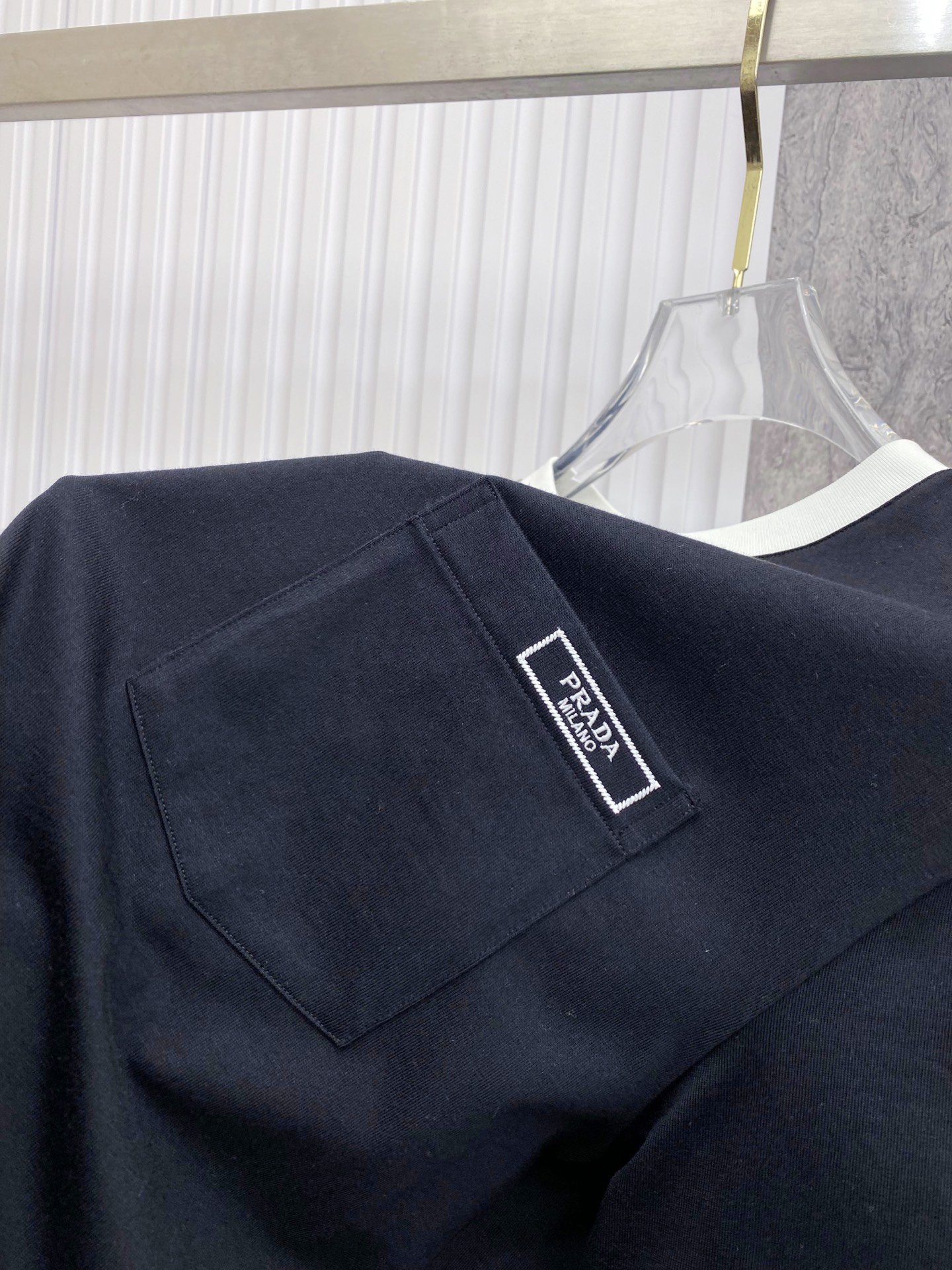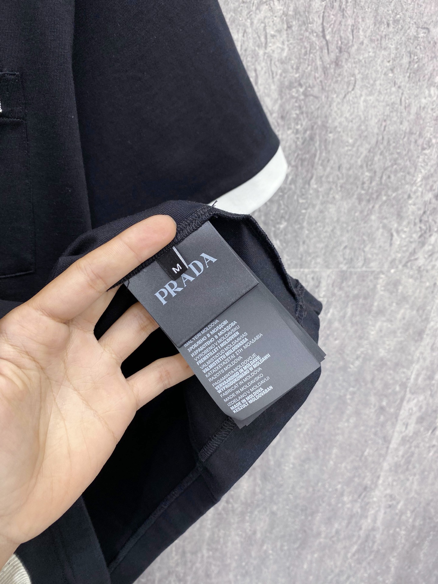 这款衣服是AAAAA 1:1 质量 (非常棒). 使用了和原版一模一样的材料. 商标部分也保持了和普拉达/Prada一样. 图片拍摄是实物衣服拍摄, 您所收到的实物保证和我们图片一模一样.
