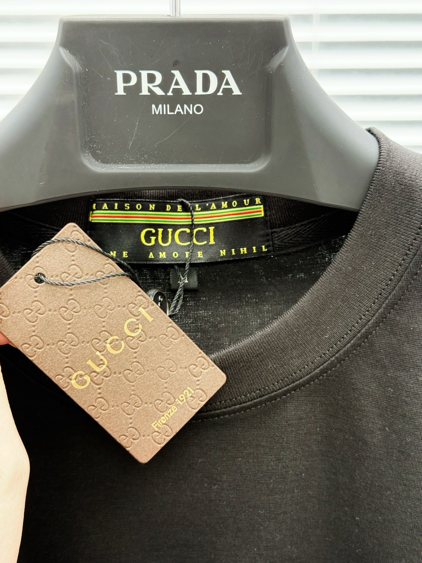 这款衣服是AAAAA 1:1 质量 (非常棒). 使用了和原版一模一样的材料. 商标部分也保持了和古奇/Gucci一样. 图片拍摄是实物衣服拍摄, 您所收到的实物保证和我们图片一模一样.