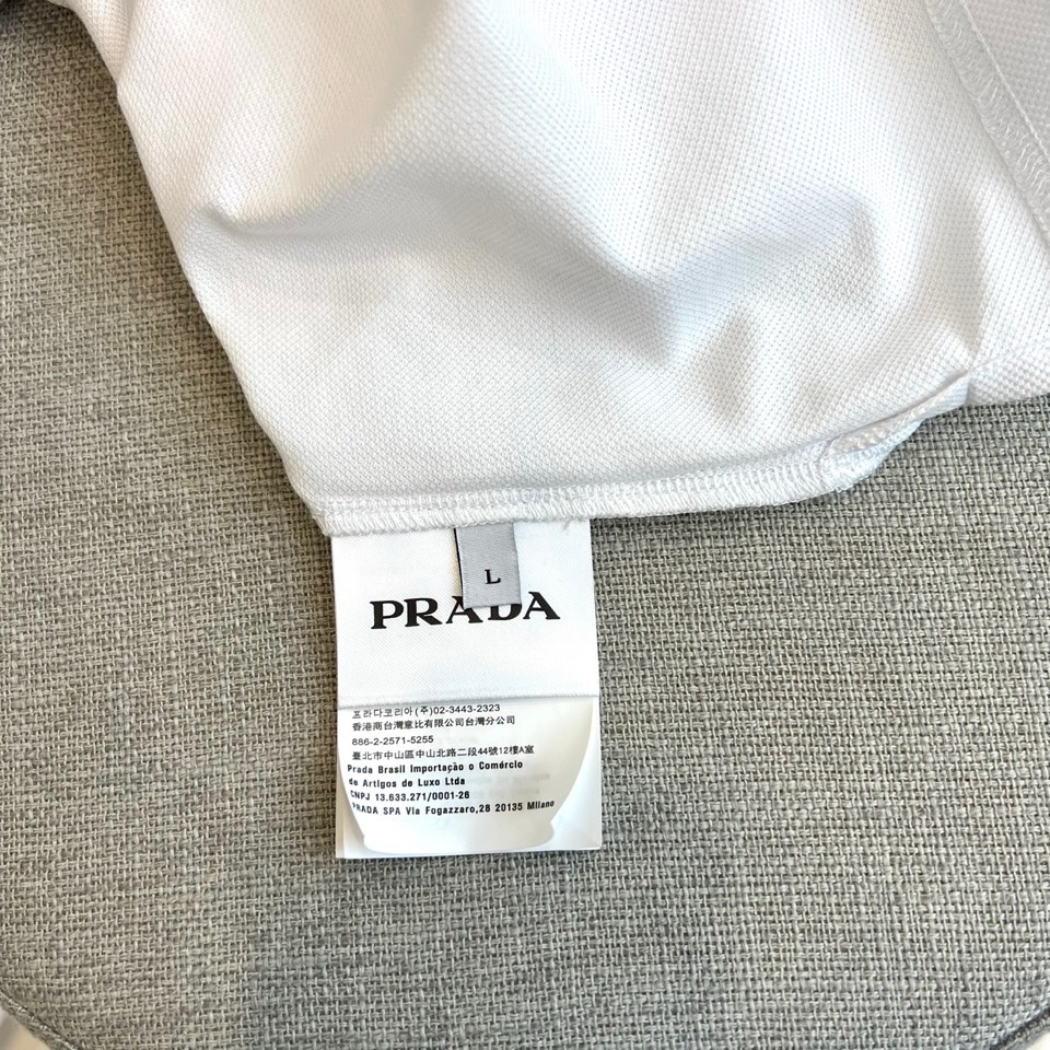 这款衣服是AAAAA 1:1 质量 (非常棒). 使用了和原版一模一样的材料. 商标部分也保持了和普拉达/Prada一样. 图片拍摄是实物衣服拍摄, 您所收到的实物保证和我们图片一模一样.