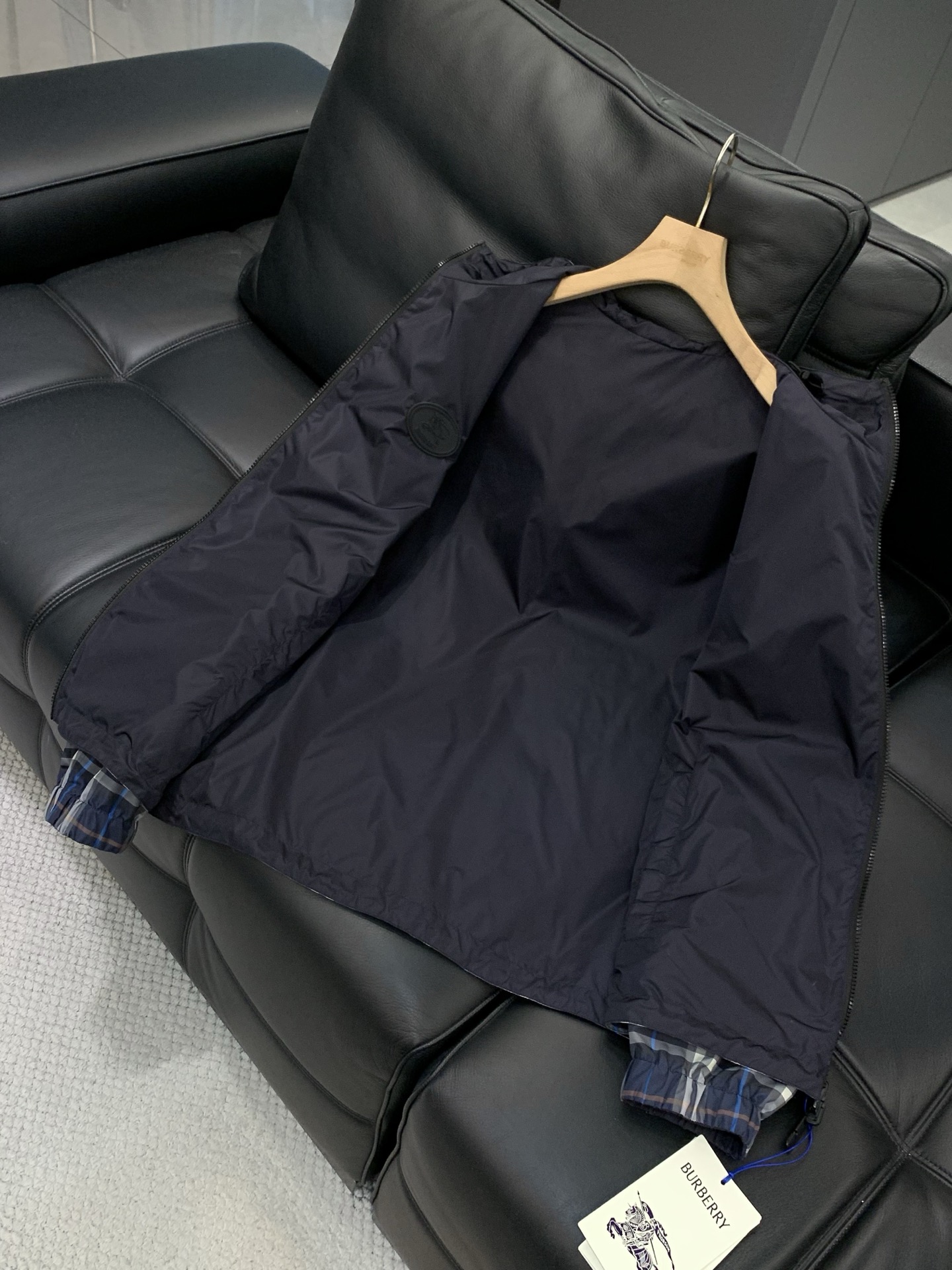 这款衣服是AAAAA 1:1 质量 (非常棒). 使用了和原版一模一样的材料. 商标部分也保持了和巴宝莉/Burberry一样. 图片拍摄是实物衣服拍摄, 您所收到的实物保证和我们图片一模一样.