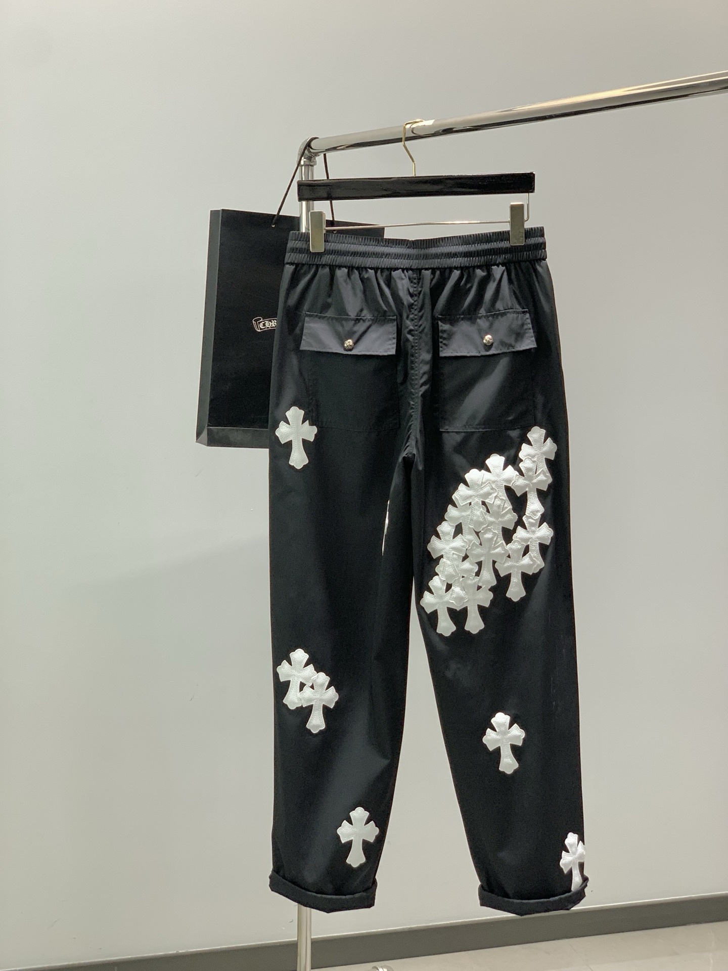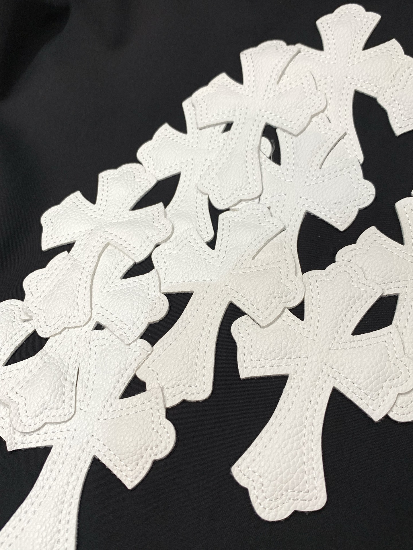 这款衣服是AAAAA 1:1 质量 (非常棒). 使用了和原版一模一样的材料. 商标部分也保持了和克罗心/Chrome Hearts一样. 图片拍摄是实物衣服拍摄, 您所收到的实物保证和我们图片一模一样.