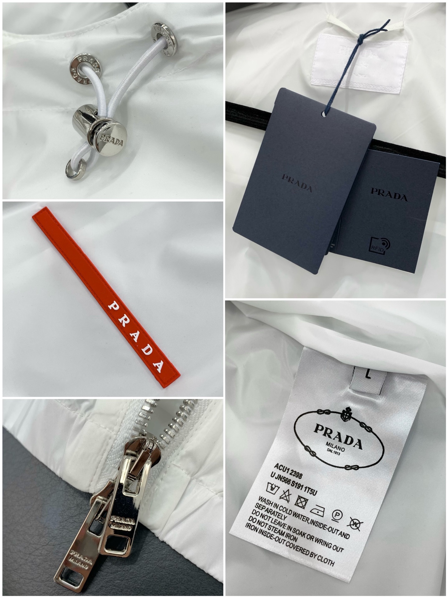 这款衣服是AAAAA 1:1 质量 (非常棒). 使用了和原版一模一样的材料. 商标部分也保持了和普拉达/Prada一样. 图片拍摄是实物衣服拍摄, 您所收到的实物保证和我们图片一模一样.