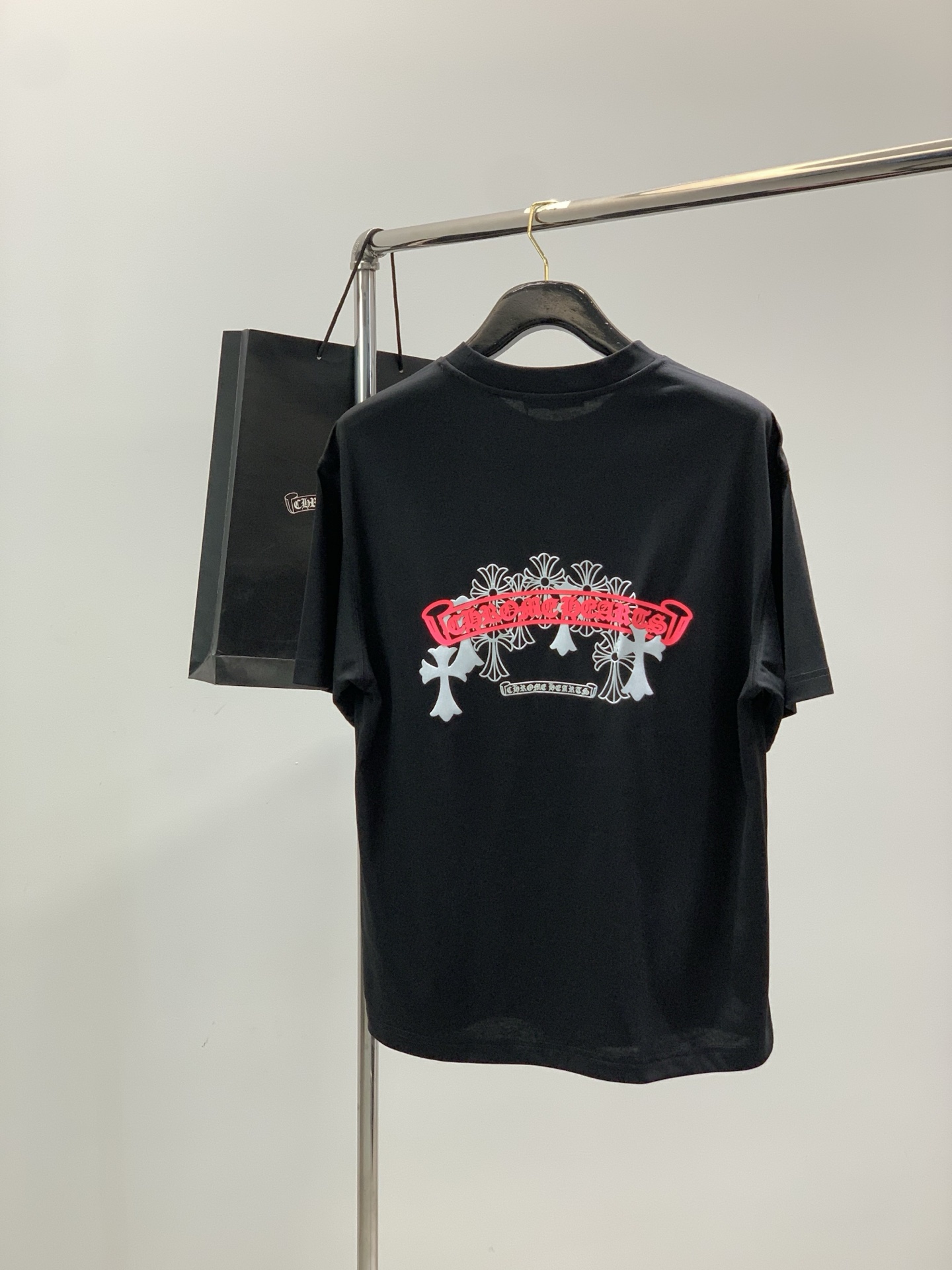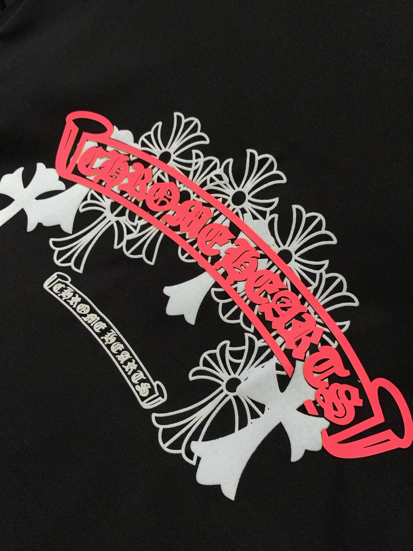 这款衣服是AAAAA 1:1 质量 (非常棒). 使用了和原版一模一样的材料. 商标部分也保持了和克罗心/Chrome Hearts一样. 图片拍摄是实物衣服拍摄, 您所收到的实物保证和我们图片一模一样.