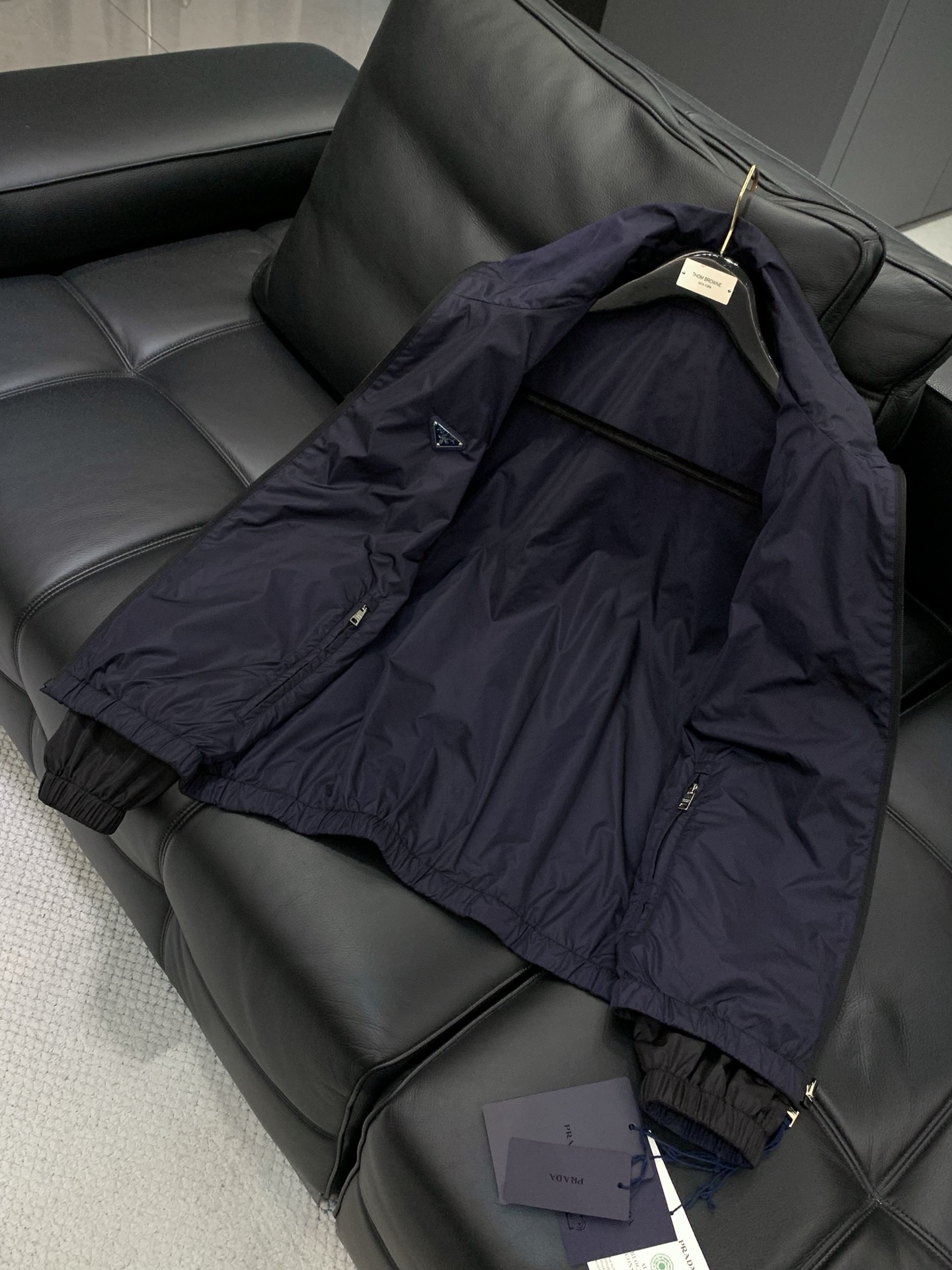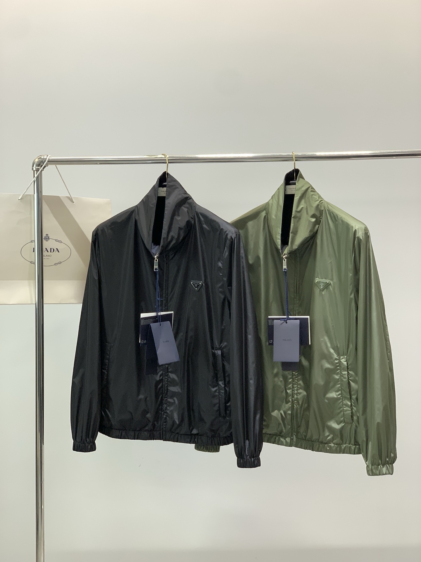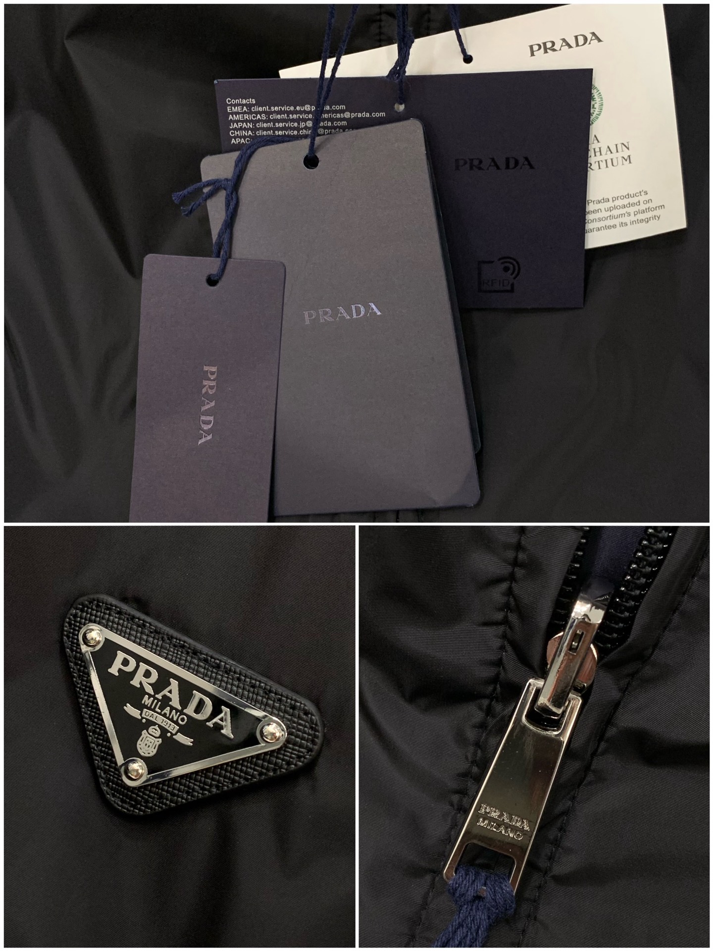 这款衣服是AAAAA 1:1 质量 (非常棒). 使用了和原版一模一样的材料. 商标部分也保持了和普拉达/Prada一样. 图片拍摄是实物衣服拍摄, 您所收到的实物保证和我们图片一模一样.