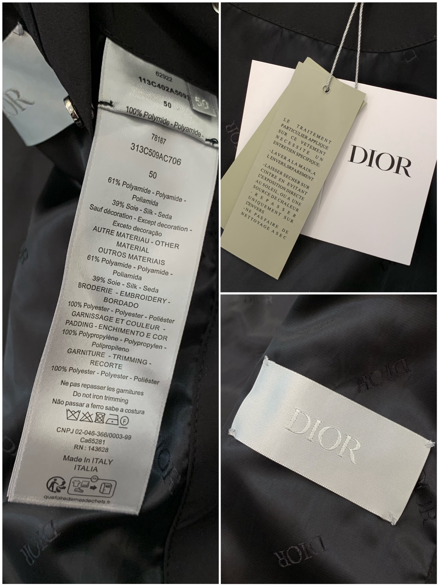 这款衣服是AAAAA 1:1 质量 (非常棒). 使用了和原版一模一样的材料. 商标部分也保持了和迪奥/Dior一样. 图片拍摄是实物衣服拍摄, 您所收到的实物保证和我们图片一模一样.