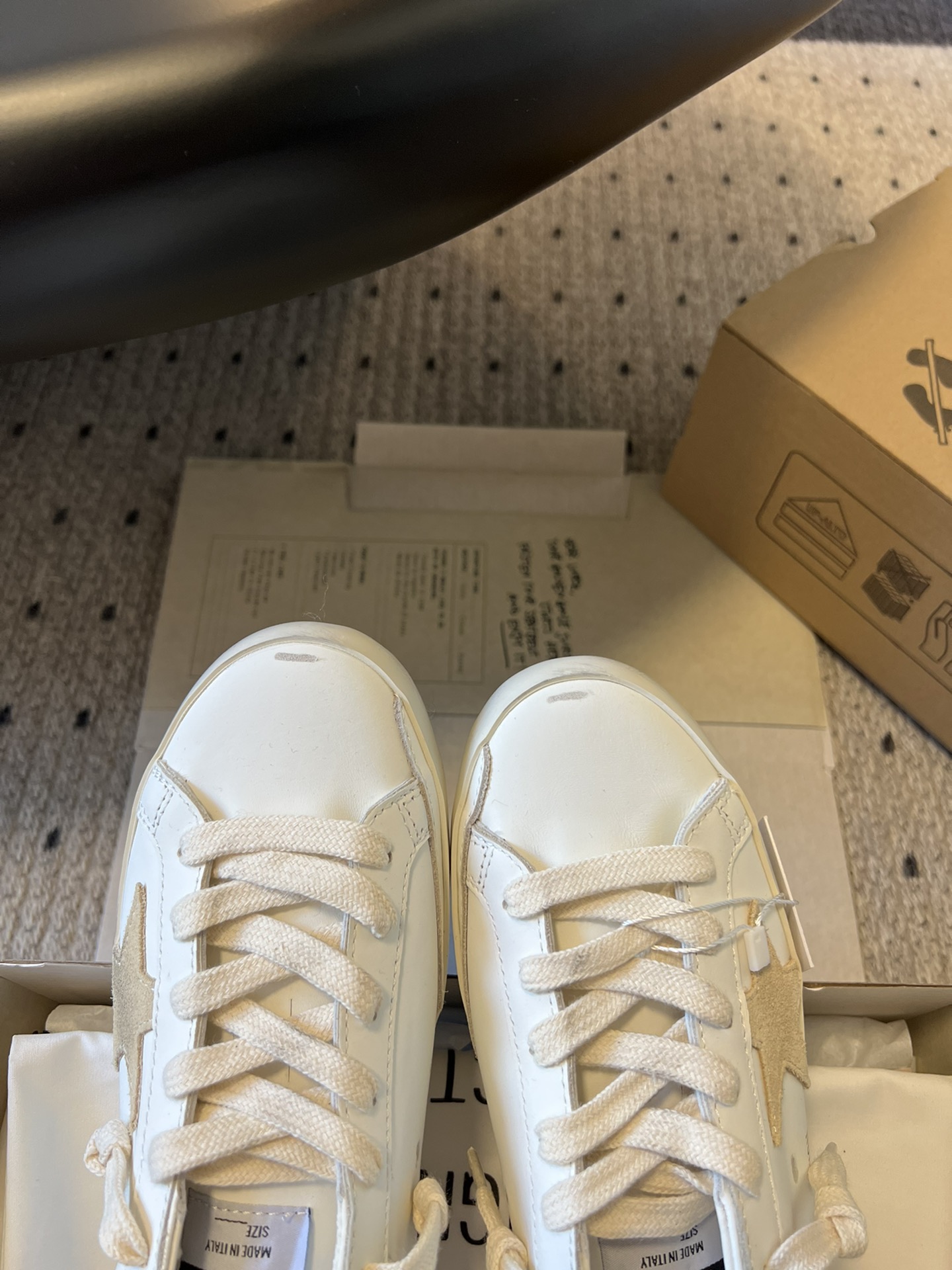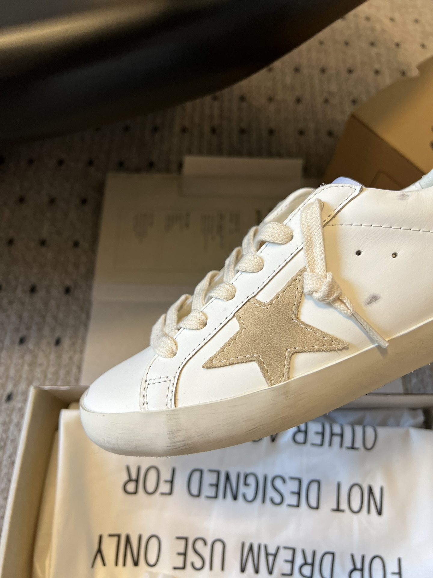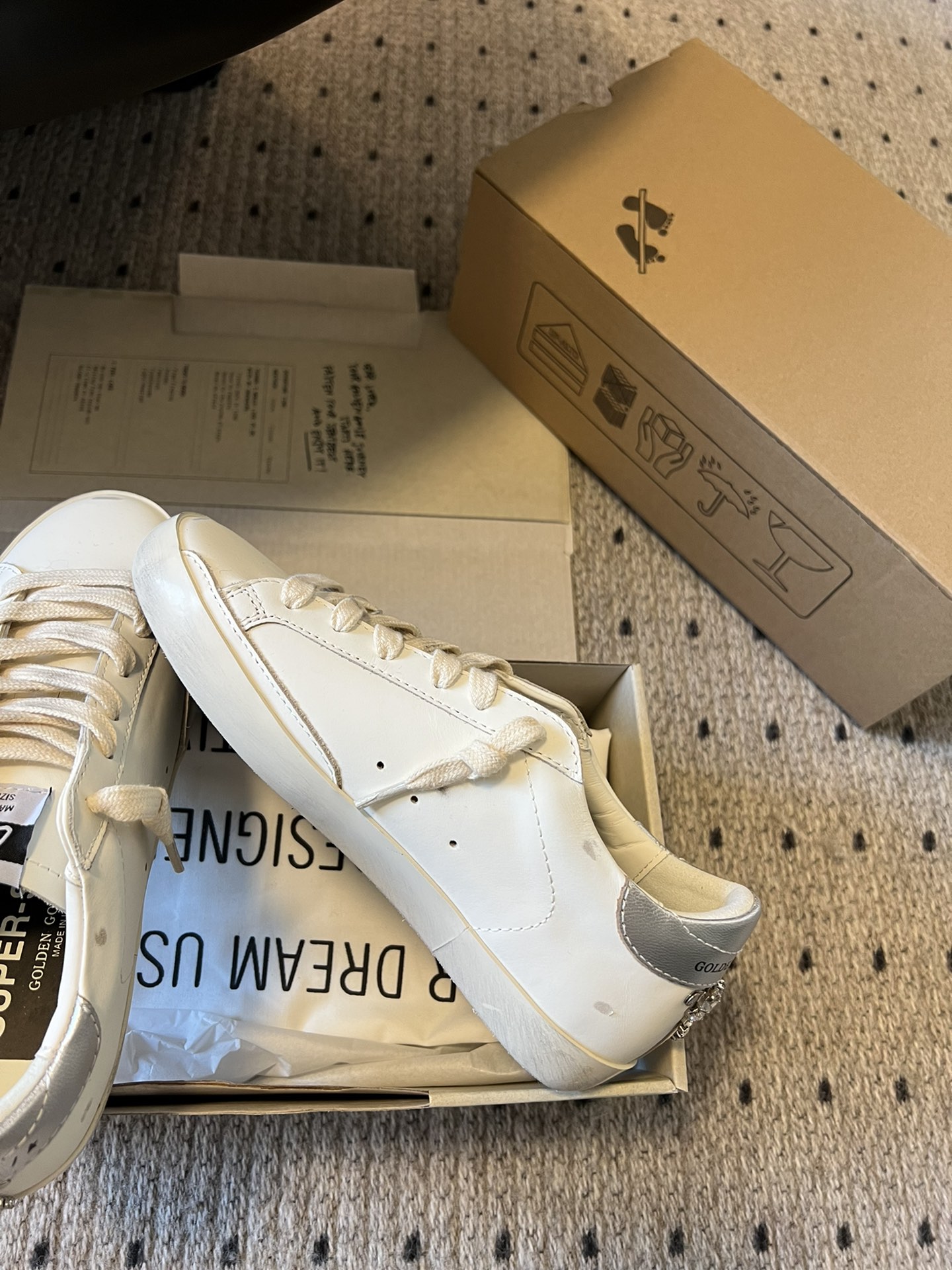这款鞋子是AAAAA 1:1 质量 (非常棒). 使用了和原版一模一样的材料. 商标部分也保持了和Golden Goose一样. 图片拍摄是实物鞋子拍摄, 您所收到的实物保证和我们图片一模一样.