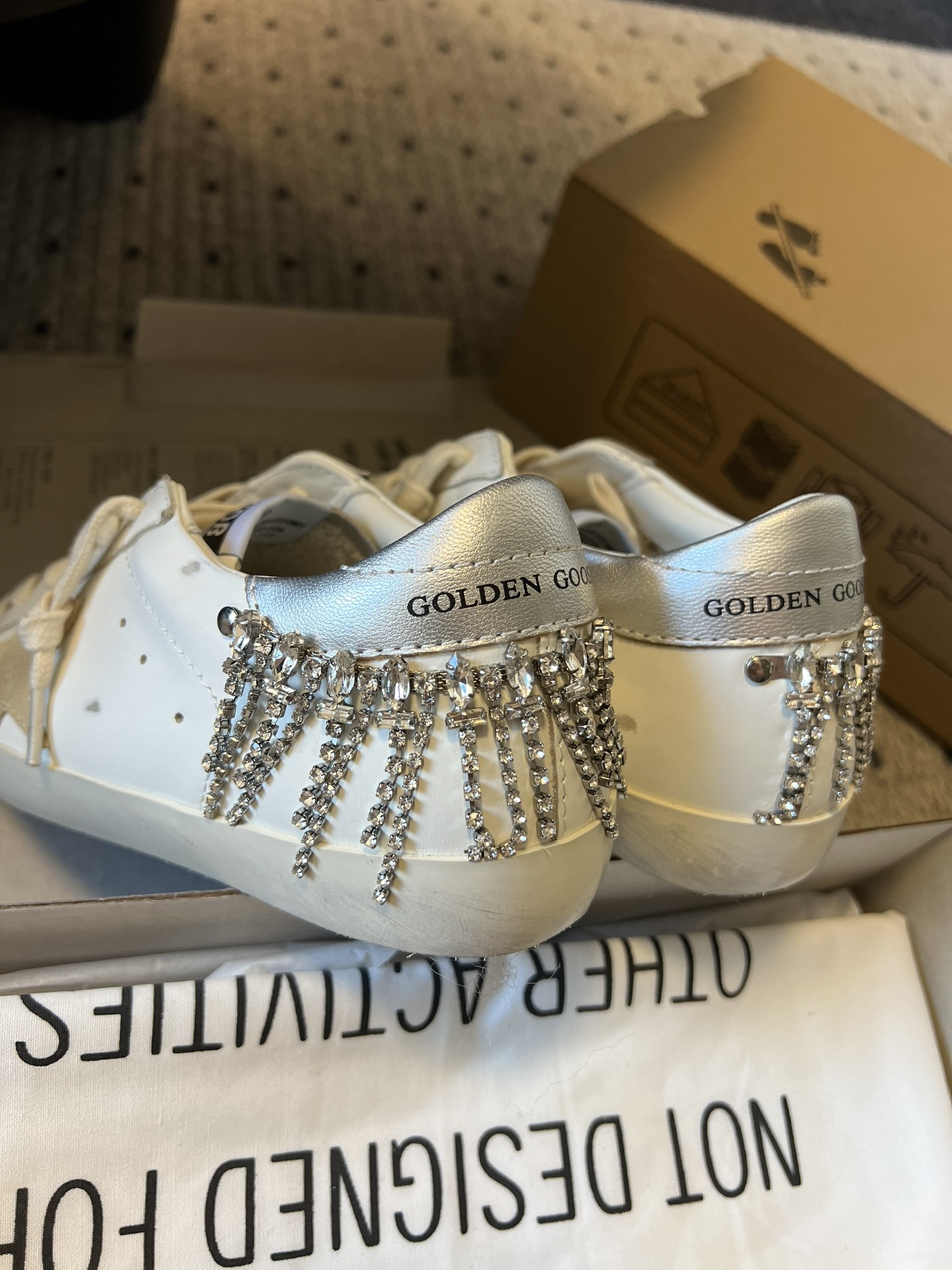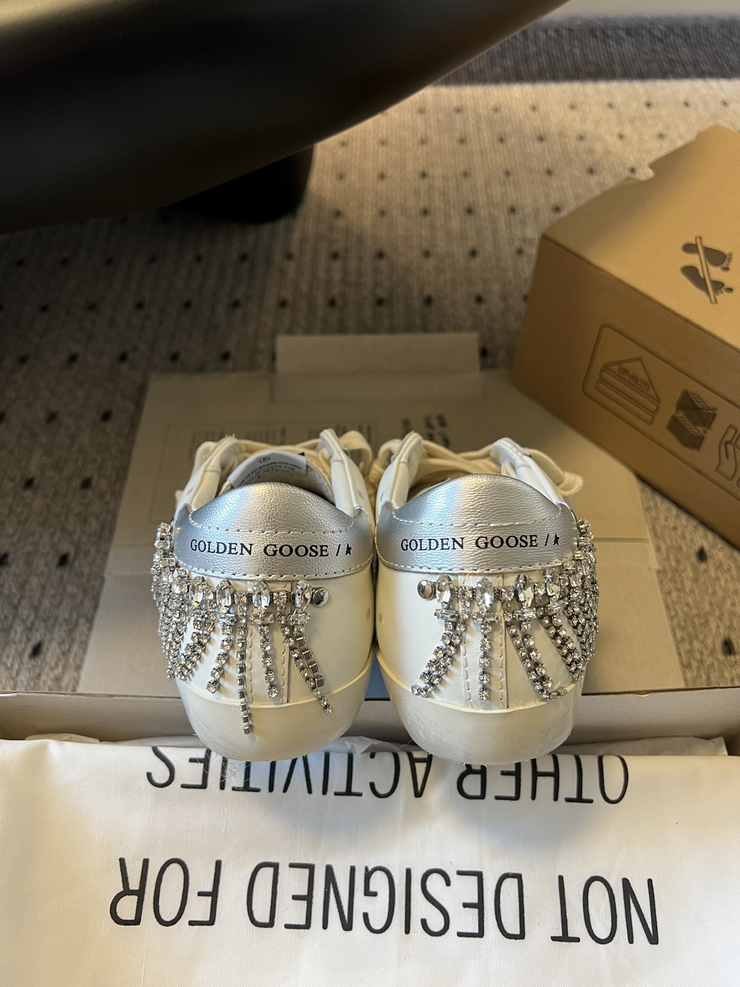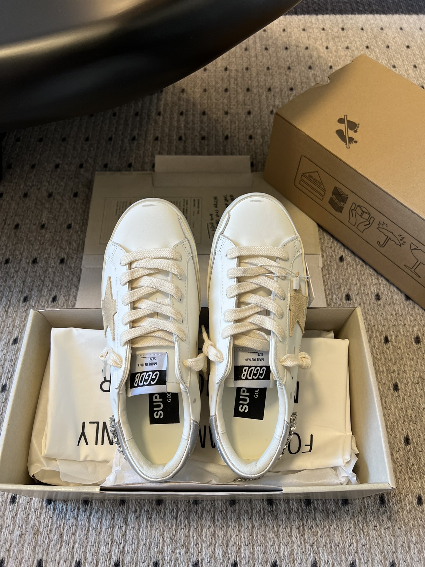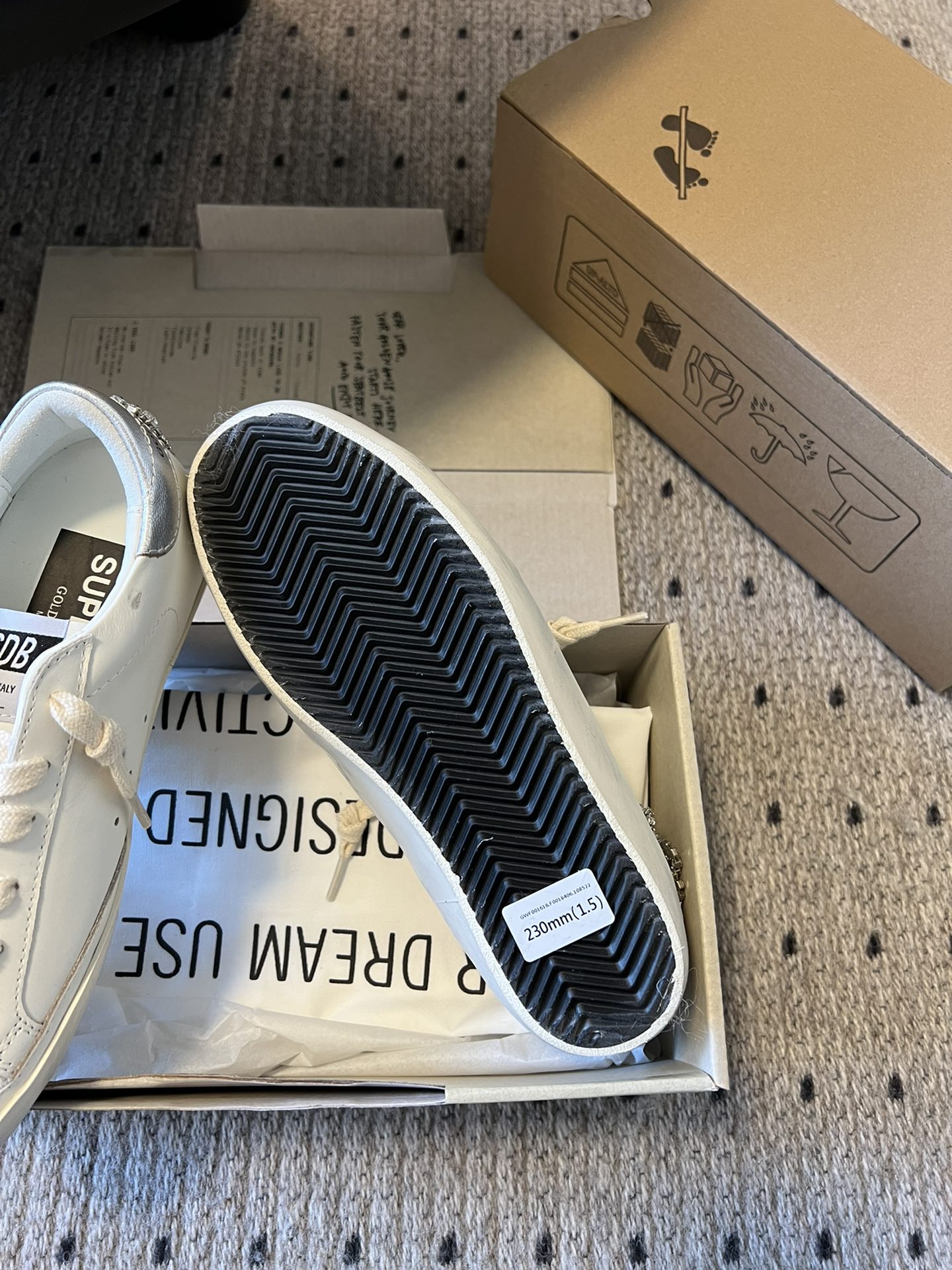 这款鞋子是AAAAA 1:1 质量 (非常棒). 使用了和原版一模一样的材料. 商标部分也保持了和Golden Goose一样. 图片拍摄是实物鞋子拍摄, 您所收到的实物保证和我们图片一模一样.