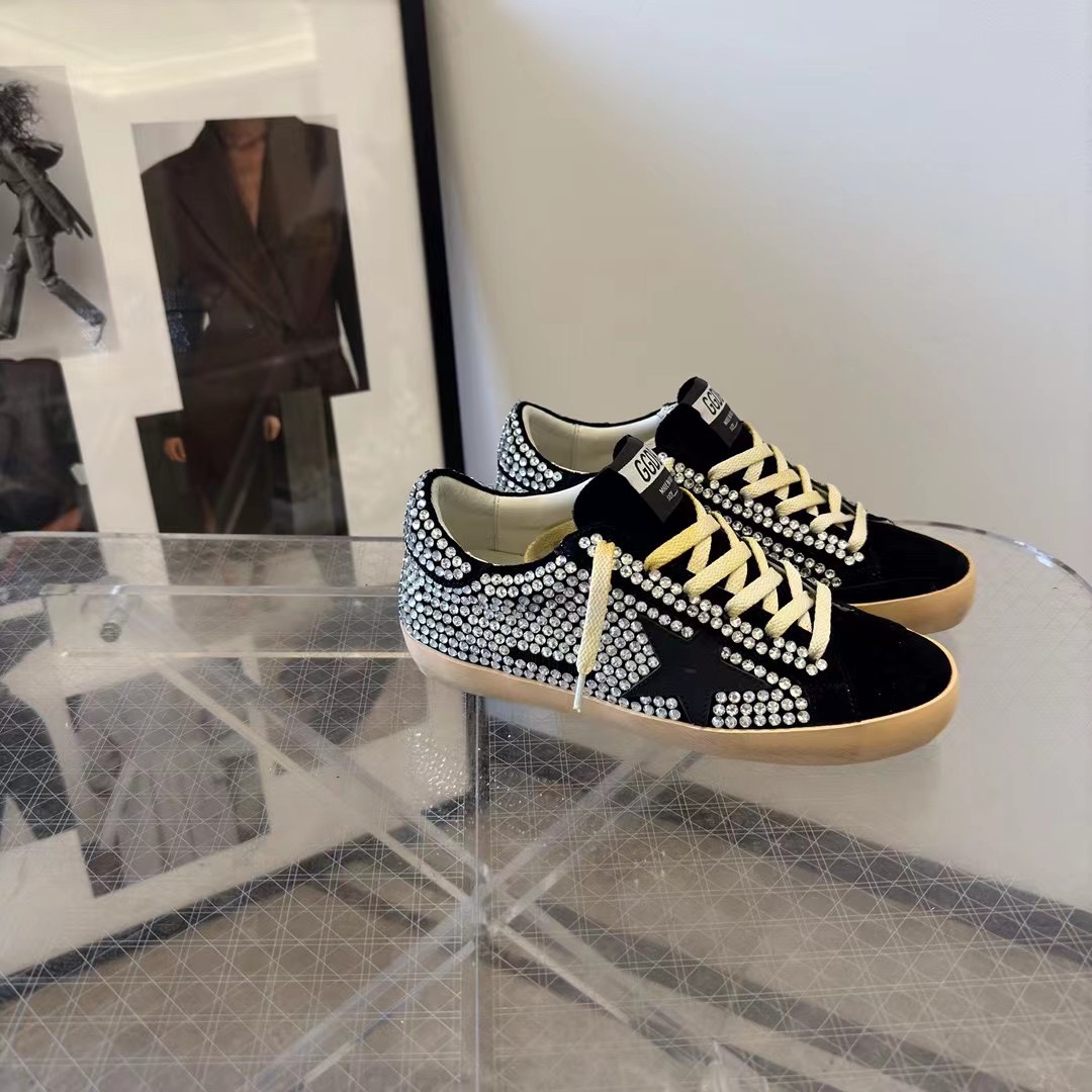 这款鞋子是AAAAA 1:1 质量 (非常棒). 使用了和原版一模一样的材料. 商标部分也保持了和Golden Goose一样. 图片拍摄是实物鞋子拍摄, 您所收到的实物保证和我们图片一模一样.
