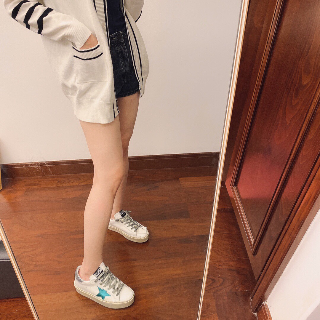 这款鞋子是AAAAA 1:1 质量 (非常棒). 使用了和原版一模一样的材料. 商标部分也保持了和Golden Goose一样. 图片拍摄是实物鞋子拍摄, 您所收到的实物保证和我们图片一模一样.