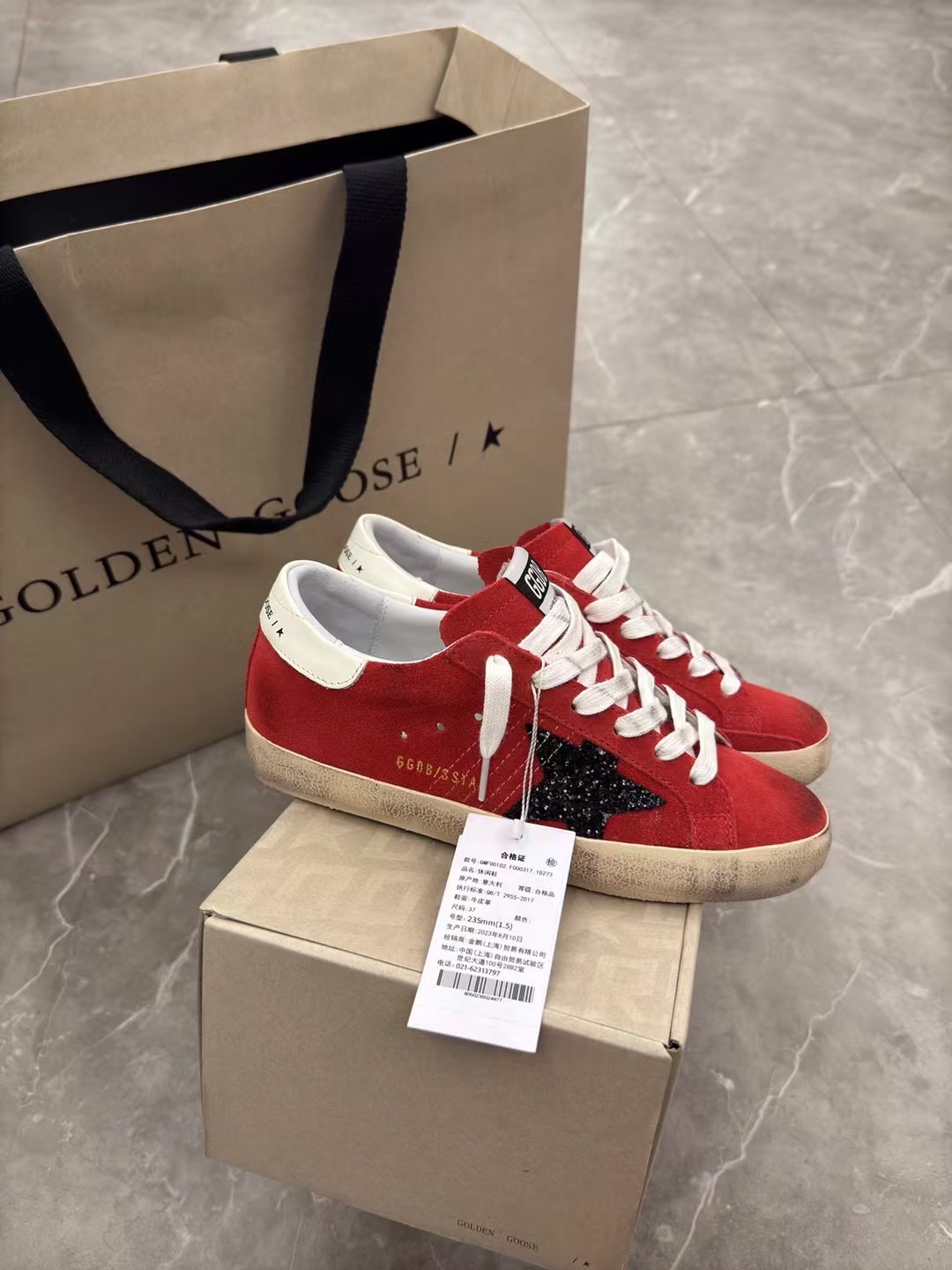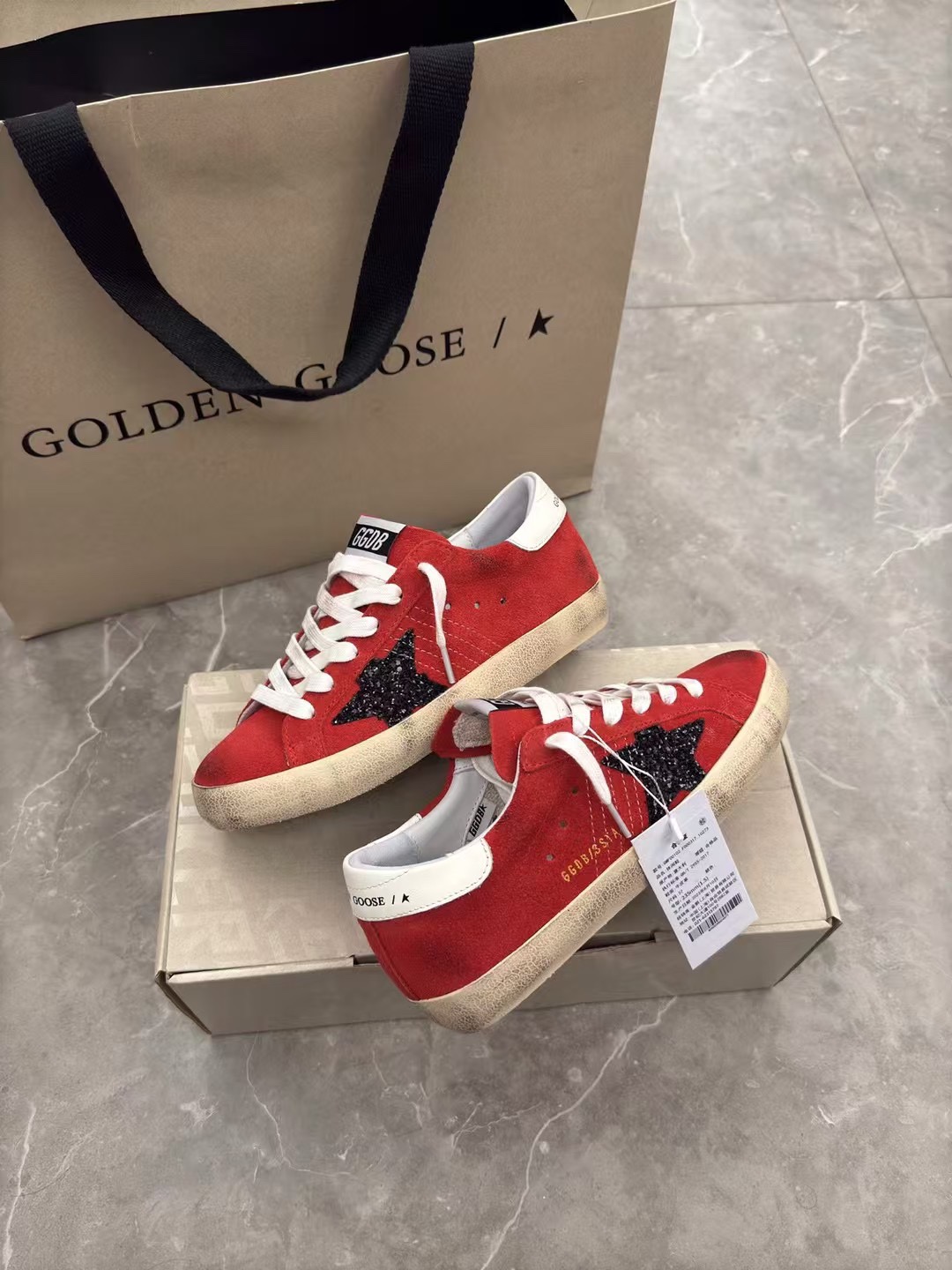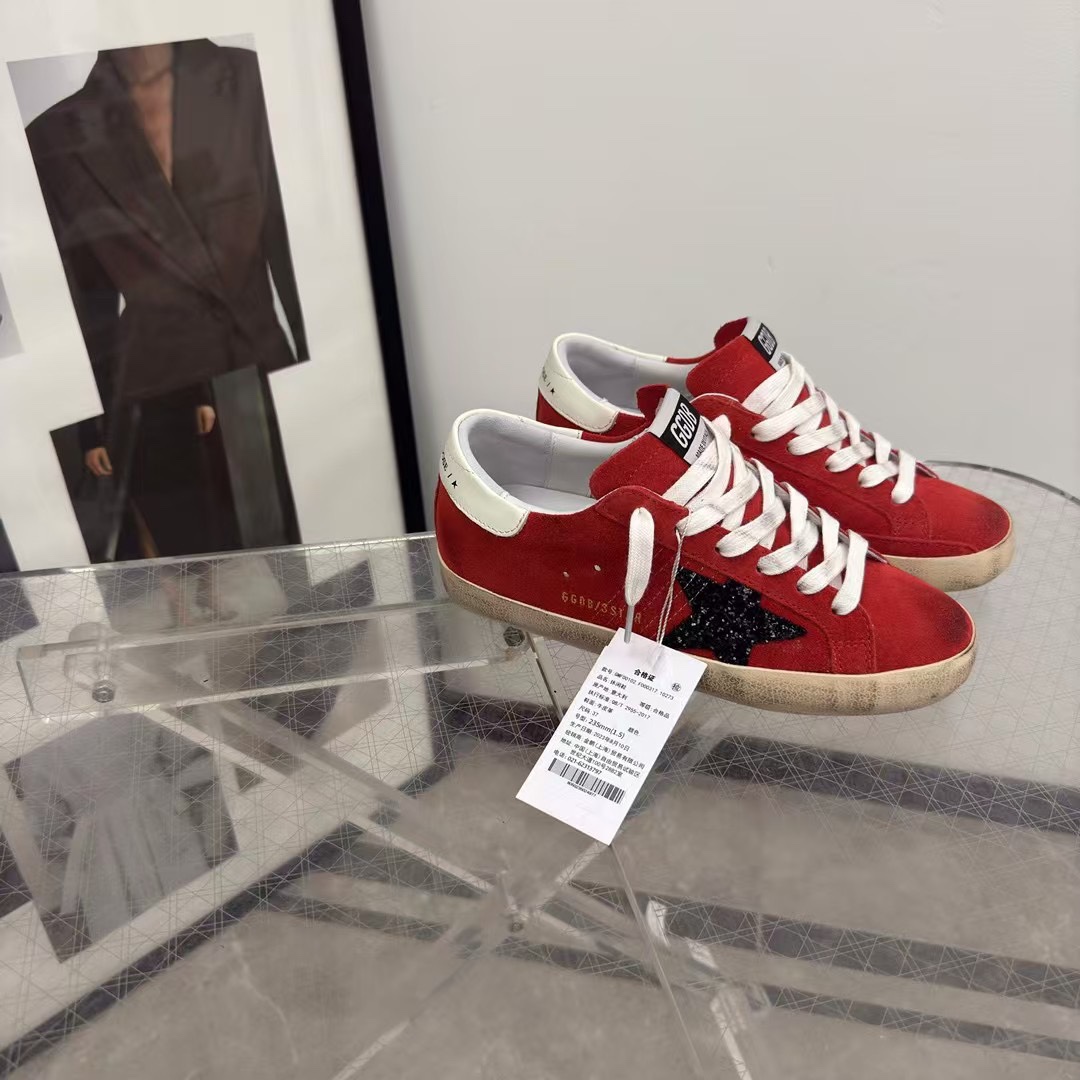 这款鞋子是AAAAA 1:1 质量 (非常棒). 使用了和原版一模一样的材料. 商标部分也保持了和Golden Goose一样. 图片拍摄是实物鞋子拍摄, 您所收到的实物保证和我们图片一模一样.