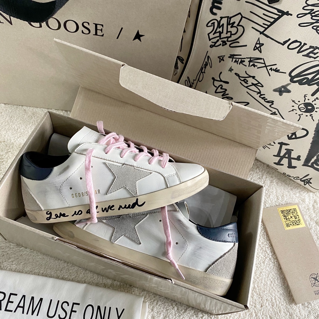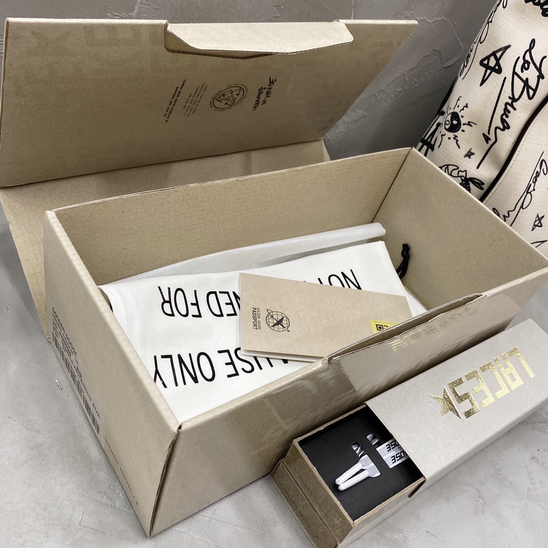 这款鞋子是AAAAA 1:1 质量 (非常棒). 使用了和原版一模一样的材料. 商标部分也保持了和Golden Goose一样. 图片拍摄是实物鞋子拍摄, 您所收到的实物保证和我们图片一模一样.