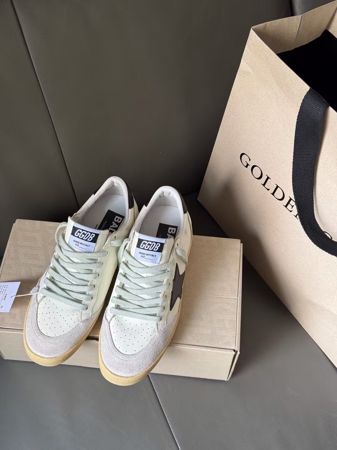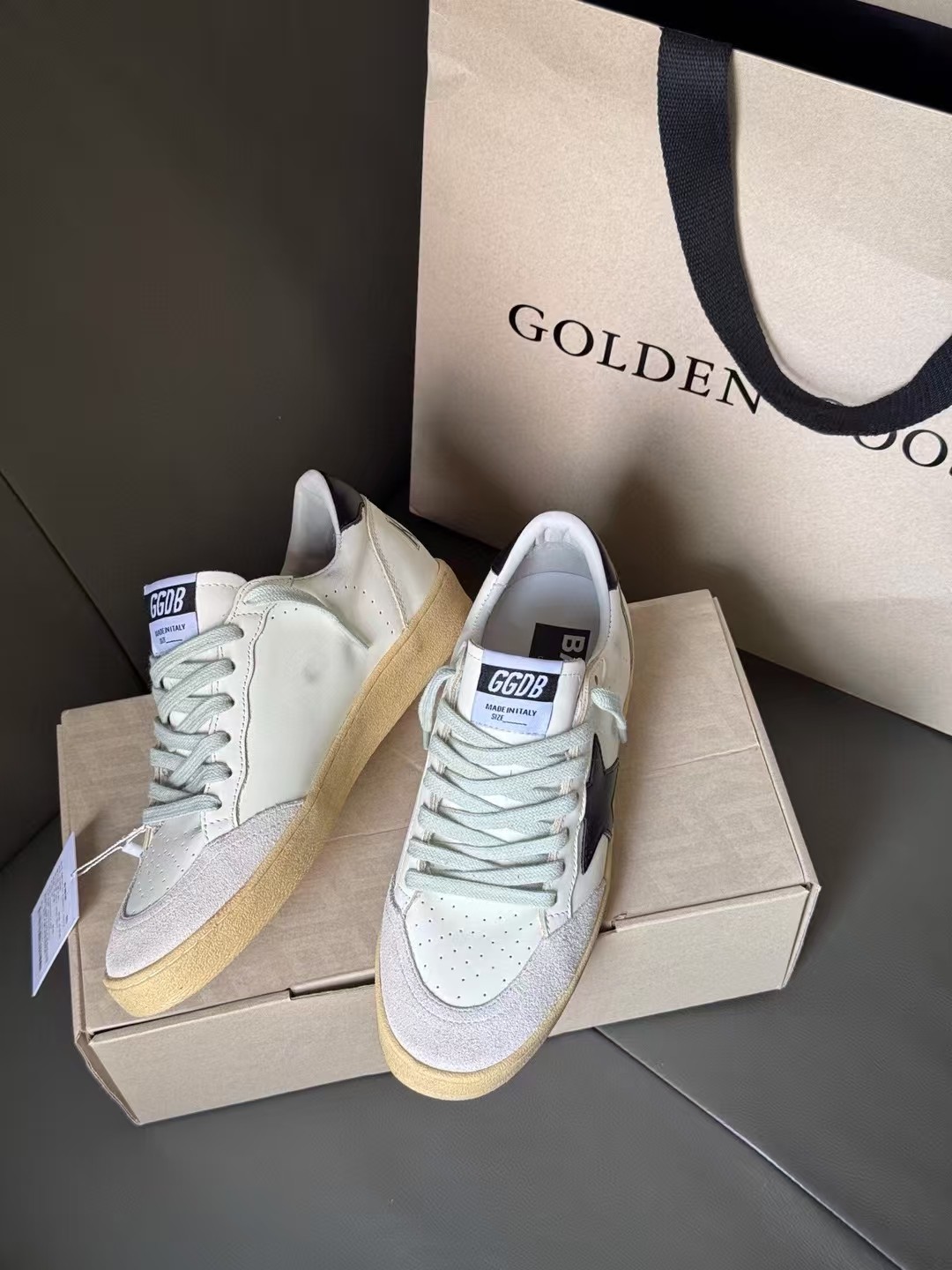 这款鞋子是AAAAA 1:1 质量 (非常棒). 使用了和原版一模一样的材料. 商标部分也保持了和Golden Goose一样. 图片拍摄是实物鞋子拍摄, 您所收到的实物保证和我们图片一模一样.