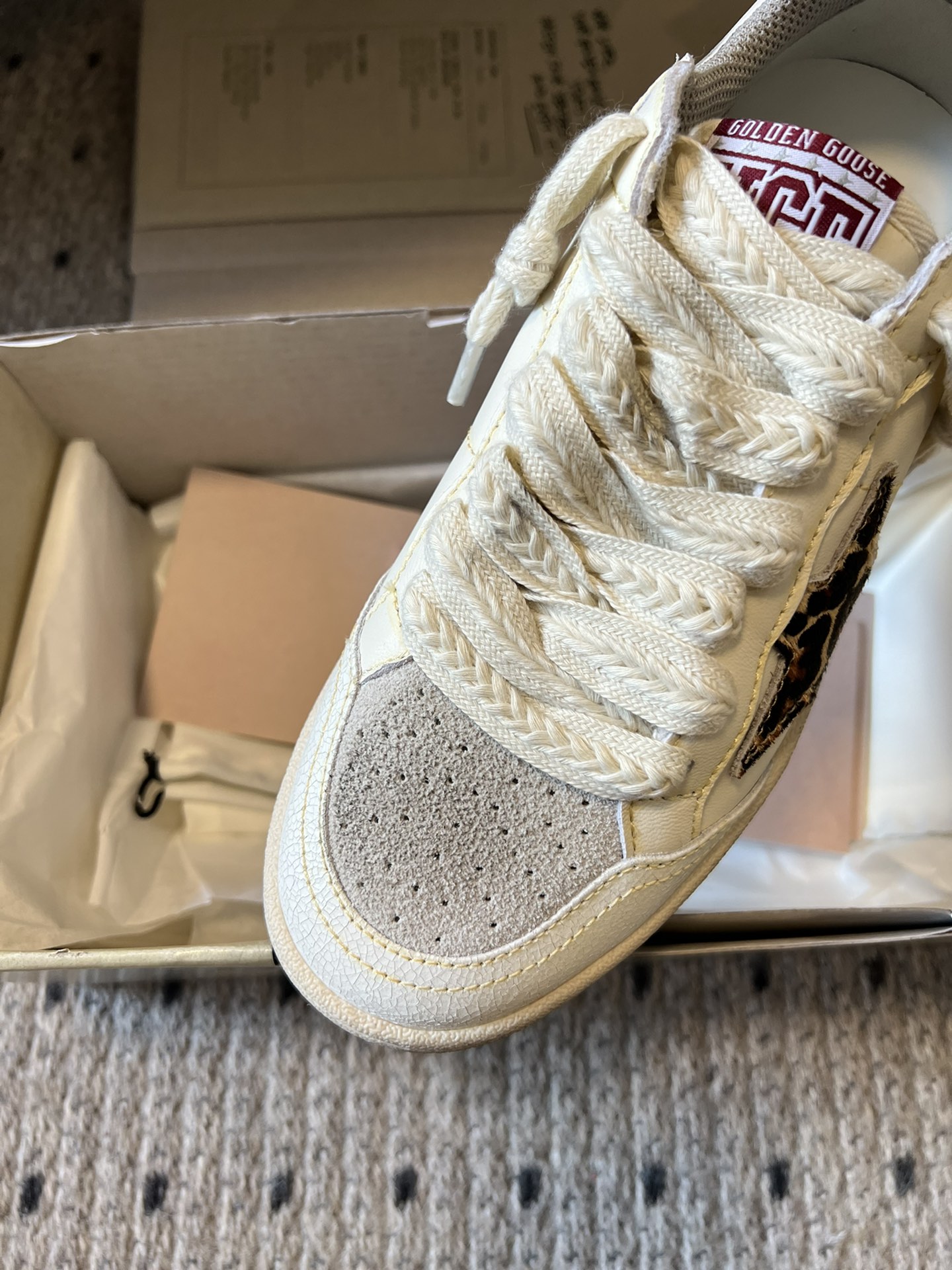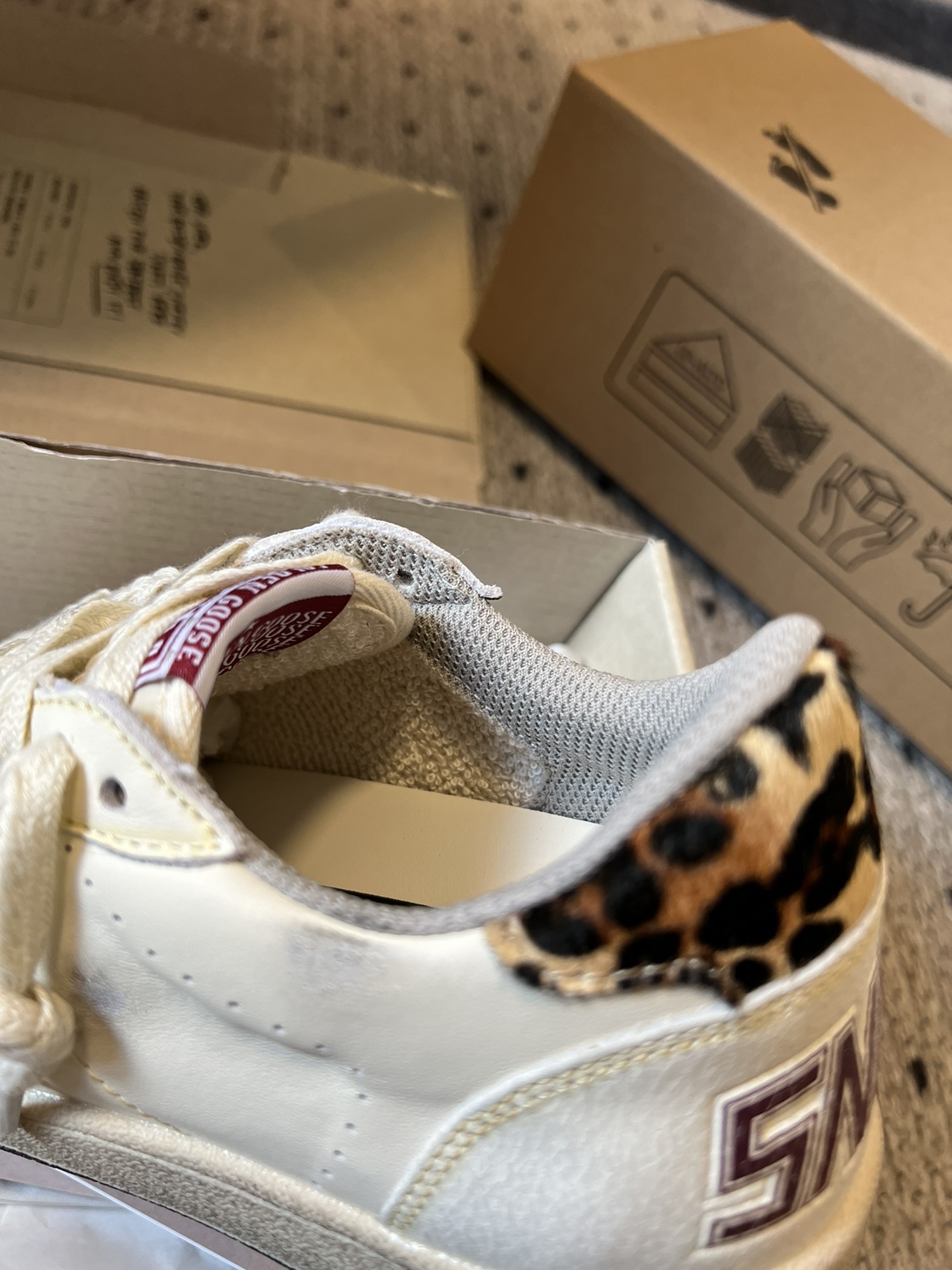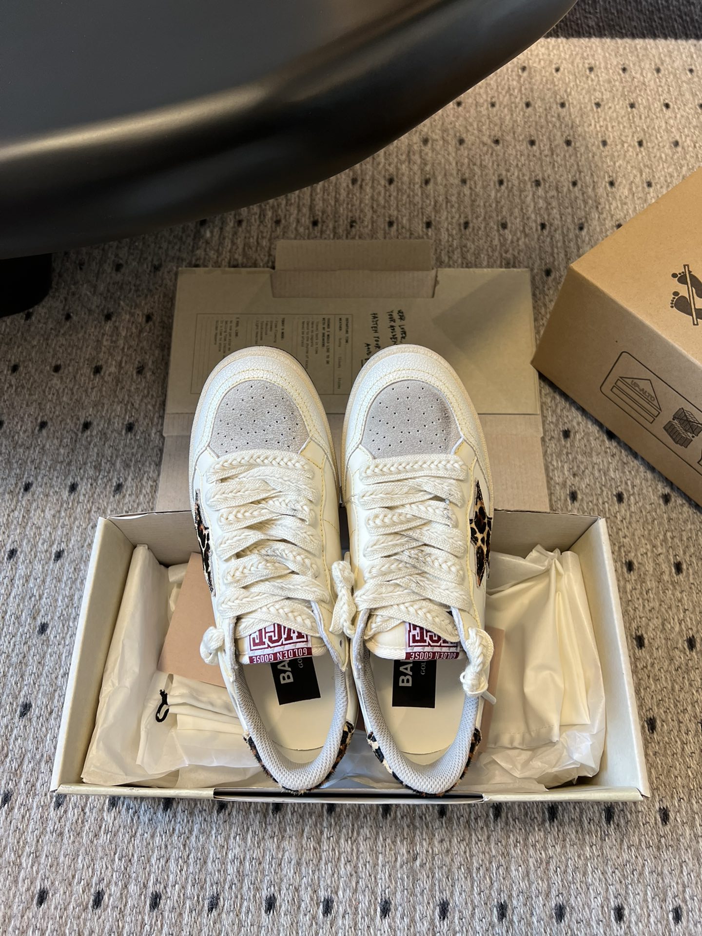 这款鞋子是AAAAA 1:1 质量 (非常棒). 使用了和原版一模一样的材料. 商标部分也保持了和Golden Goose一样. 图片拍摄是实物鞋子拍摄, 您所收到的实物保证和我们图片一模一样.