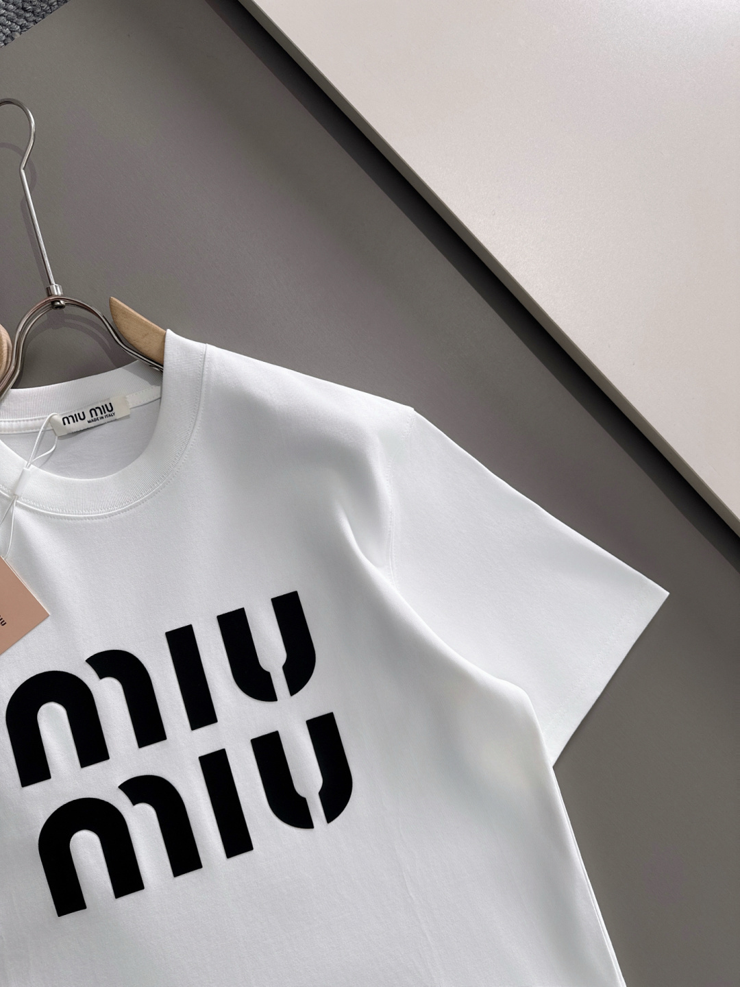 这款衣服是AAAAA 1:1 质量 (非常棒). 使用了和原版一模一样的材料. 商标部分也保持了和缪缪/Miu Miu一样. 图片拍摄是实物衣服拍摄, 您所收到的实物保证和我们图片一模一样.