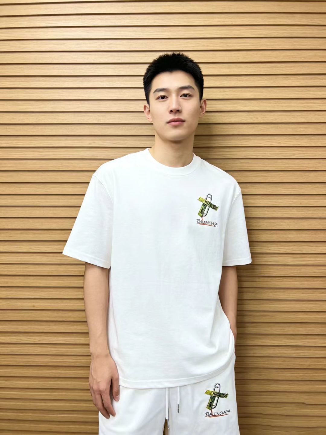这款衣服是AAAAA 1:1 质量 (非常棒). 使用了和原版一模一样的材料. 商标部分也保持了和巴黎世家/Balenciaga一样. 图片拍摄是实物衣服拍摄, 您所收到的实物保证和我们图片一模一样.