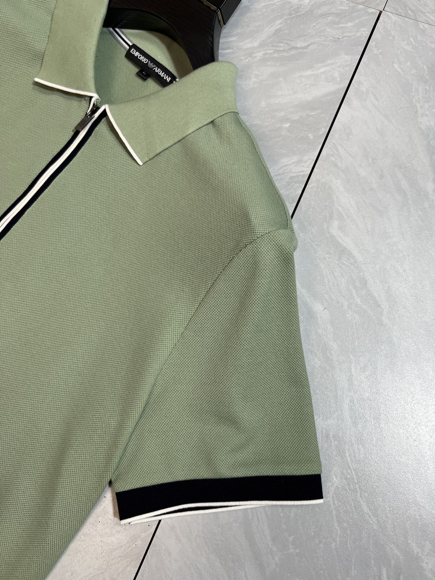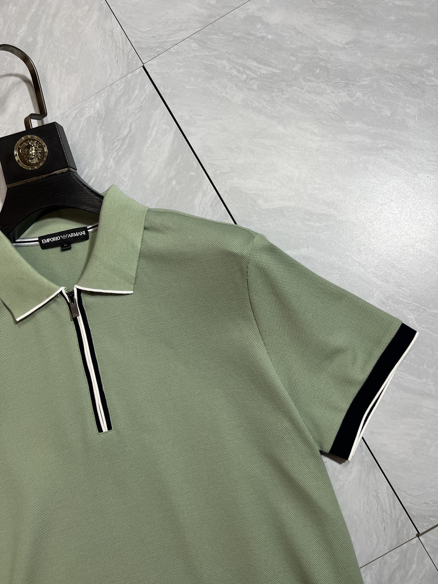 这款衣服是AAAAA 1:1 质量 (非常棒). 使用了和原版一模一样的材料. 商标部分也保持了和阿玛尼/Armani一样. 图片拍摄是实物衣服拍摄, 您所收到的实物保证和我们图片一模一样.