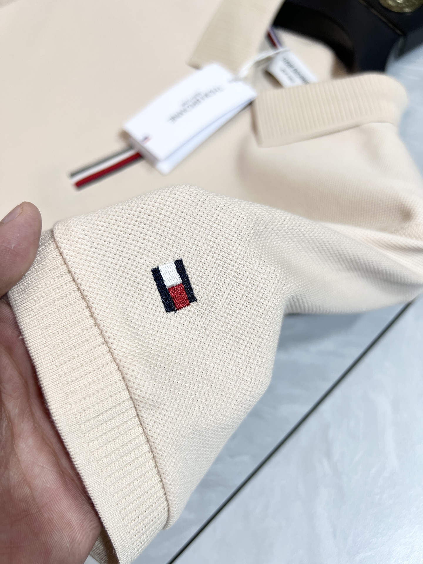 这款衣服是AAAAA 1:1 质量 (非常棒). 使用了和原版一模一样的材料. 商标部分也保持了和汤姆布朗/Thom Browne一样. 图片拍摄是实物衣服拍摄, 您所收到的实物保证和我们图片一模一样.
