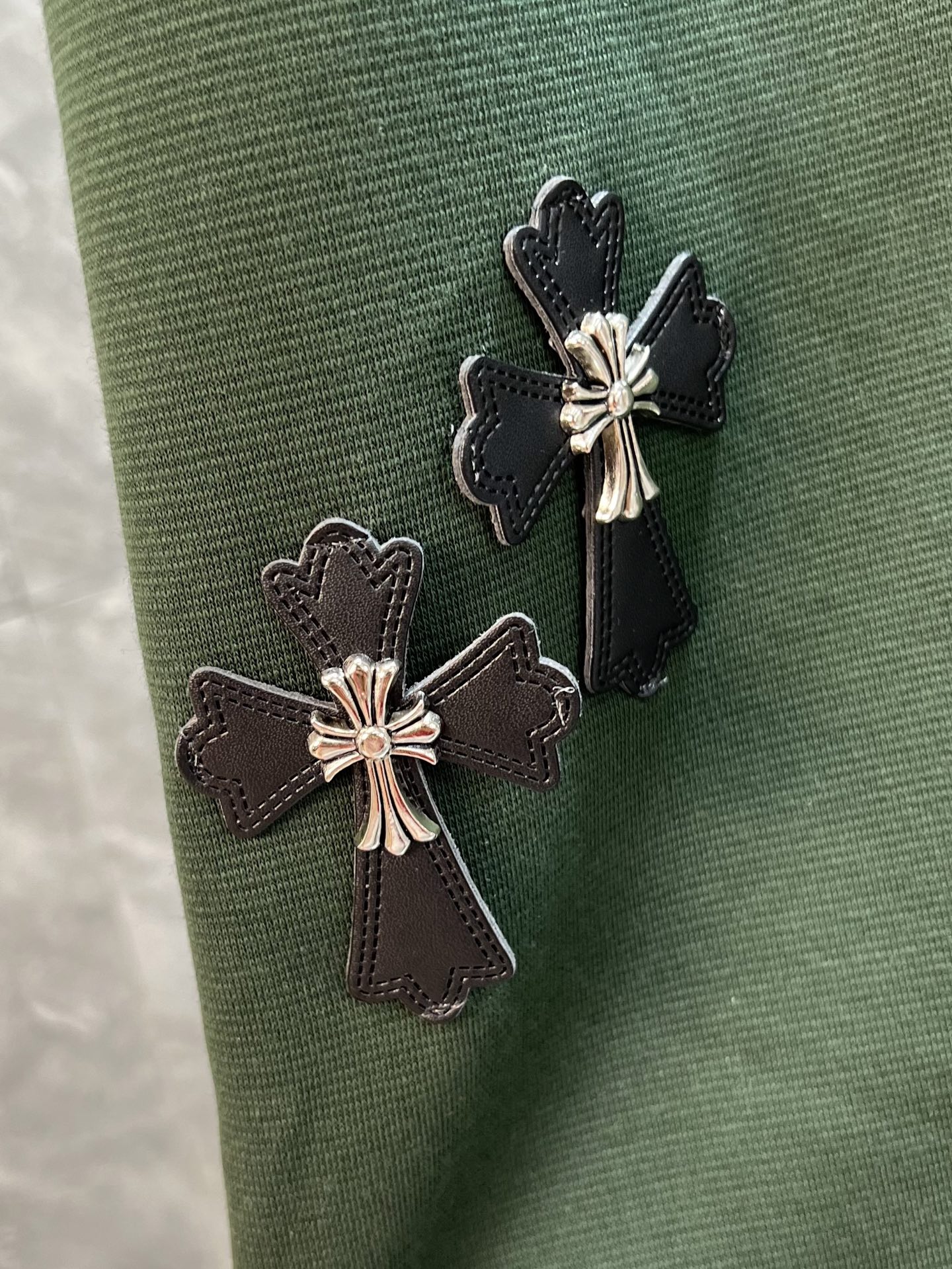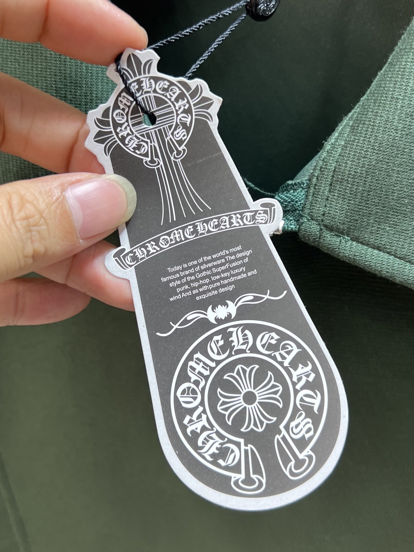 这款衣服是AAAAA 1:1 质量 (非常棒). 使用了和原版一模一样的材料. 商标部分也保持了和克罗心/Chrome Hearts一样. 图片拍摄是实物衣服拍摄, 您所收到的实物保证和我们图片一模一样.