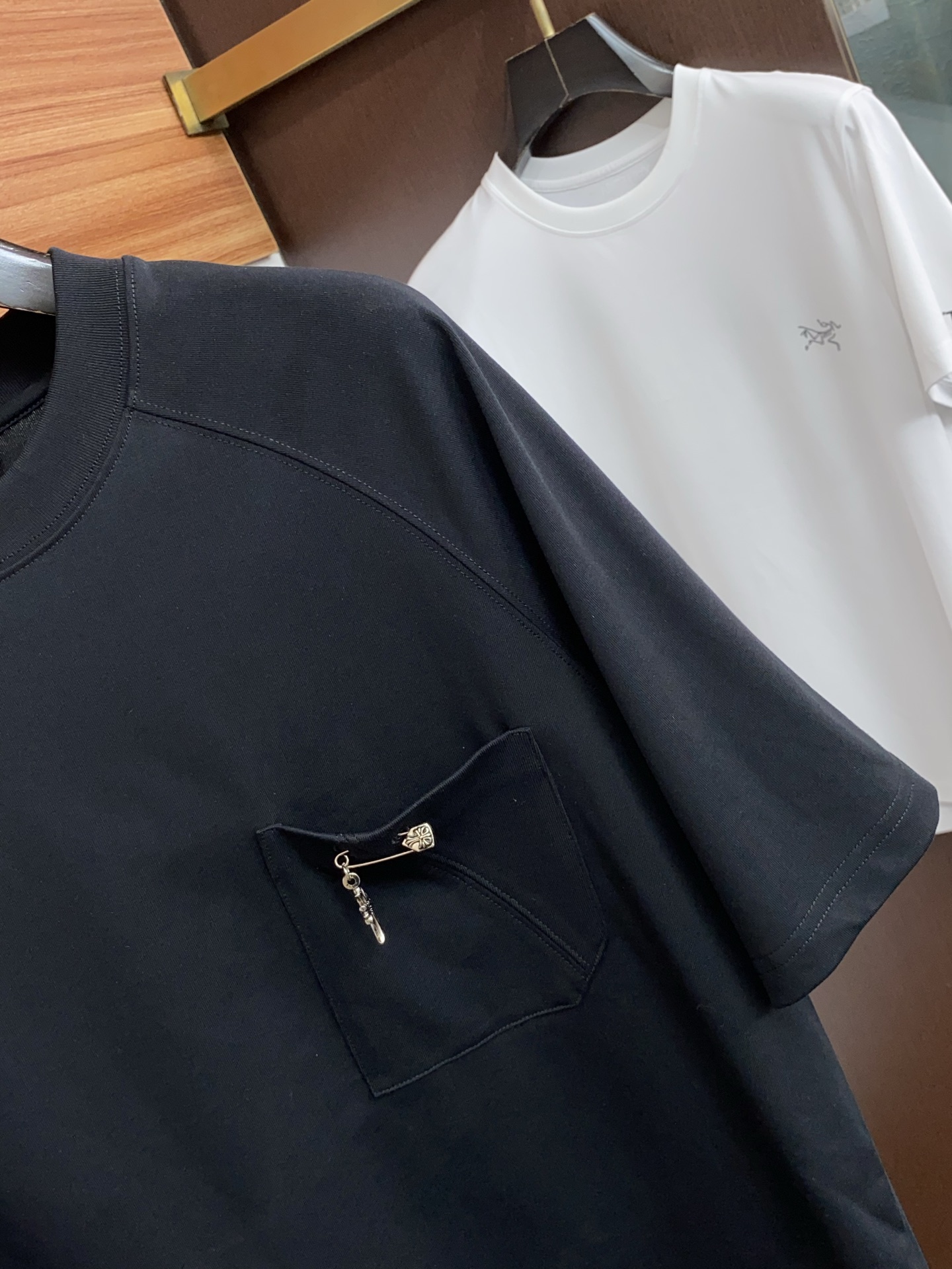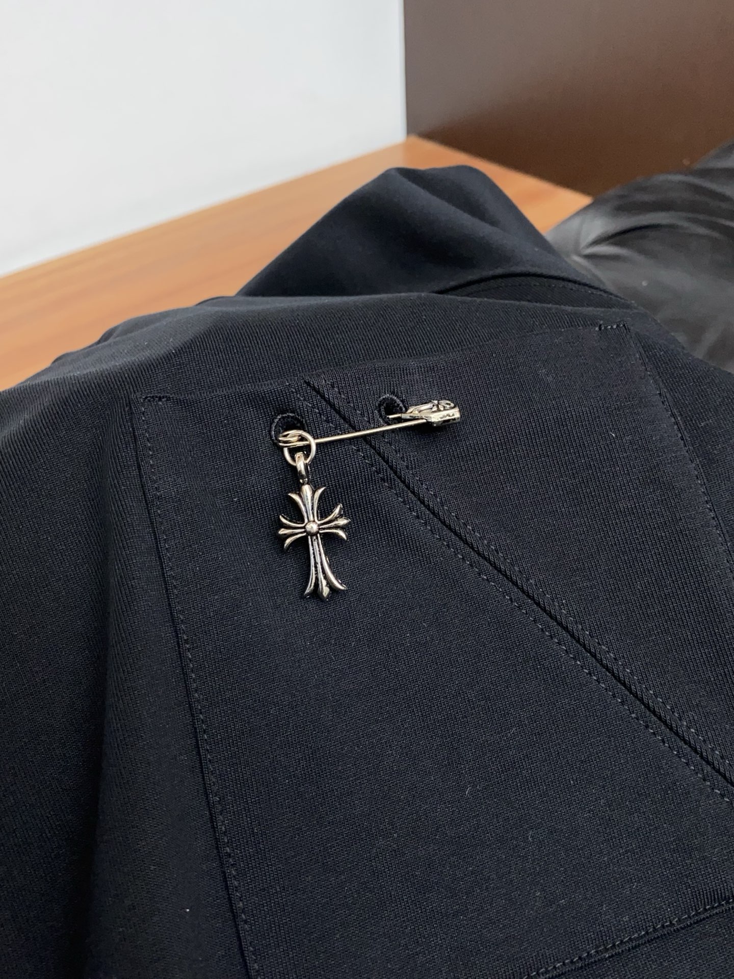 这款衣服是AAAAA 1:1 质量 (非常棒). 使用了和原版一模一样的材料. 商标部分也保持了和克罗心/Chrome Hearts一样. 图片拍摄是实物衣服拍摄, 您所收到的实物保证和我们图片一模一样.