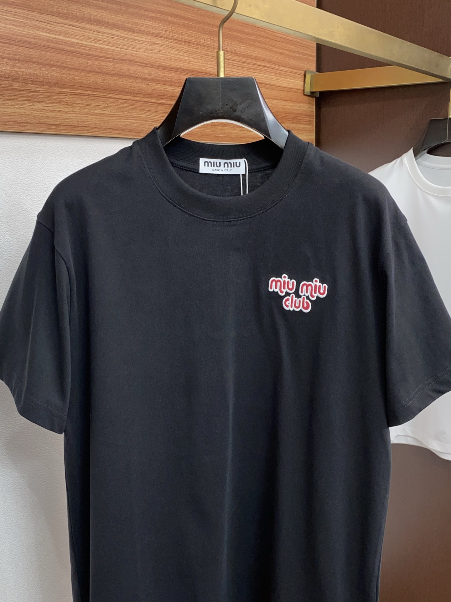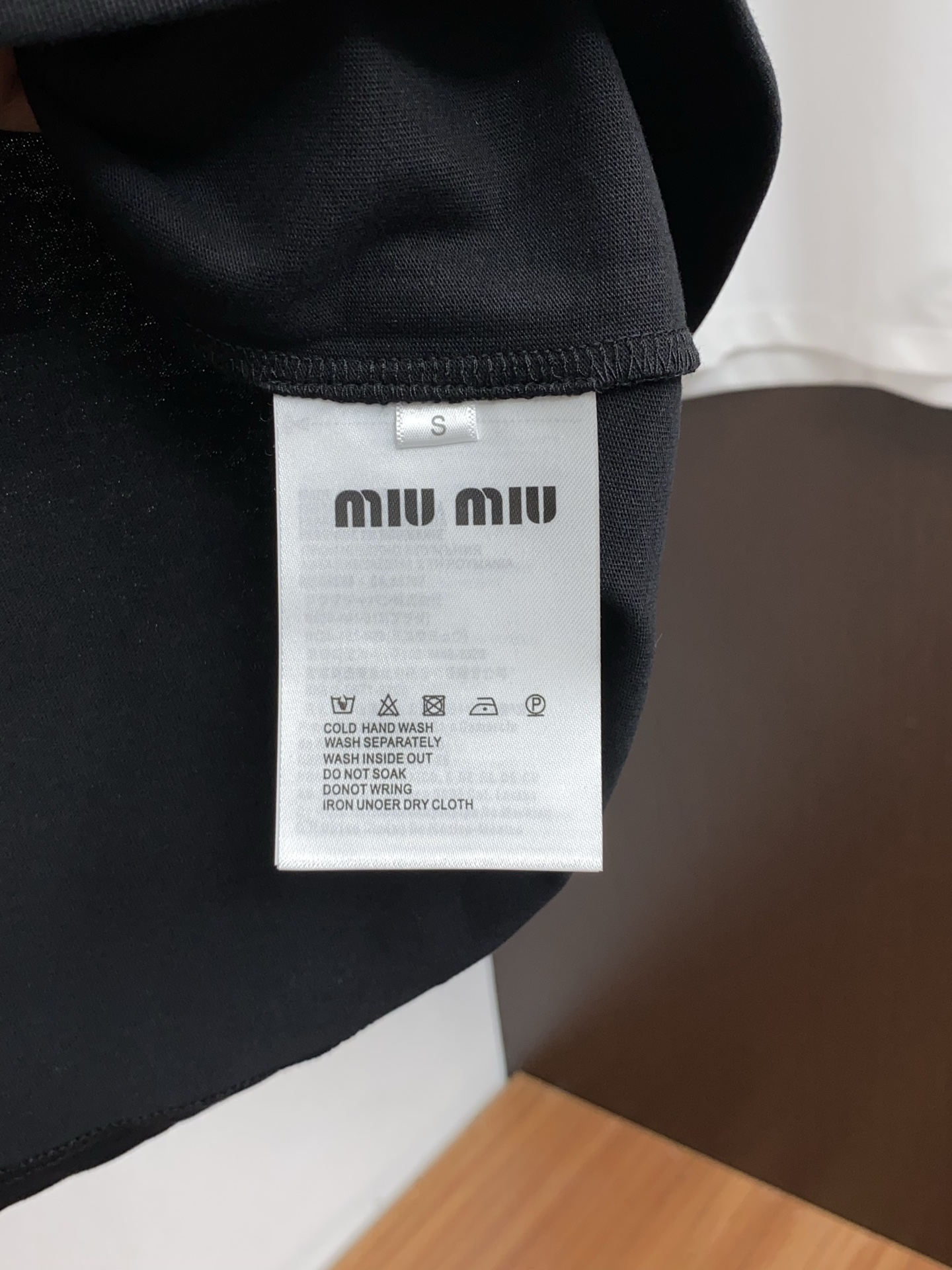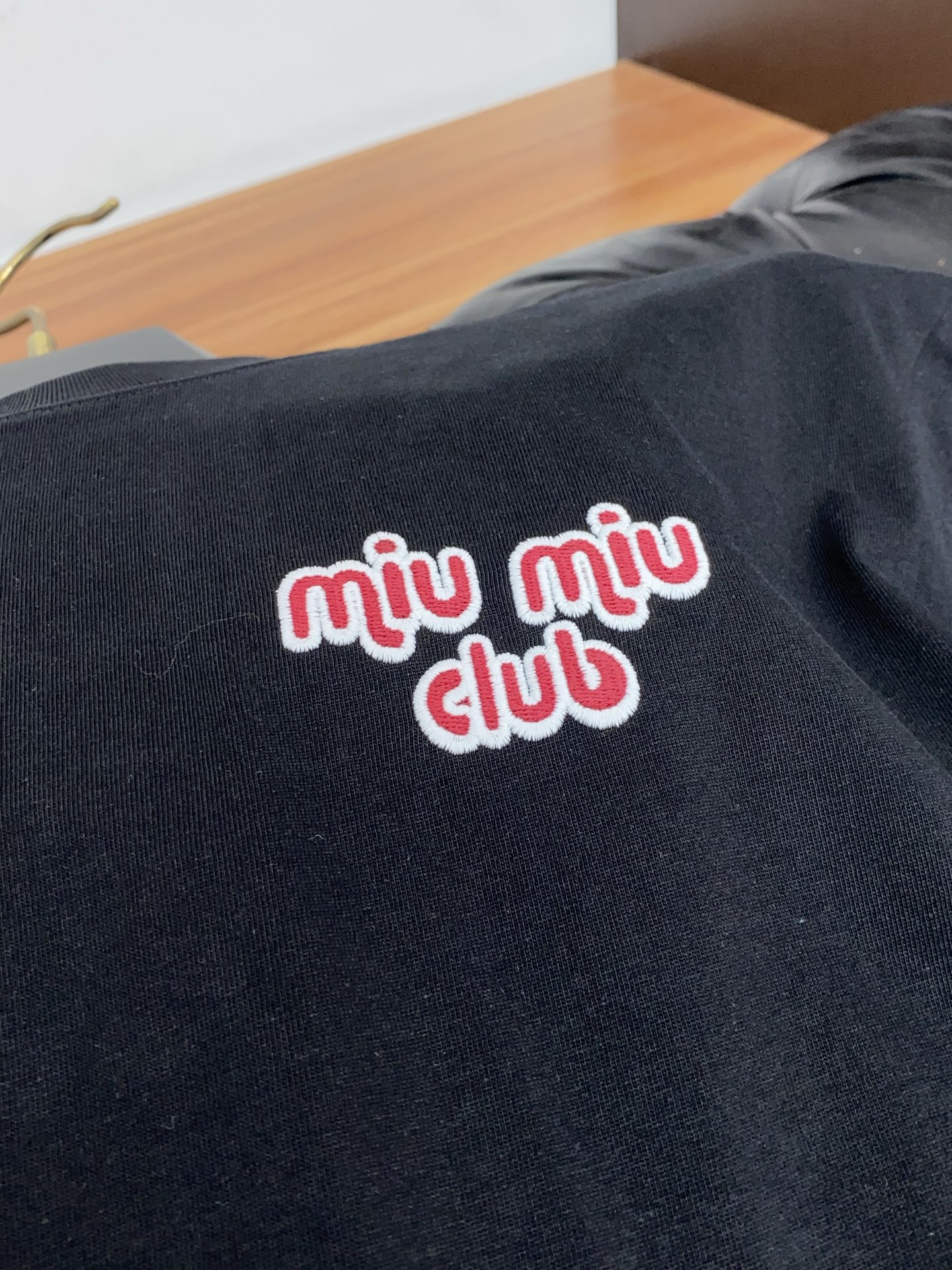 这款衣服是AAAAA 1:1 质量 (非常棒). 使用了和原版一模一样的材料. 商标部分也保持了和缪缪/Miu Miu一样. 图片拍摄是实物衣服拍摄, 您所收到的实物保证和我们图片一模一样.