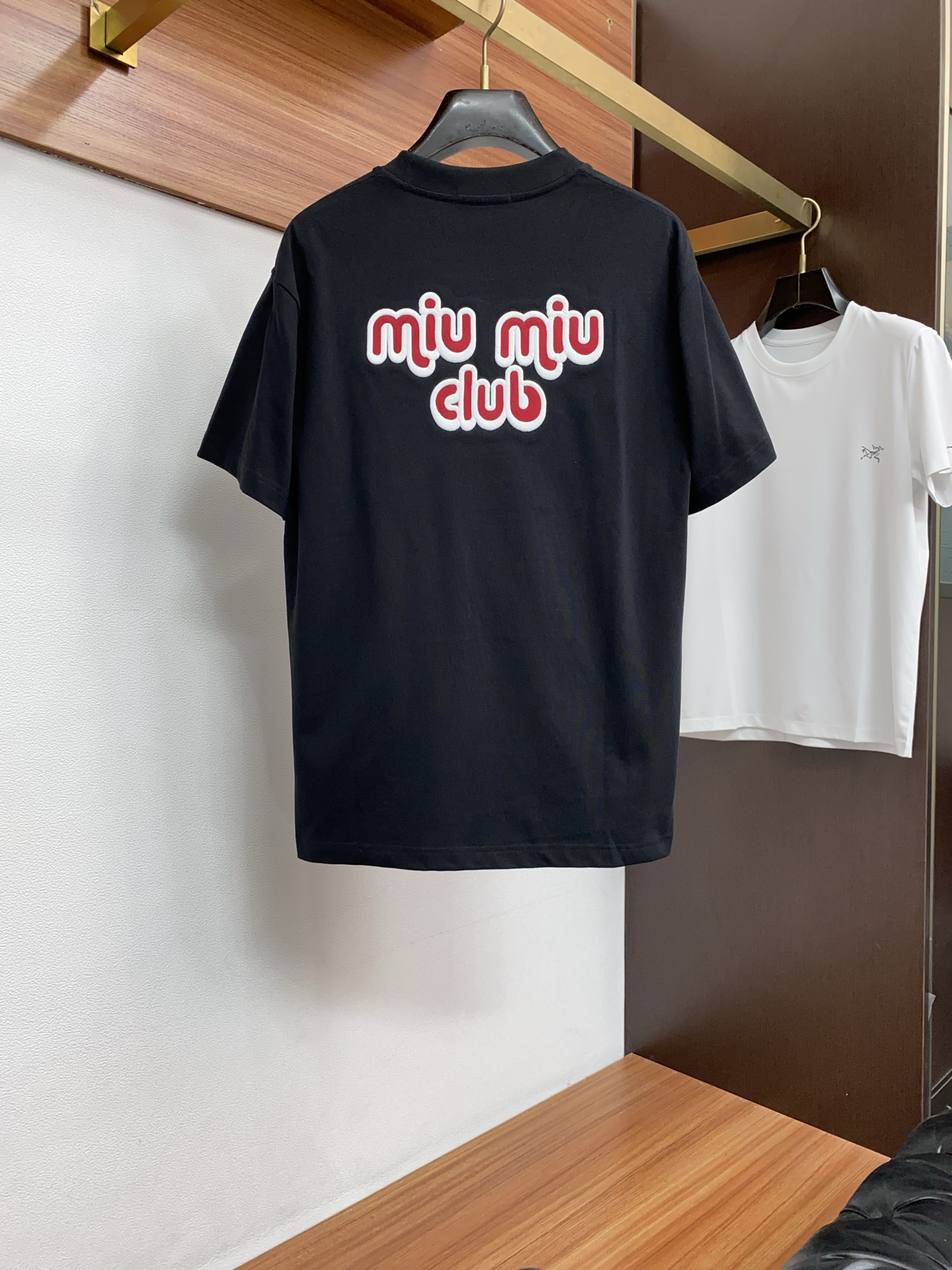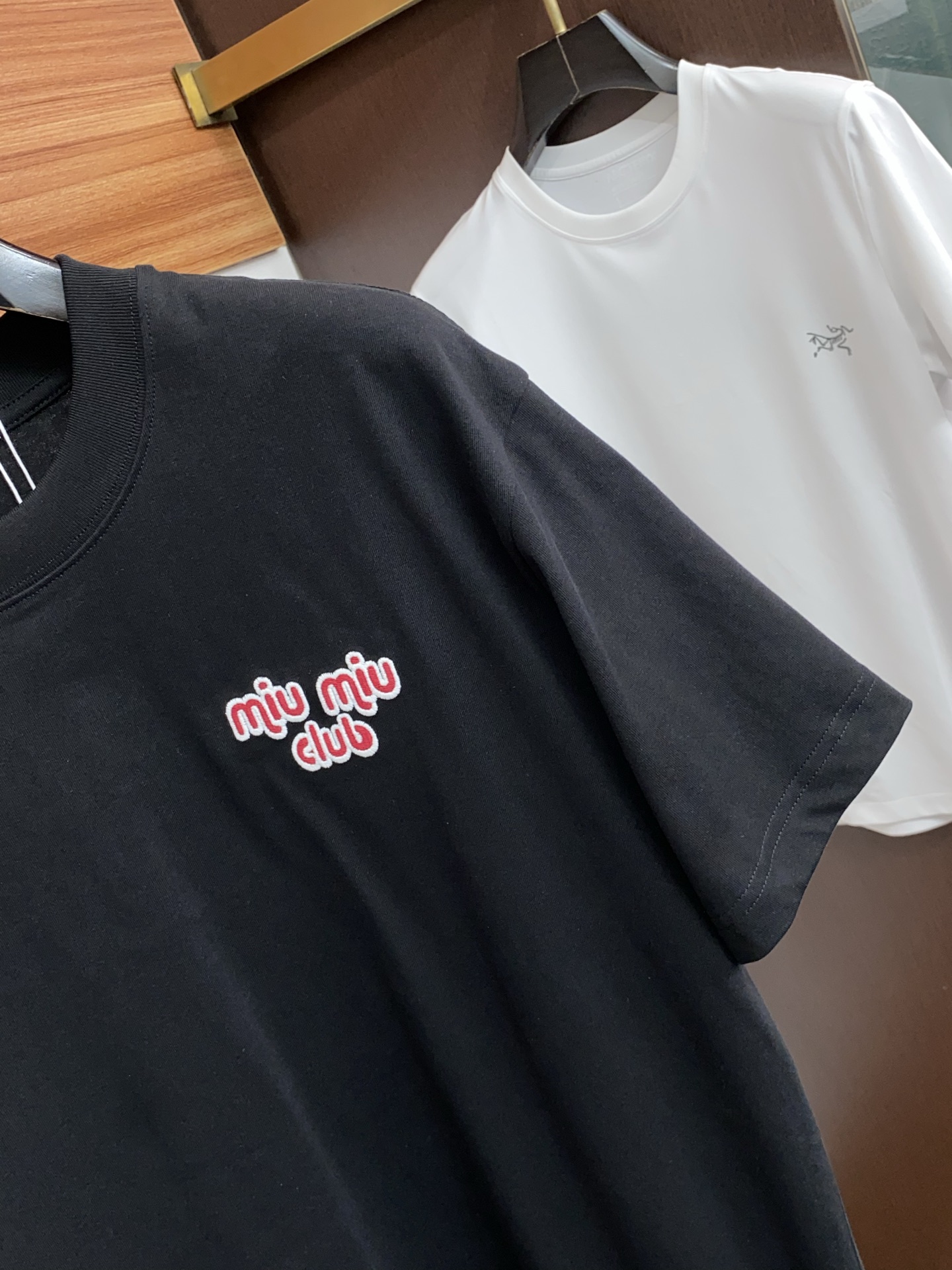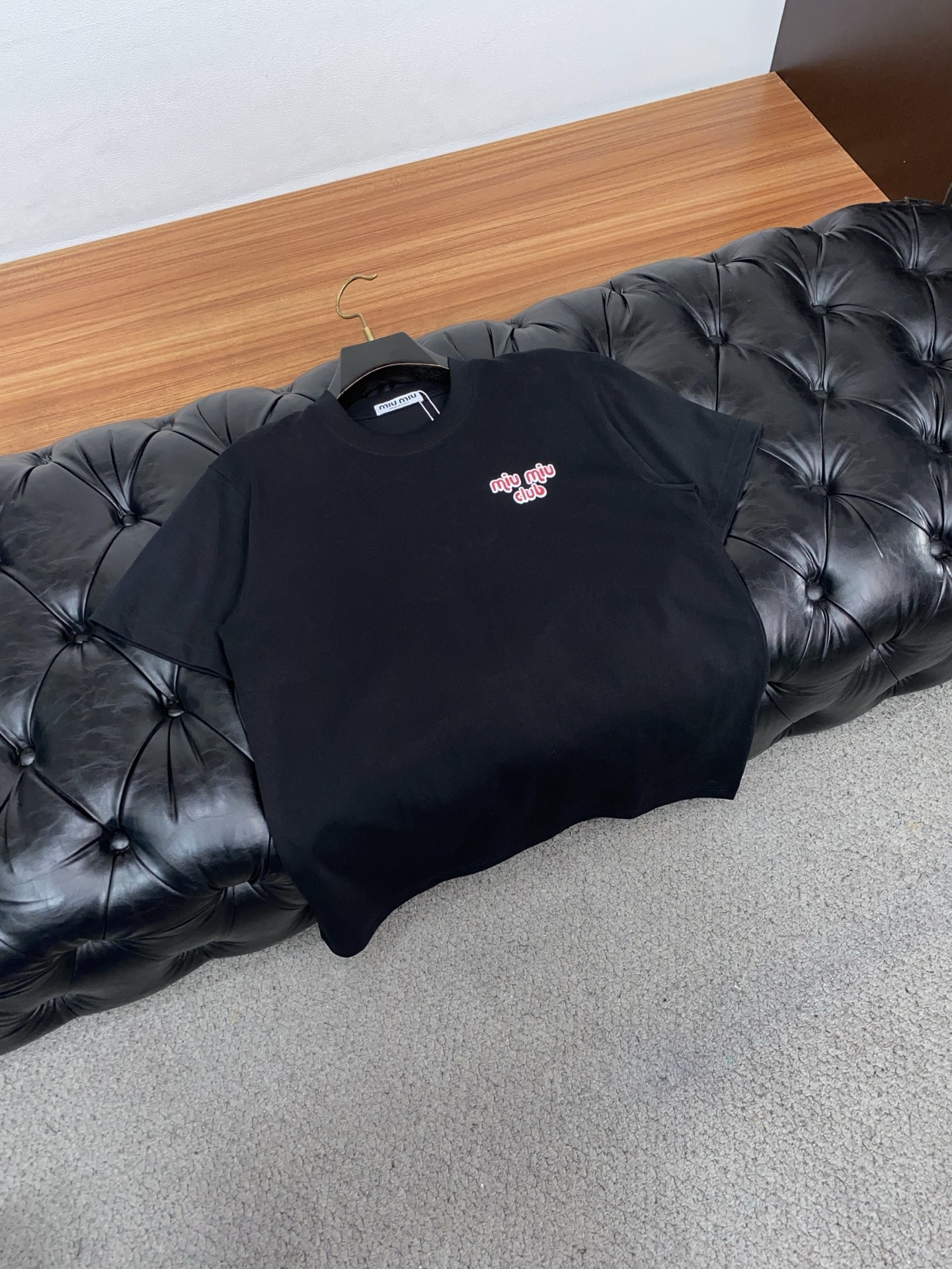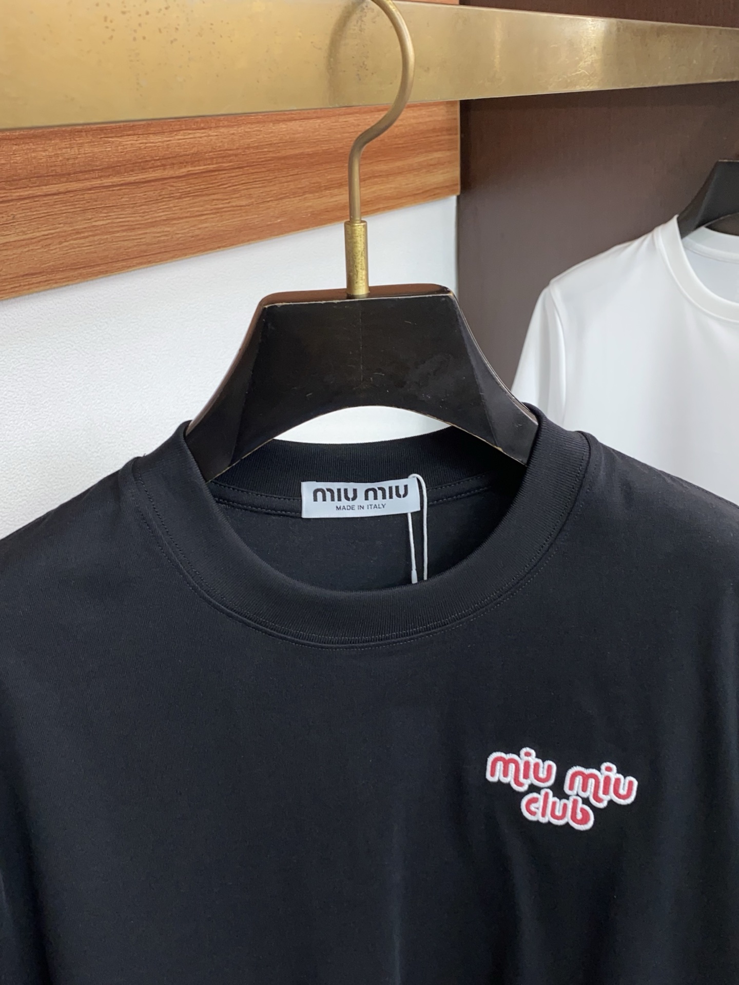 这款衣服是AAAAA 1:1 质量 (非常棒). 使用了和原版一模一样的材料. 商标部分也保持了和缪缪/Miu Miu一样. 图片拍摄是实物衣服拍摄, 您所收到的实物保证和我们图片一模一样.