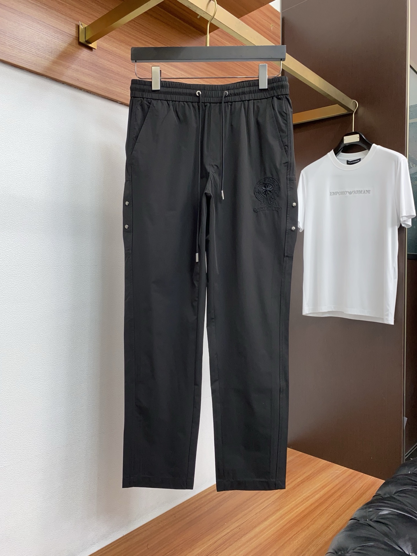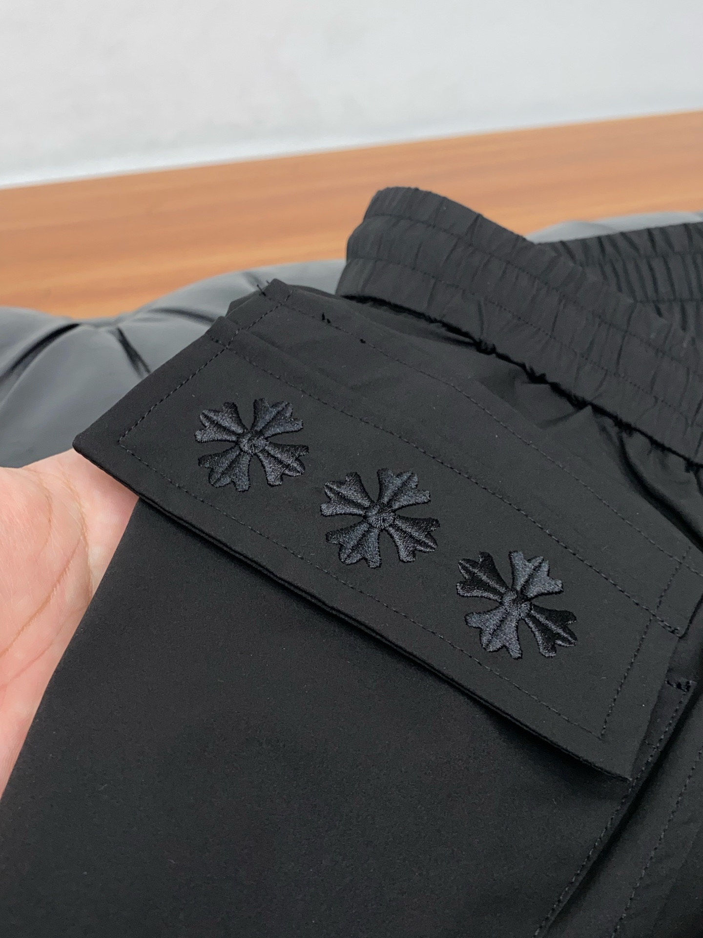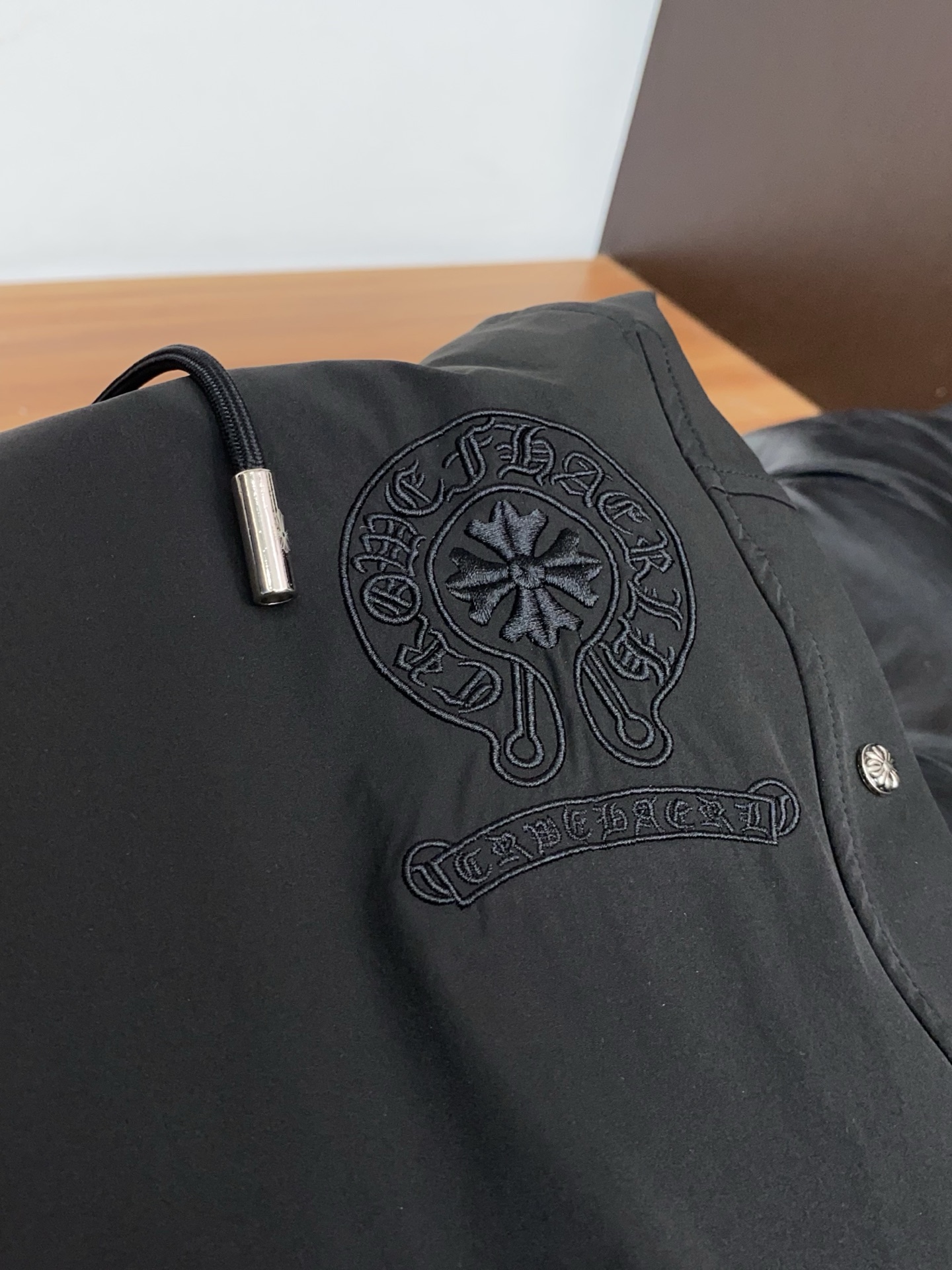 这款衣服是AAAAA 1:1 质量 (非常棒). 使用了和原版一模一样的材料. 商标部分也保持了和克罗心/Chrome Hearts一样. 图片拍摄是实物衣服拍摄, 您所收到的实物保证和我们图片一模一样.
