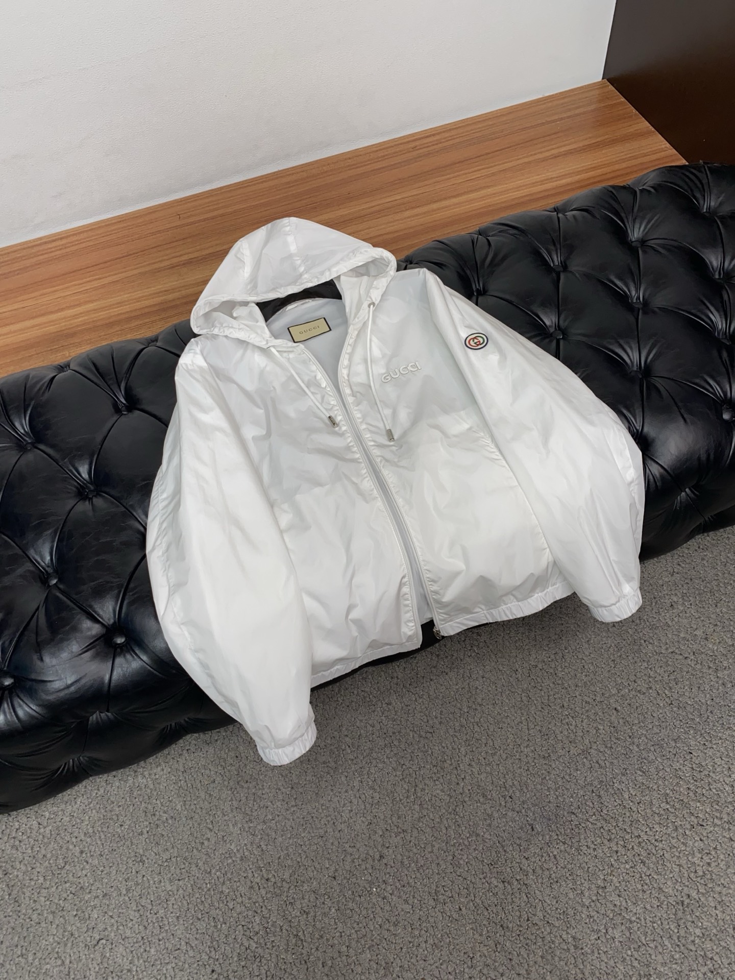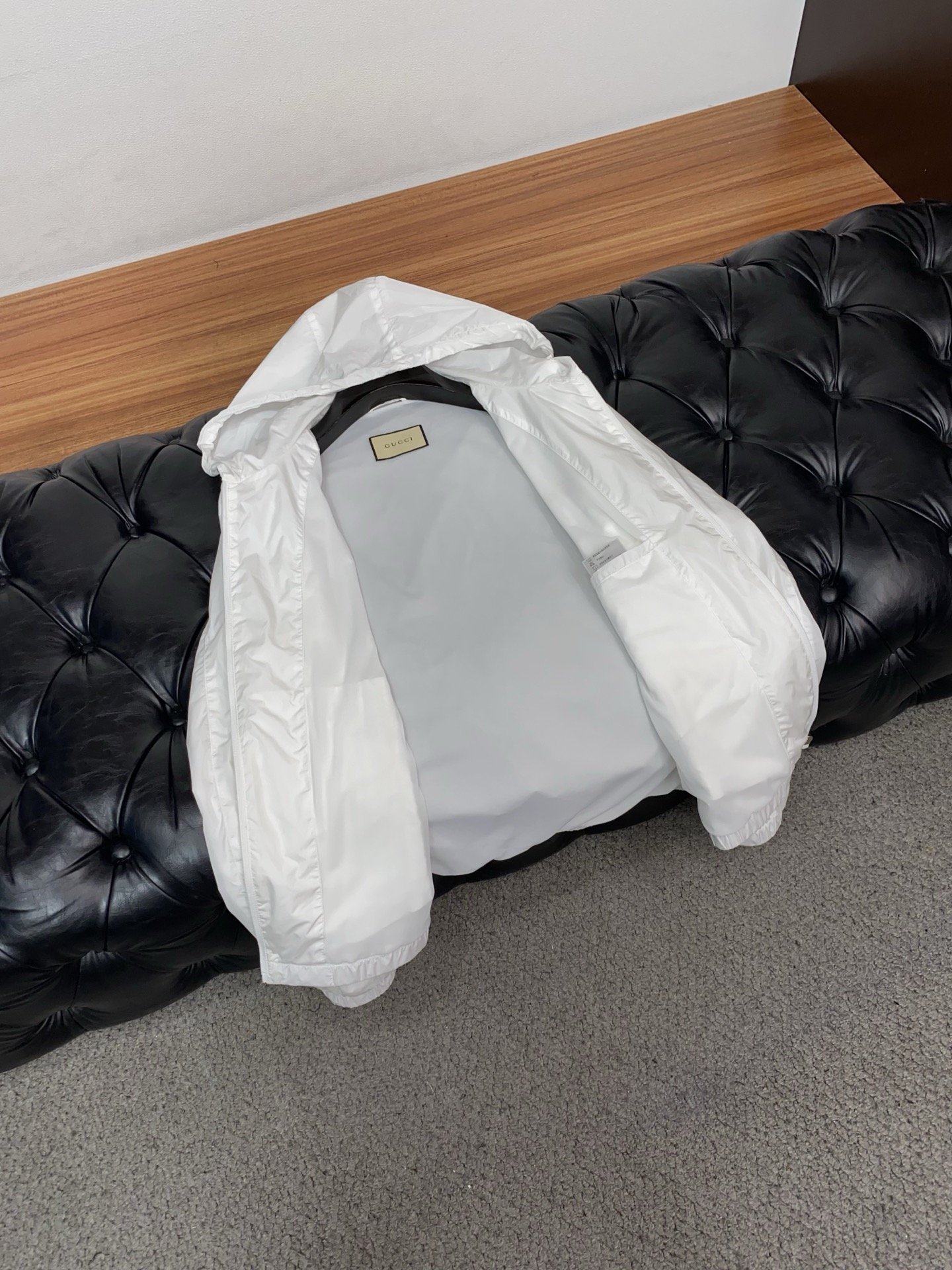这款衣服是AAAAA 1:1 质量 (非常棒). 使用了和原版一模一样的材料. 商标部分也保持了和古奇/Gucci一样. 图片拍摄是实物衣服拍摄, 您所收到的实物保证和我们图片一模一样.