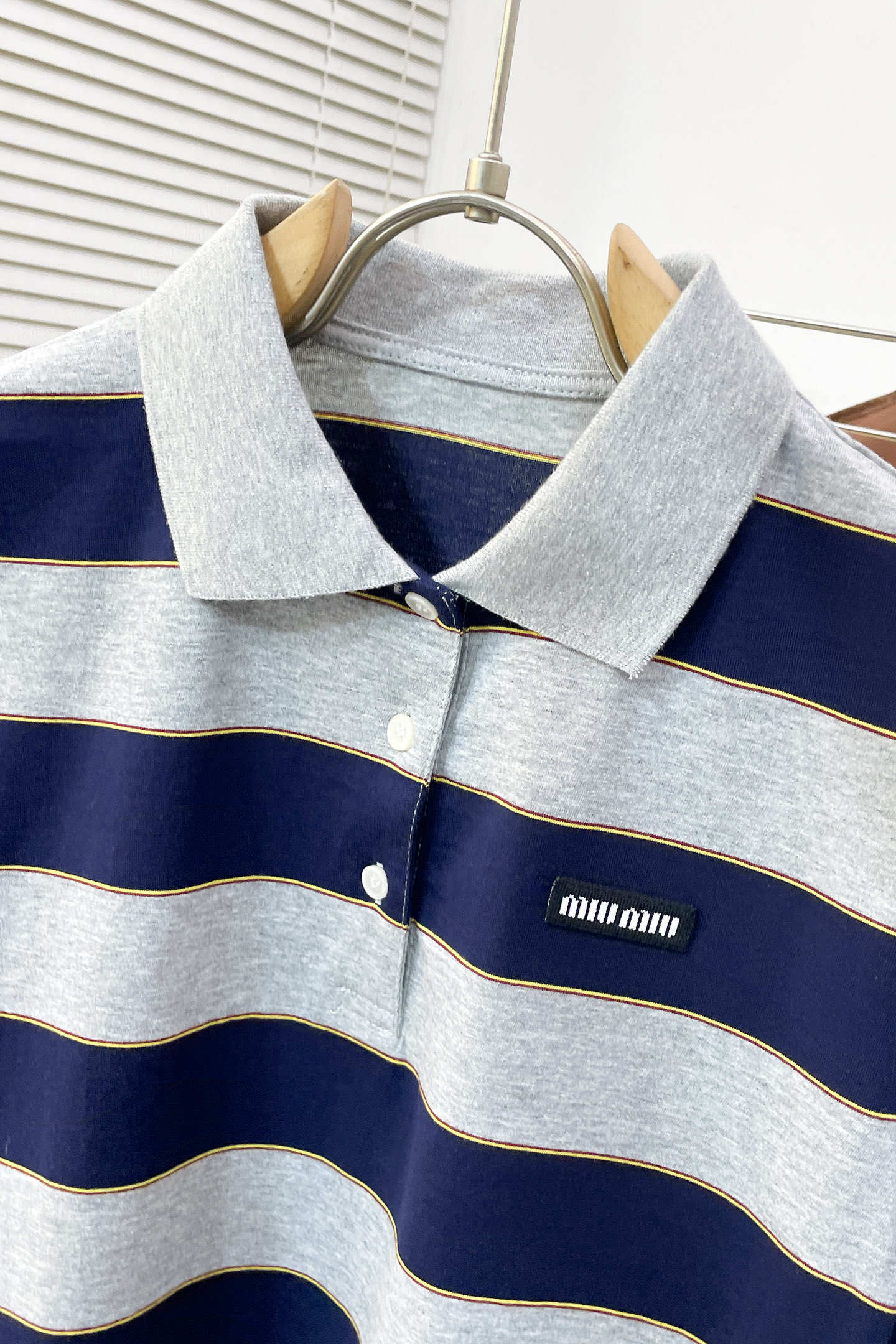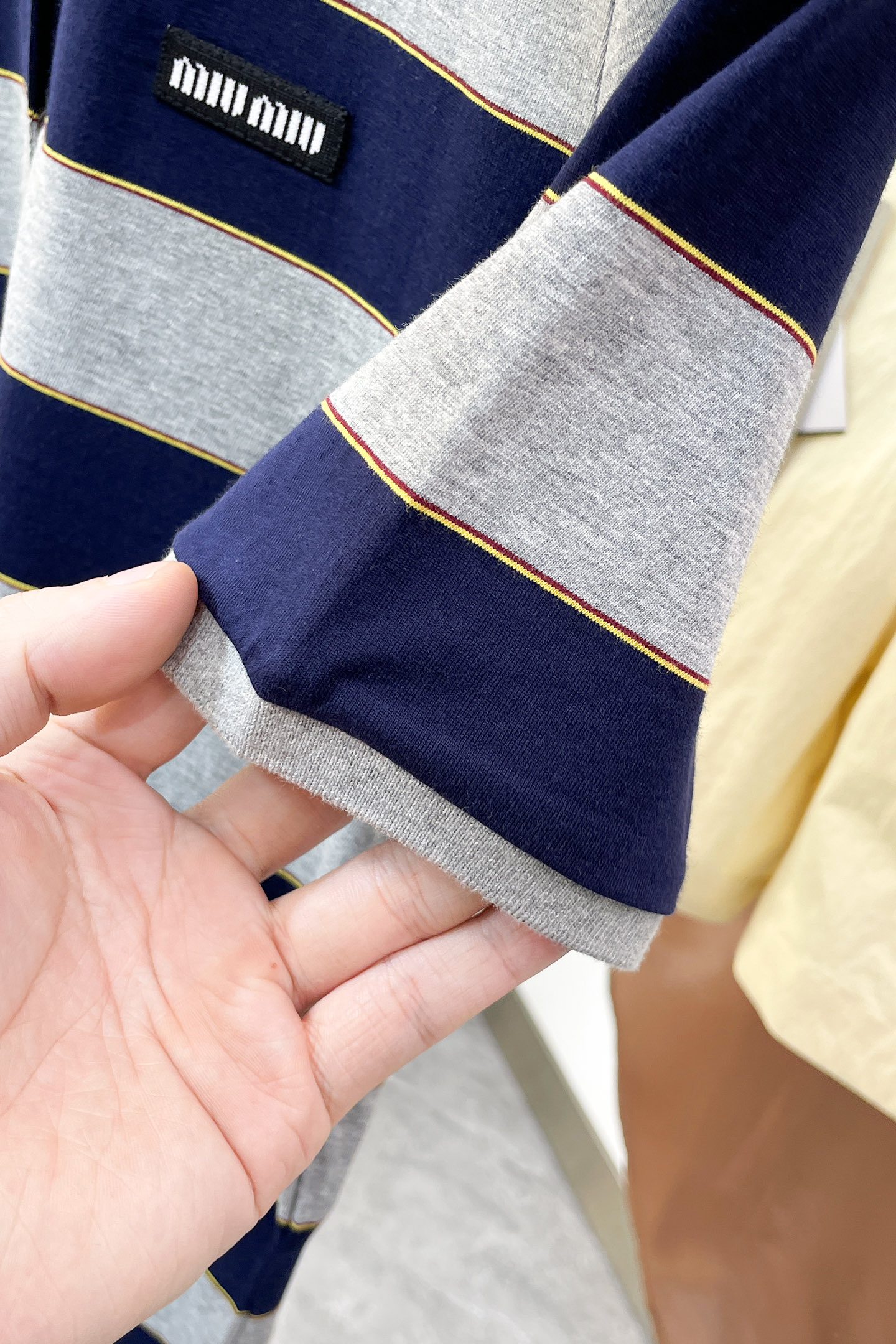 这款衣服是AAAAA 1:1 质量 (非常棒). 使用了和原版一模一样的材料. 商标部分也保持了和缪缪/Miu Miu一样. 图片拍摄是实物衣服拍摄, 您所收到的实物保证和我们图片一模一样.
