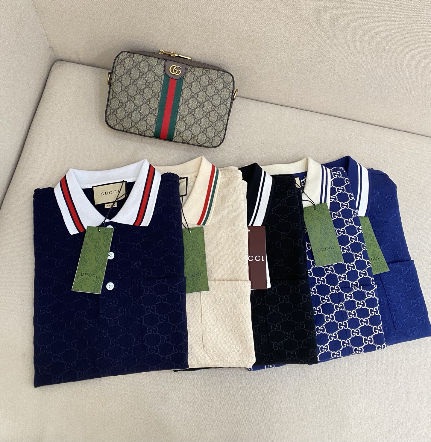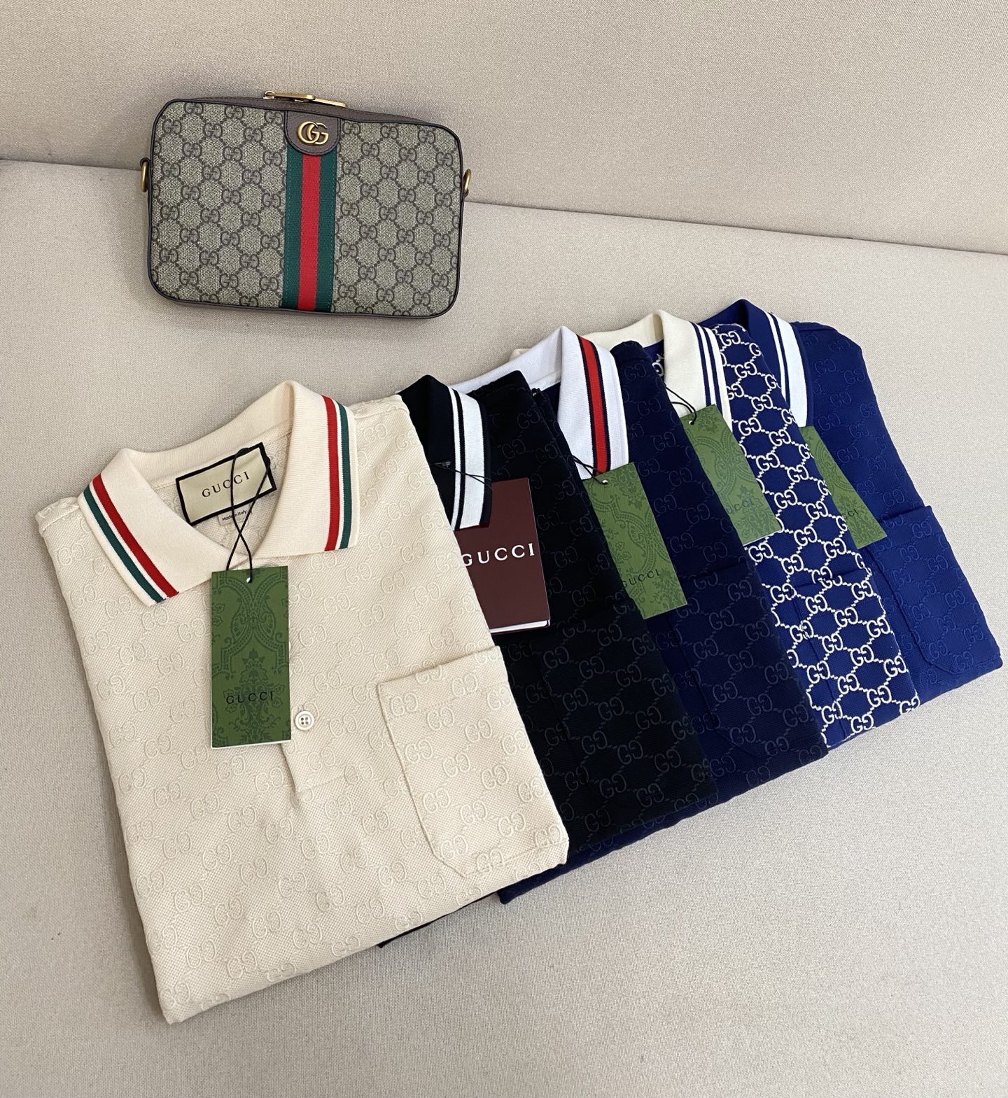 这款衣服是AAAAA 1:1 质量 (非常棒). 使用了和原版一模一样的材料. 商标部分也保持了和古奇/Gucci一样. 图片拍摄是实物衣服拍摄, 您所收到的实物保证和我们图片一模一样.
