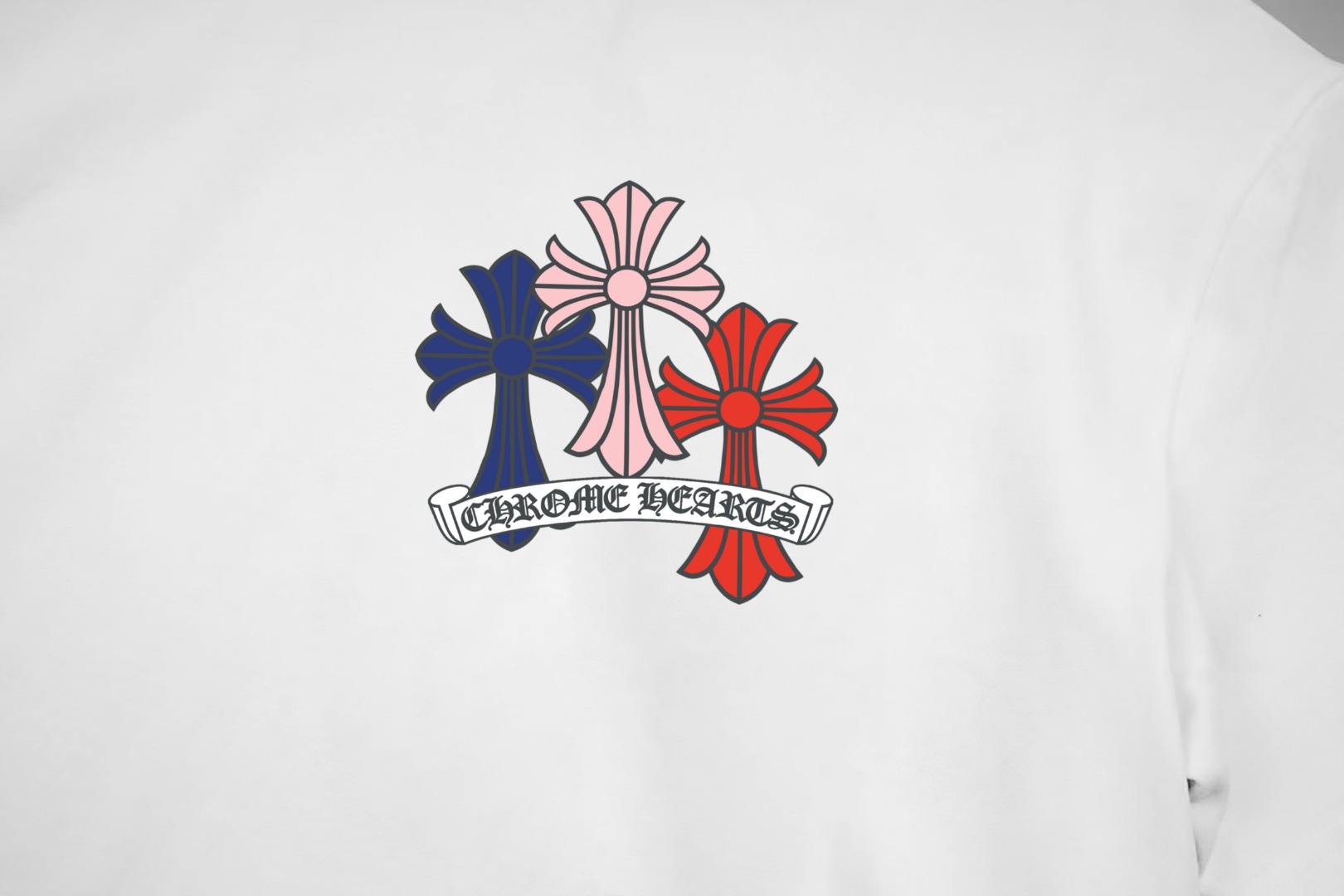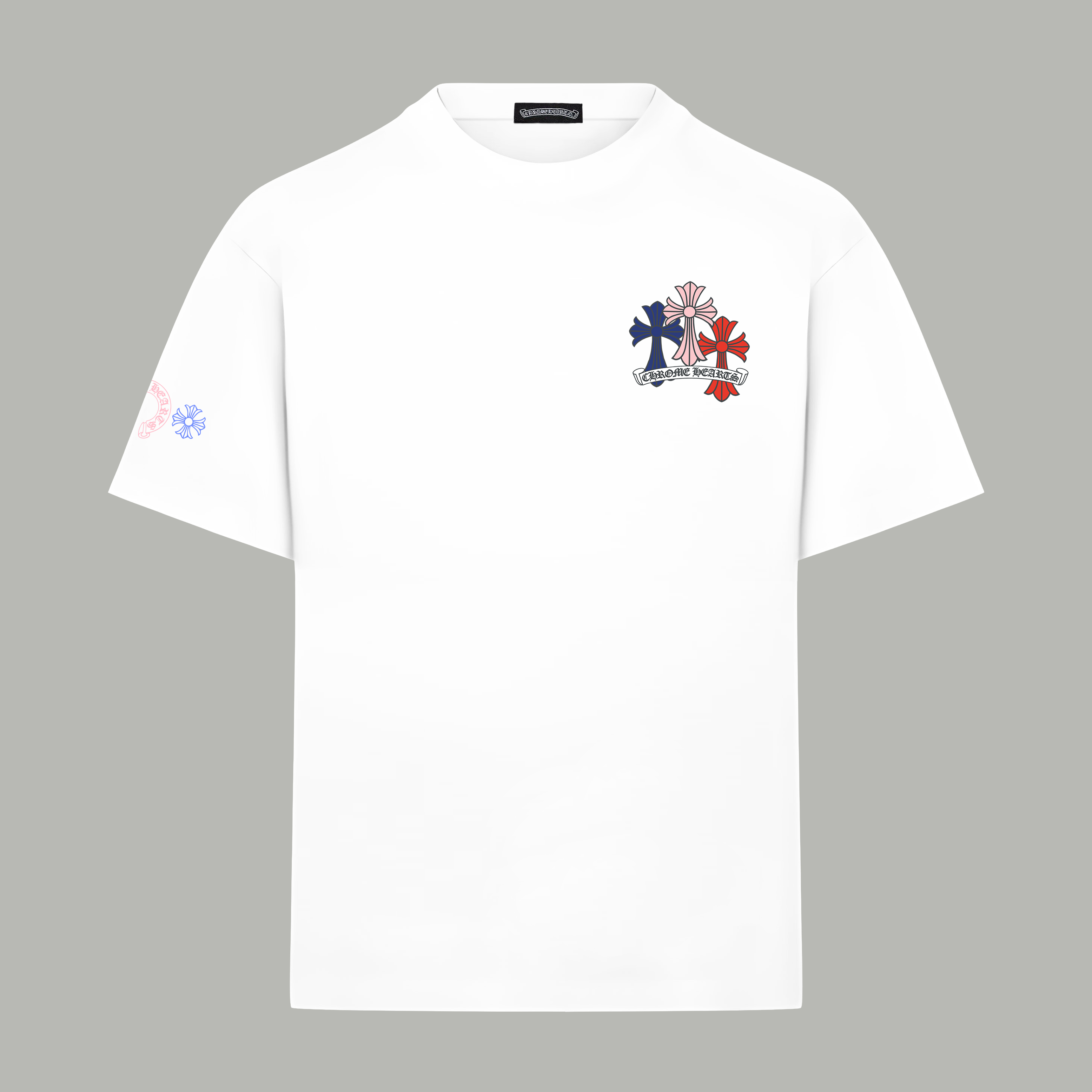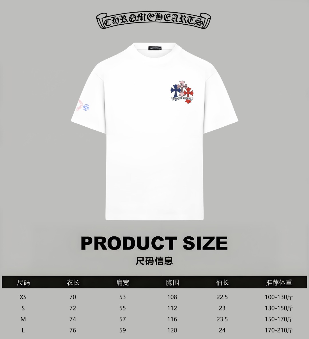 这款衣服是AAAAA 1:1 质量 (非常棒). 使用了和原版一模一样的材料. 商标部分也保持了和克罗心/Chrome Hearts一样. 图片拍摄是实物衣服拍摄, 您所收到的实物保证和我们图片一模一样.