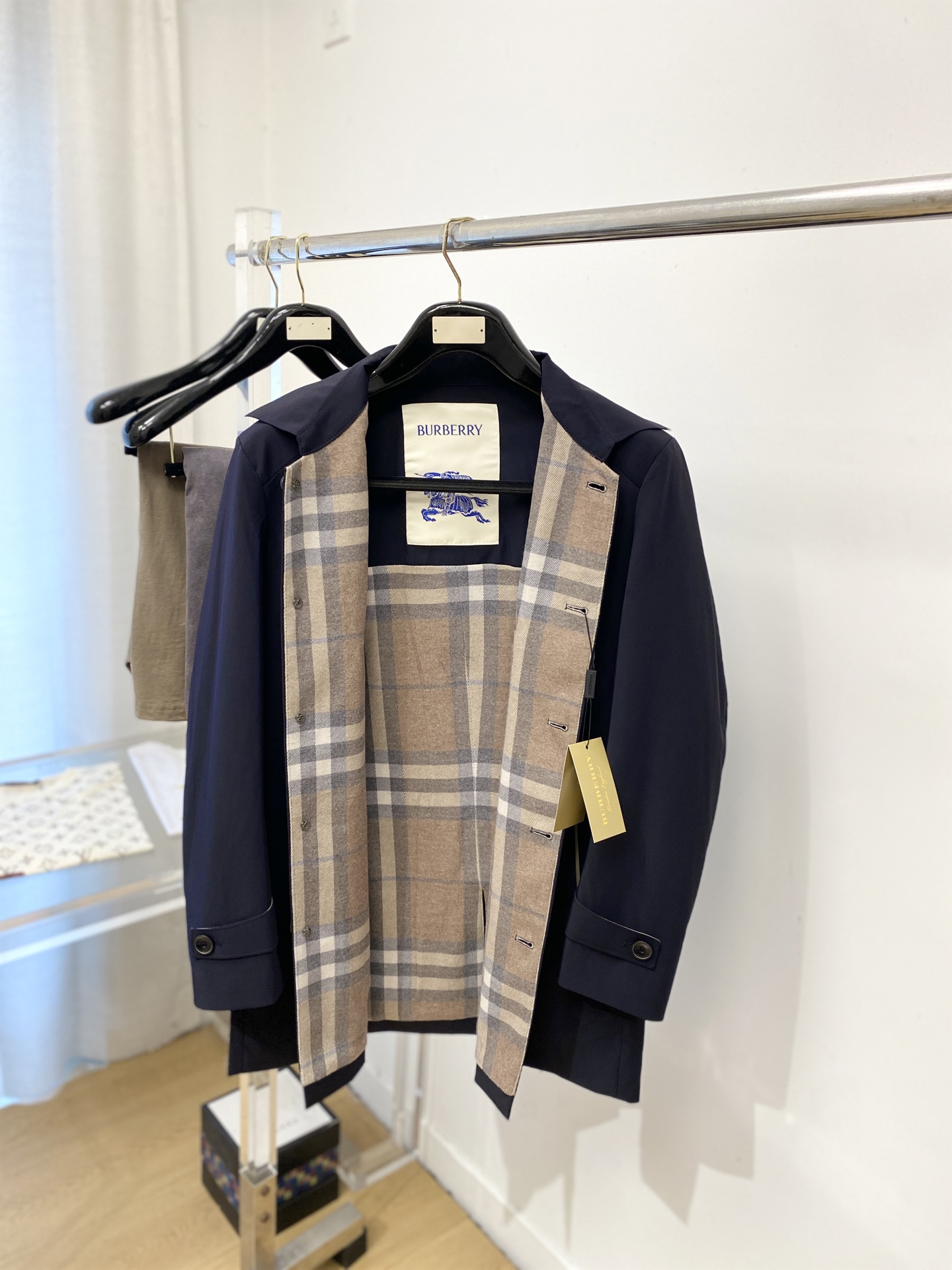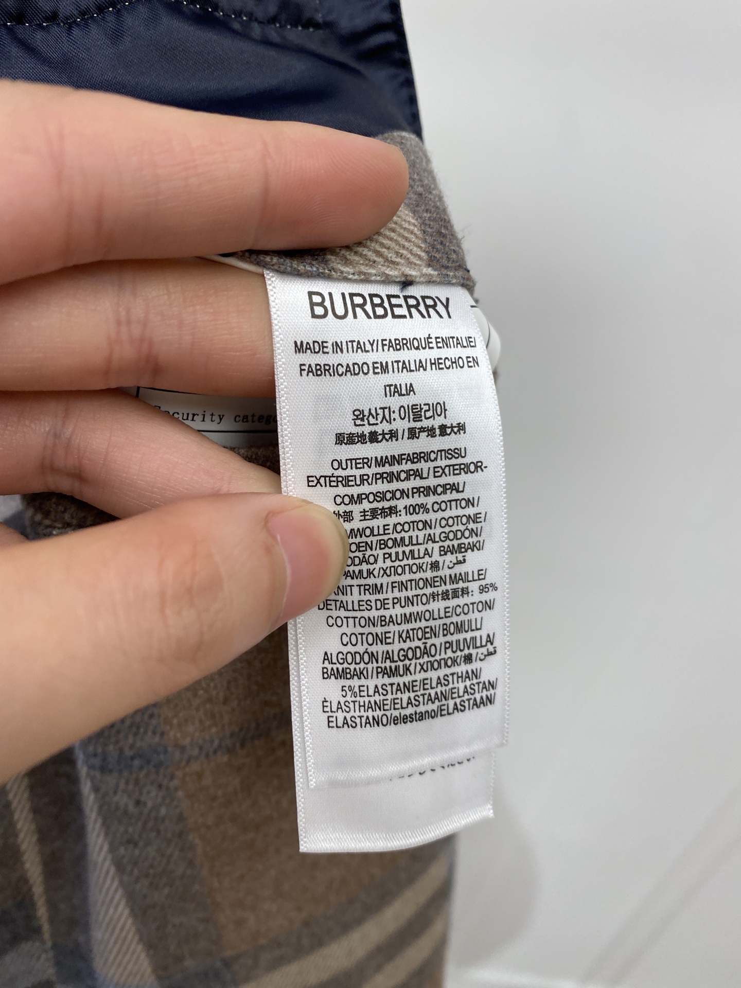 这款衣服是AAAAA 1:1 质量 (非常棒). 使用了和原版一模一样的材料. 商标部分也保持了和巴宝莉/Burberry一样. 图片拍摄是实物衣服拍摄, 您所收到的实物保证和我们图片一模一样.