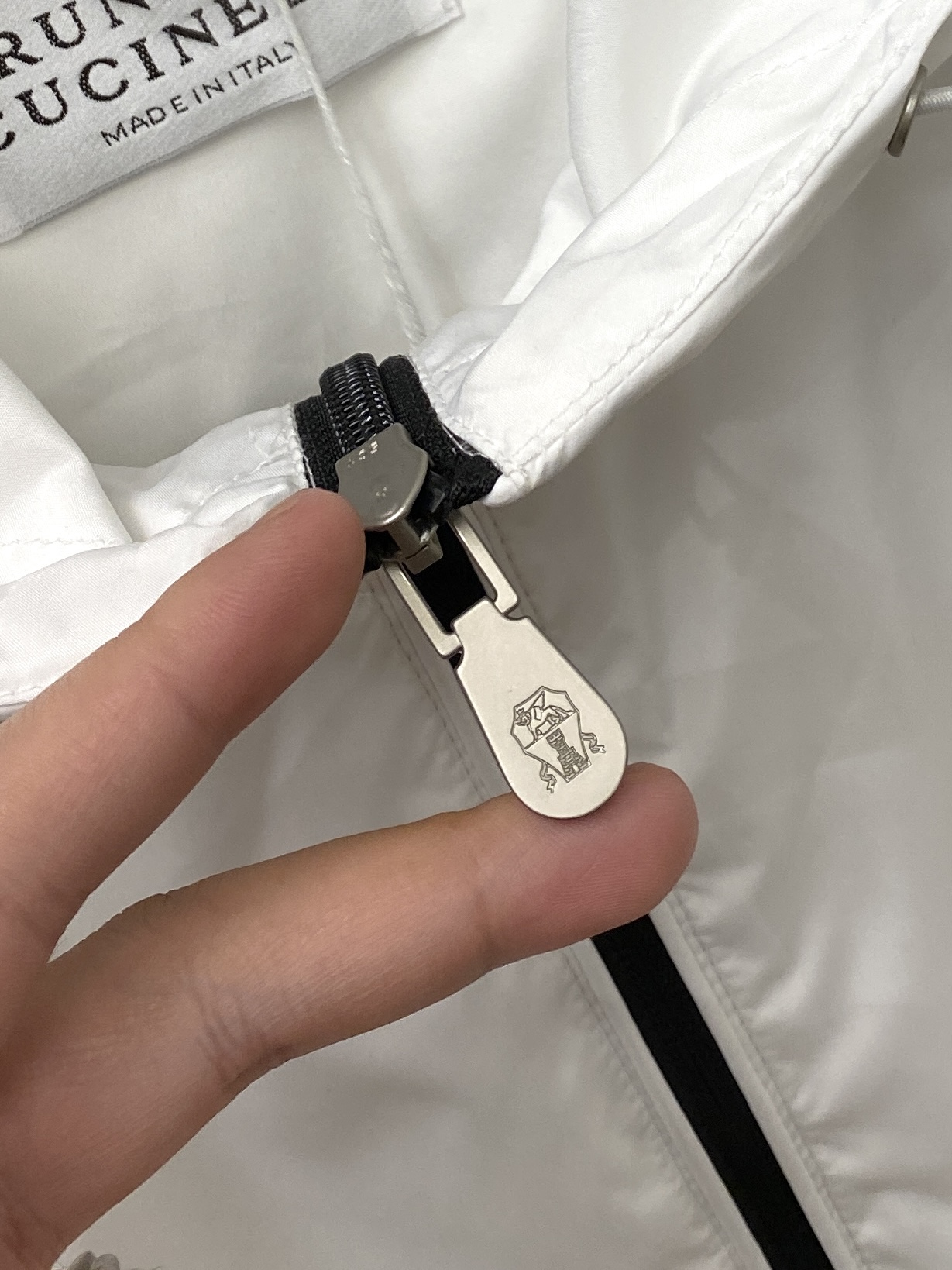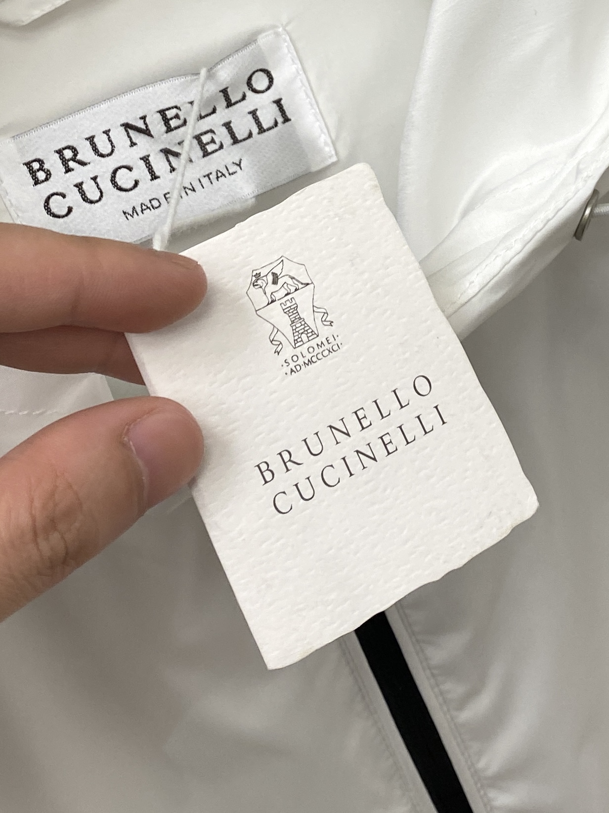 这款衣服是AAAAA 1:1 质量 (非常棒). 使用了和原版一模一样的材料. 商标部分也保持了和Brunello Cucinelli一样. 图片拍摄是实物衣服拍摄, 您所收到的实物保证和我们图片一模一样.