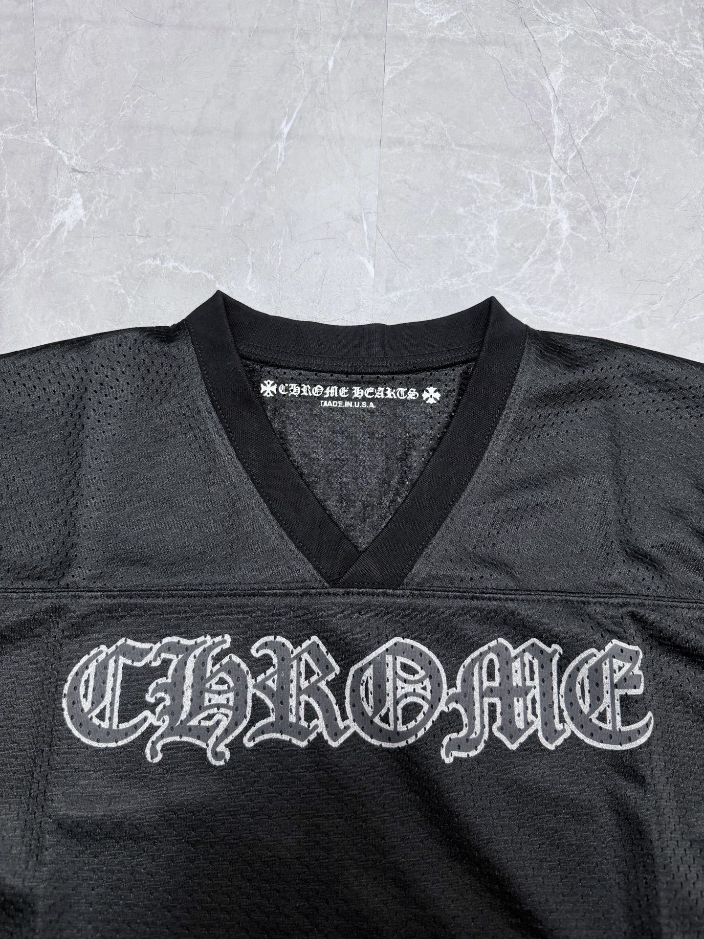 这款衣服是AAAAA 1:1 质量 (非常棒). 使用了和原版一模一样的材料. 商标部分也保持了和克罗心/Chrome Hearts一样. 图片拍摄是实物衣服拍摄, 您所收到的实物保证和我们图片一模一样.