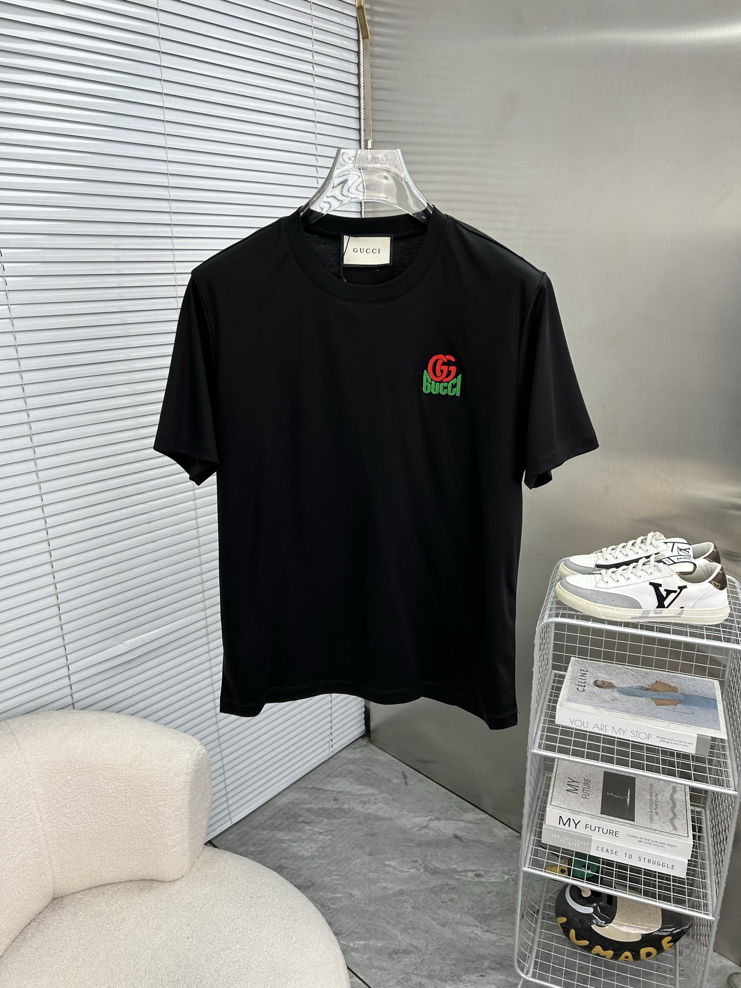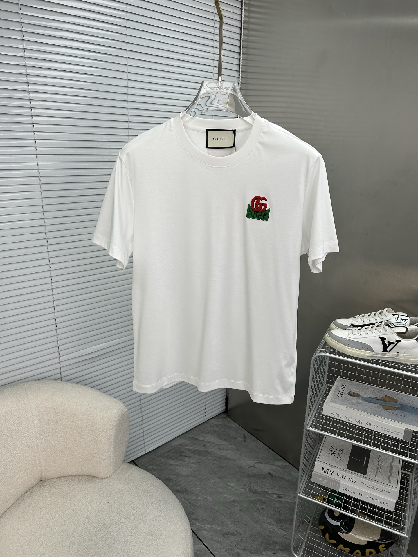 这款衣服是AAAAA 1:1 质量 (非常棒). 使用了和原版一模一样的材料. 商标部分也保持了和古奇/Gucci一样. 图片拍摄是实物衣服拍摄, 您所收到的实物保证和我们图片一模一样.