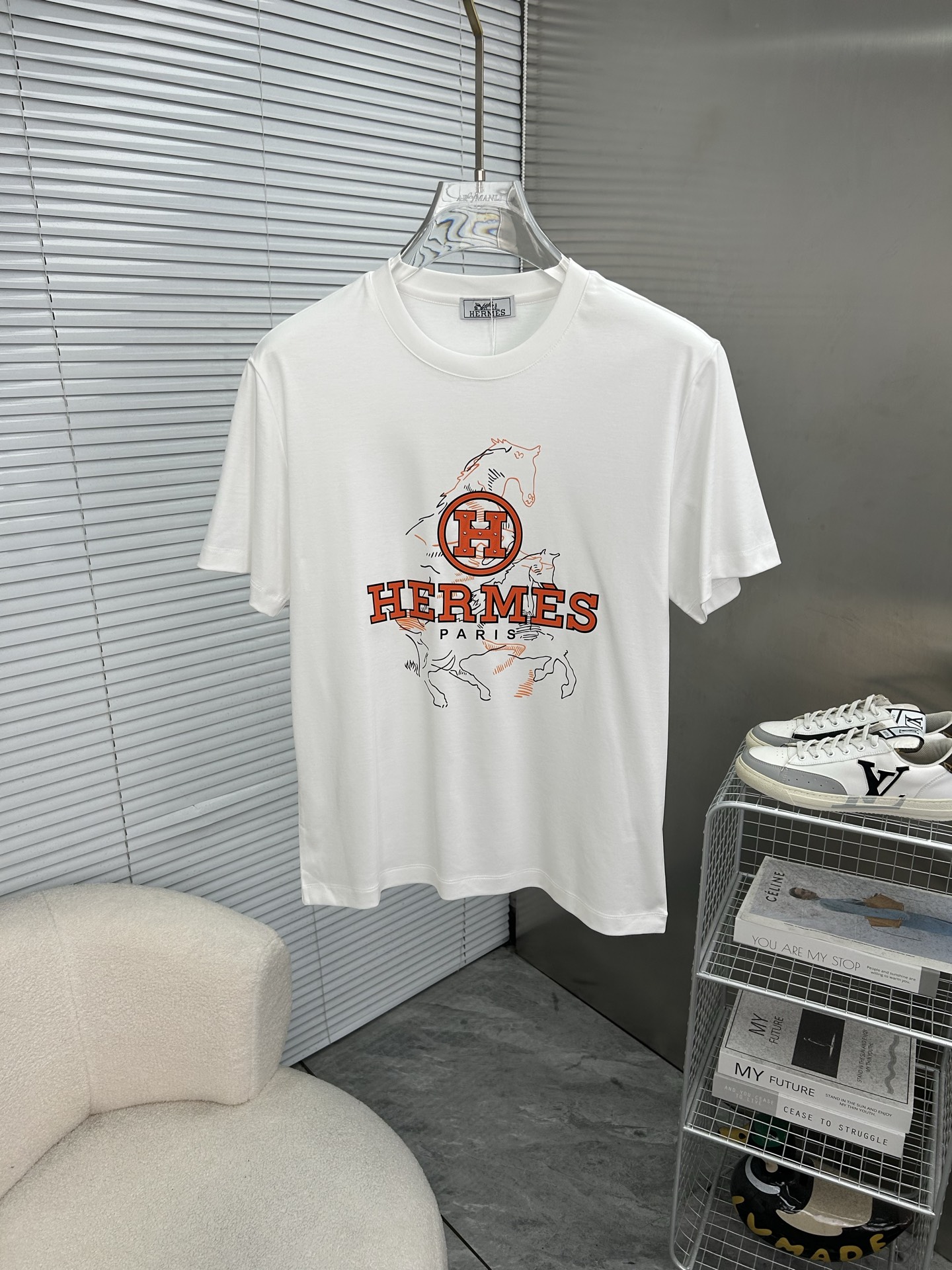 这款衣服是AAAAA 1:1 质量 (非常棒). 使用了和原版一模一样的材料. 商标部分也保持了和爱马仕/Hermes一样. 图片拍摄是实物衣服拍摄, 您所收到的实物保证和我们图片一模一样.