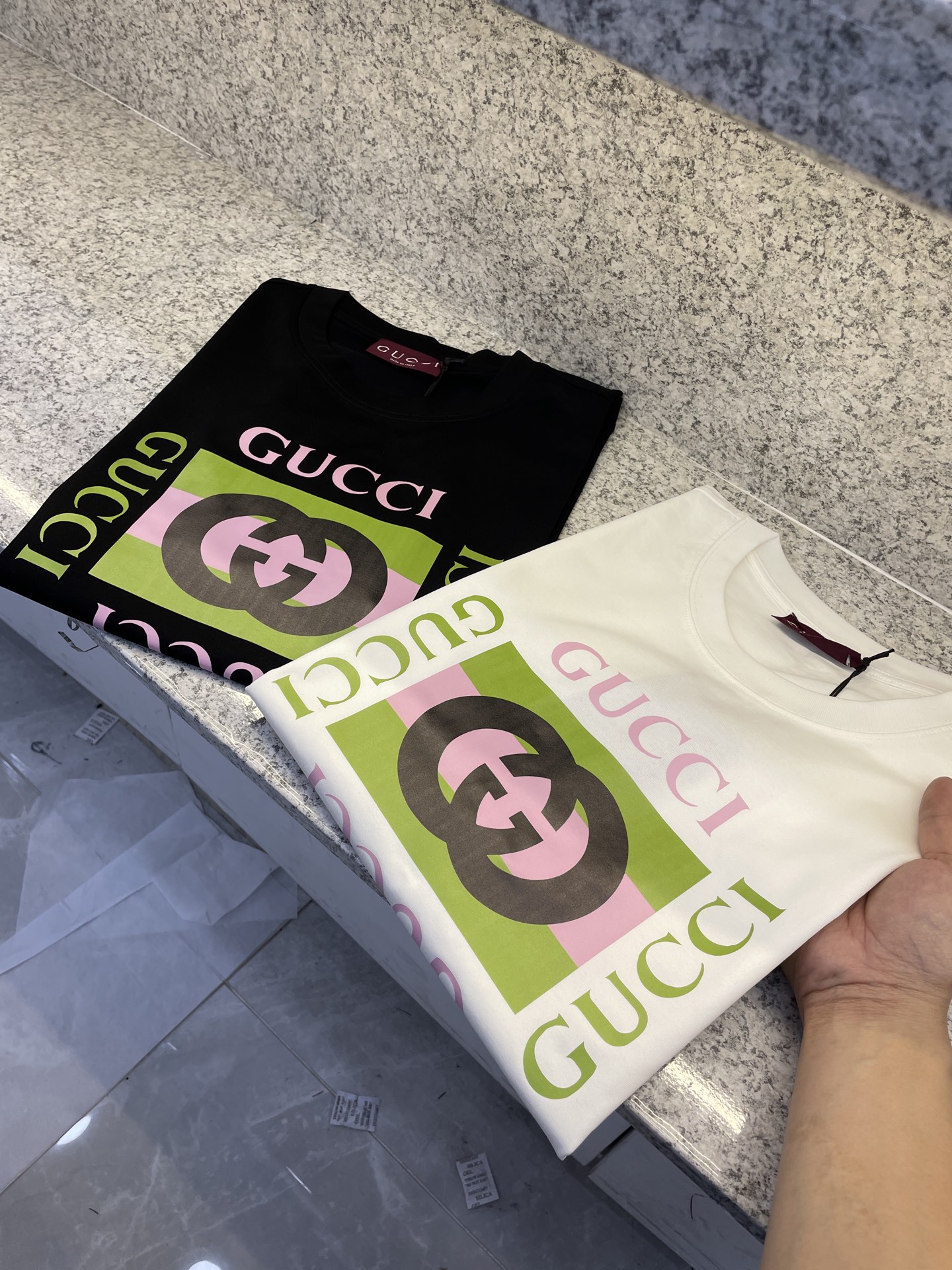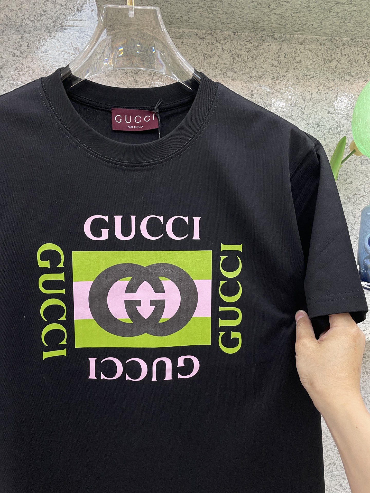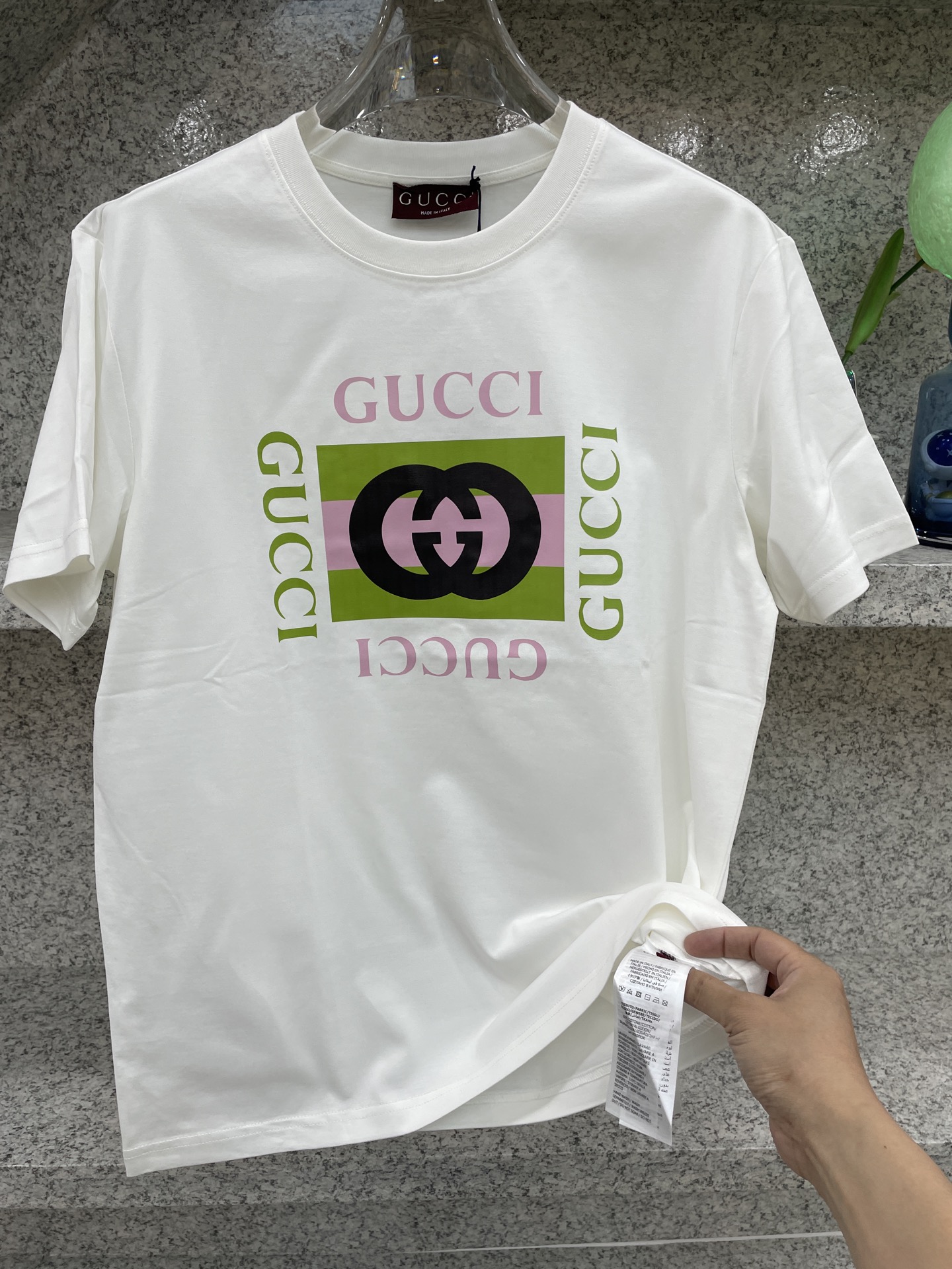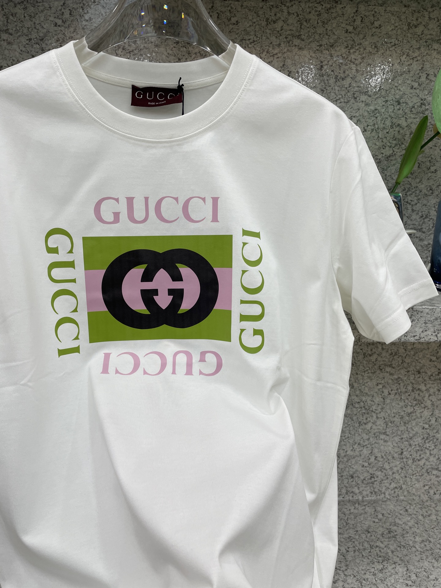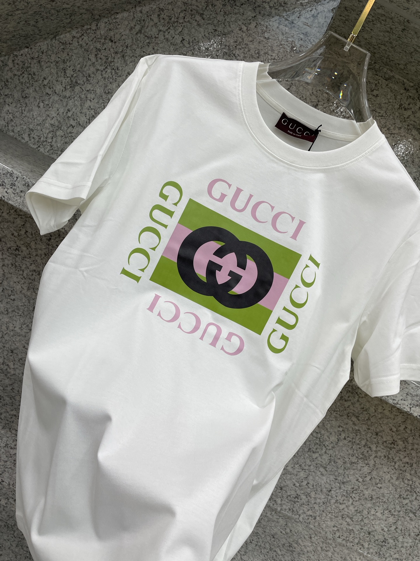 这款衣服是AAAAA 1:1 质量 (非常棒). 使用了和原版一模一样的材料. 商标部分也保持了和古奇/Gucci一样. 图片拍摄是实物衣服拍摄, 您所收到的实物保证和我们图片一模一样.