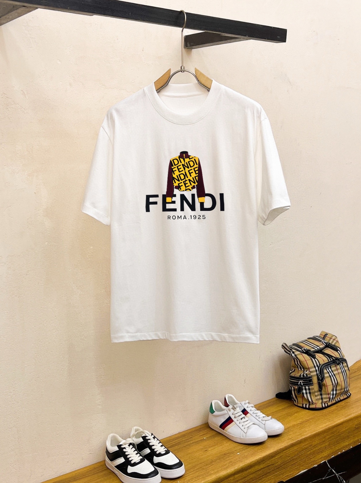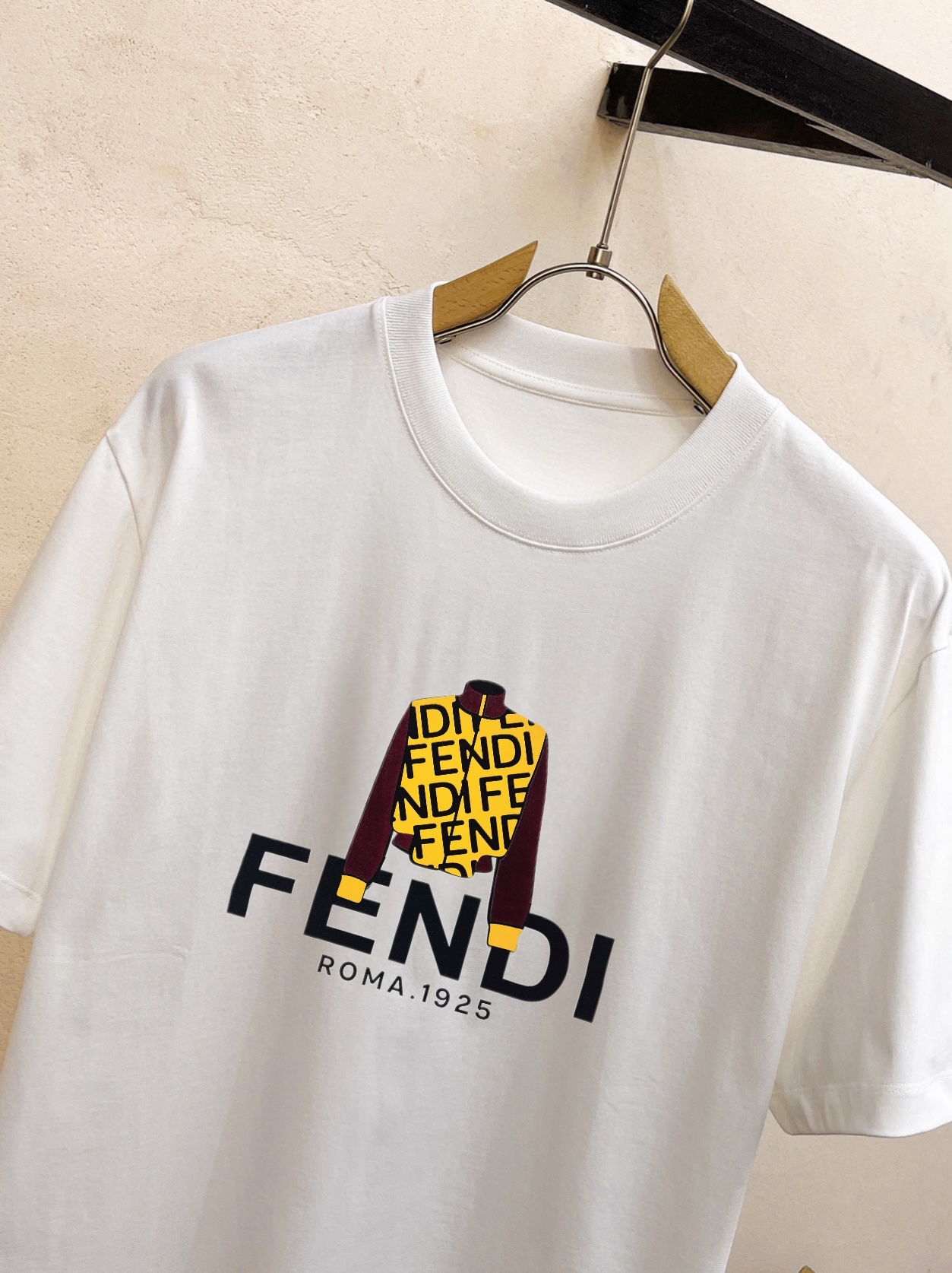 这款衣服是AAAAA 1:1 质量 (非常棒). 使用了和原版一模一样的材料. 商标部分也保持了和芬迪/Fendi一样. 图片拍摄是实物衣服拍摄, 您所收到的实物保证和我们图片一模一样.