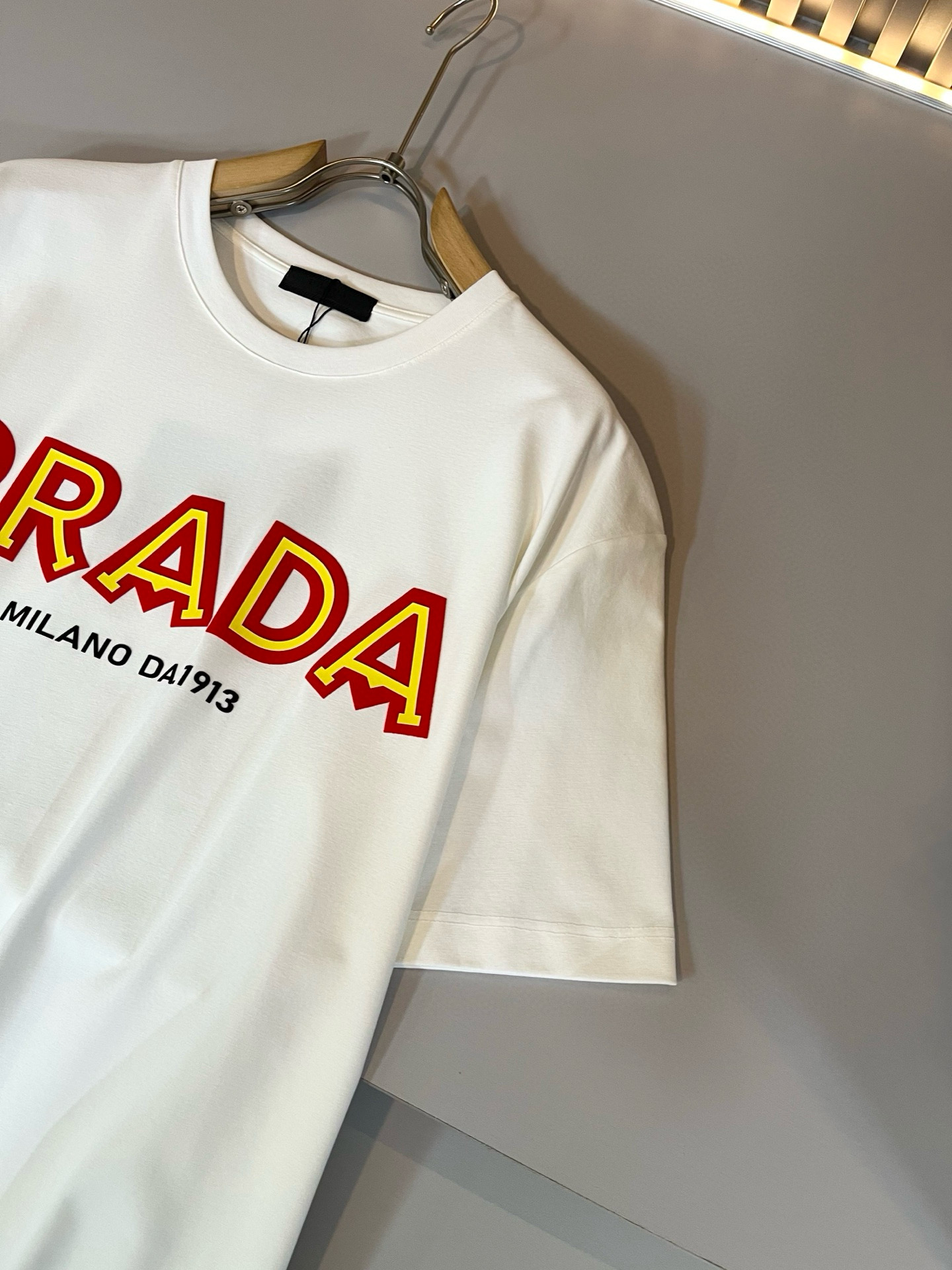 这款衣服是AAAAA 1:1 质量 (非常棒). 使用了和原版一模一样的材料. 商标部分也保持了和普拉达/Prada一样. 图片拍摄是实物衣服拍摄, 您所收到的实物保证和我们图片一模一样.