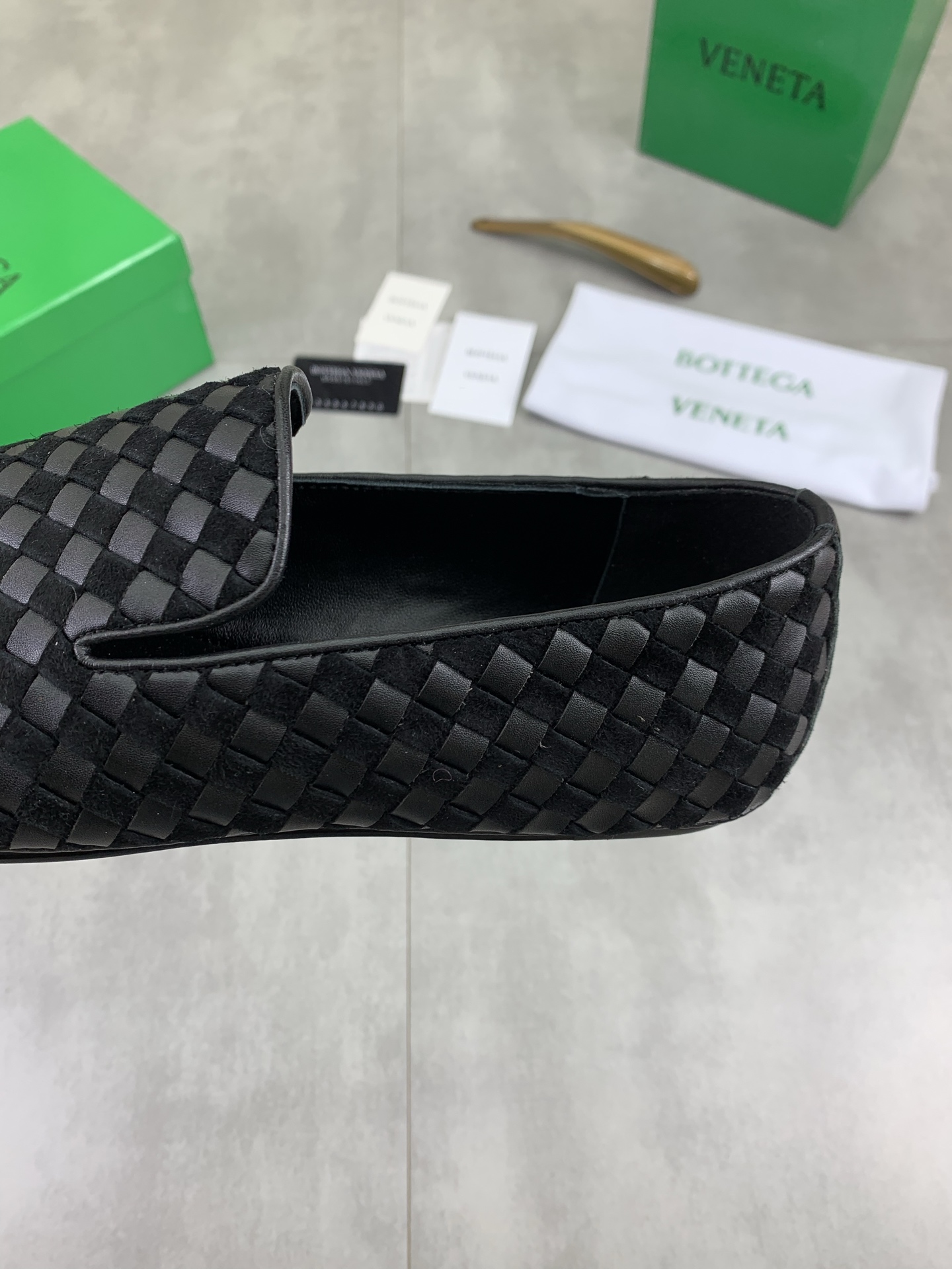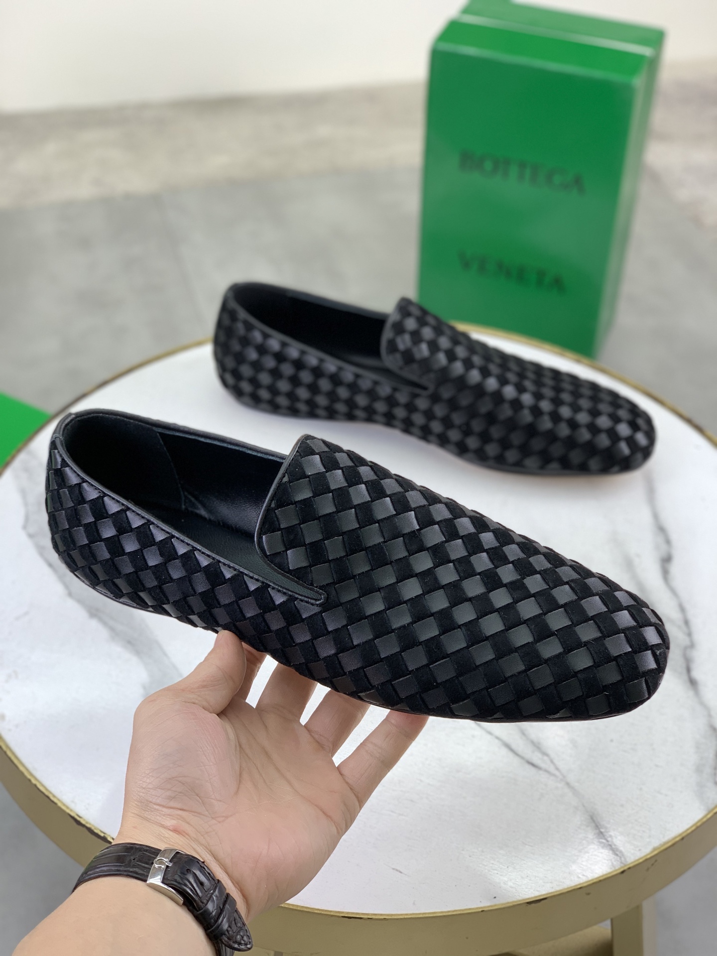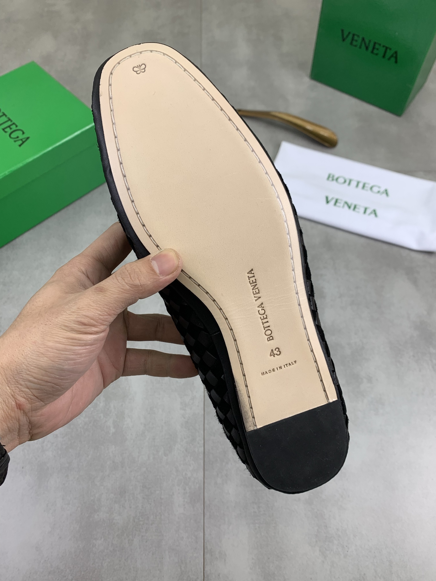 这款鞋子是AAAAA 1:1 质量 (非常棒). 使用了和原版一模一样的材料. 商标部分也保持了和葆蝶家/Bottega Veneta一样. 图片拍摄是实物鞋子拍摄, 您所收到的实物保证和我们图片一模一样.