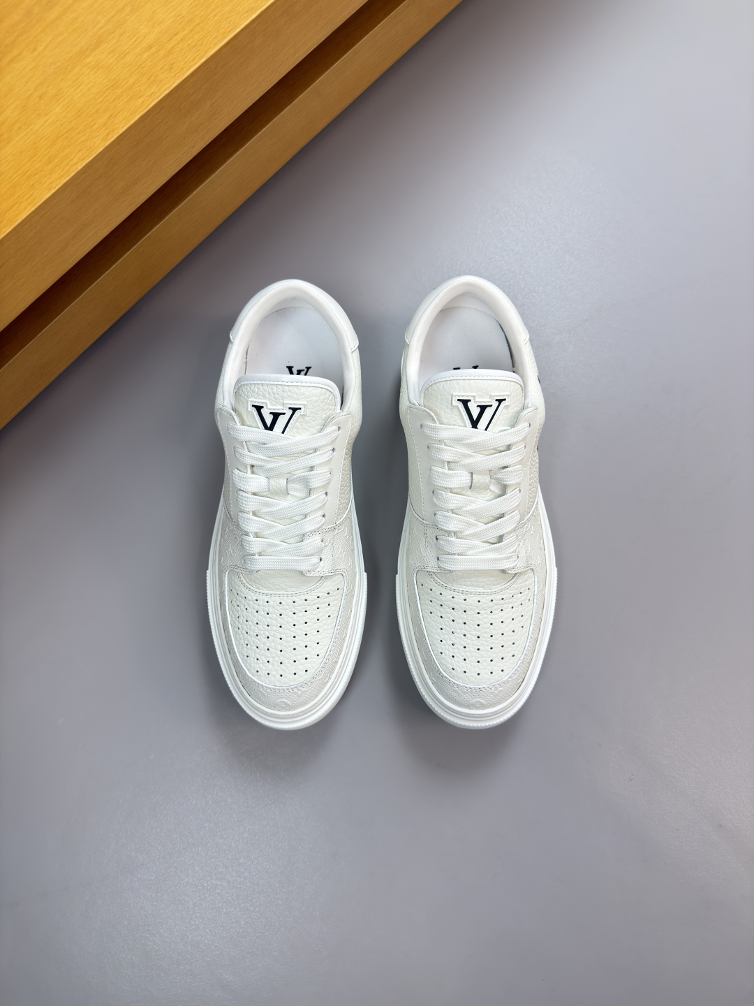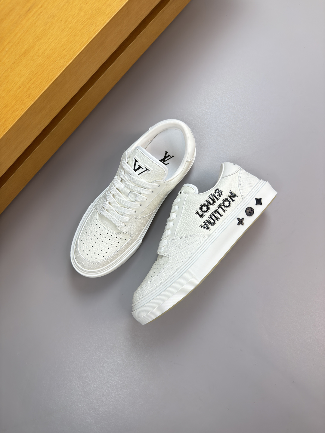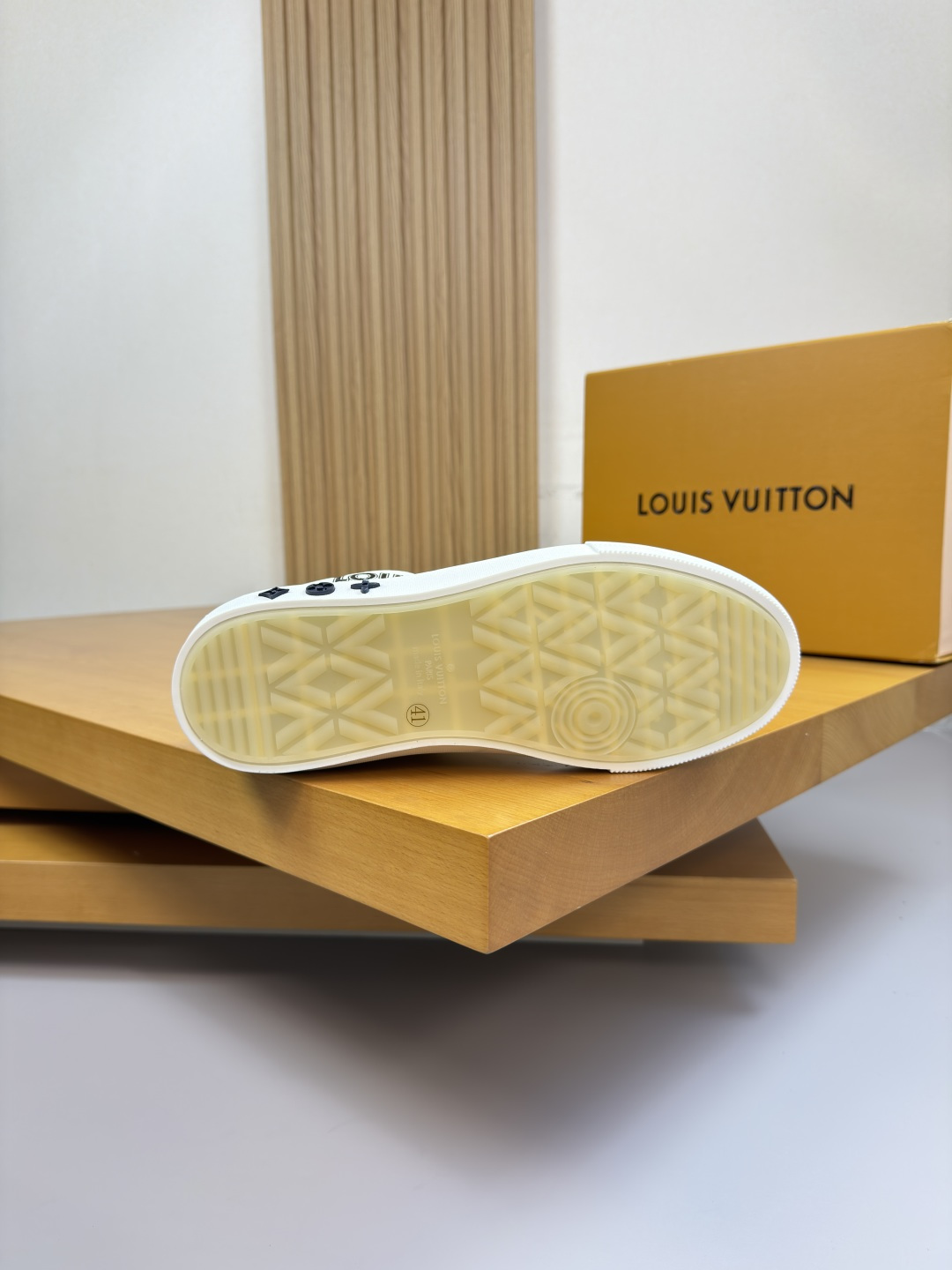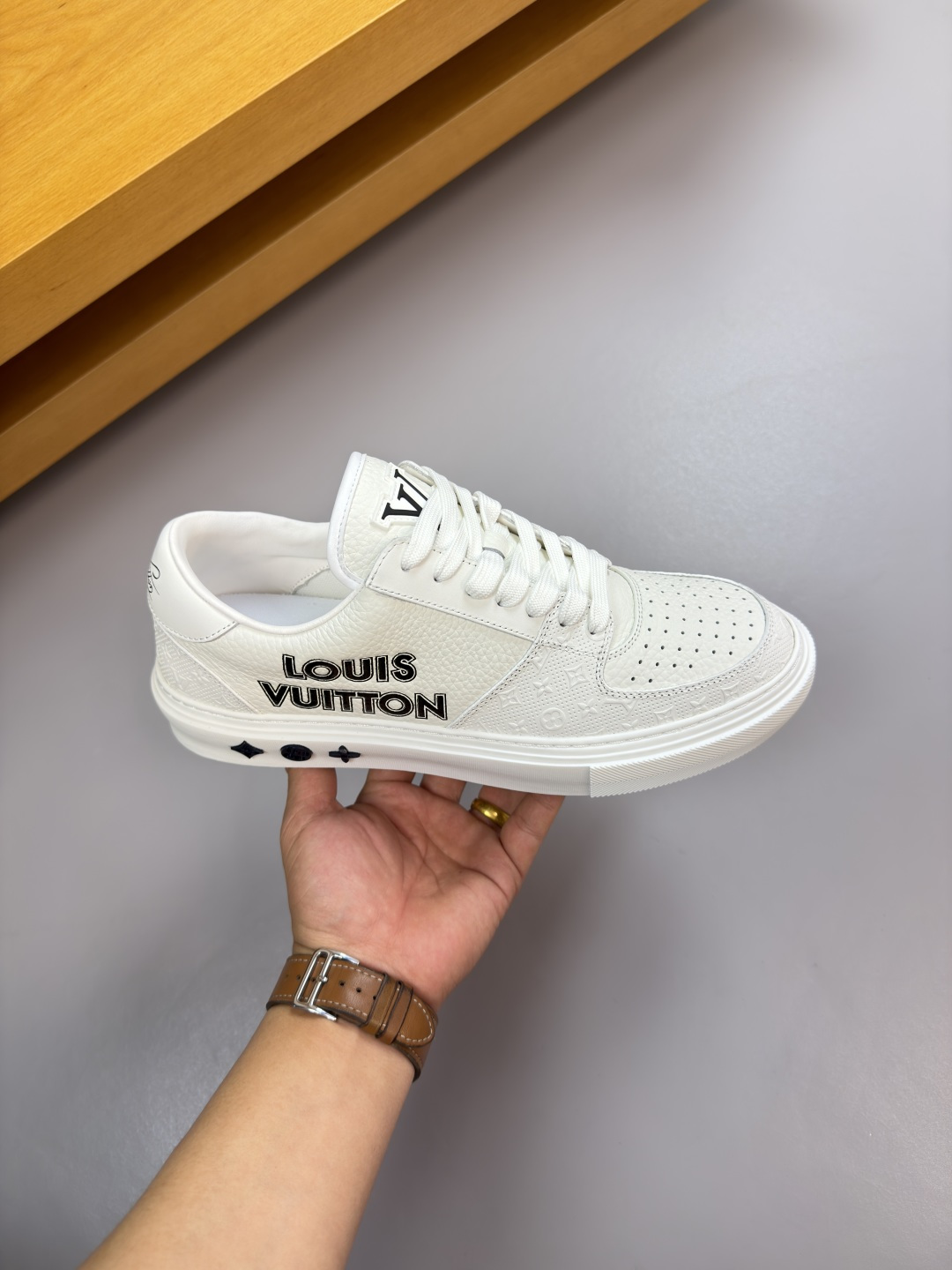 这款鞋子是AAAAA 1:1 质量 (非常棒). 使用了和原版一模一样的材料. 商标部分也保持了和路易威登/Louis Vuitton一样. 图片拍摄是实物鞋子拍摄, 您所收到的实物保证和我们图片一模一样.