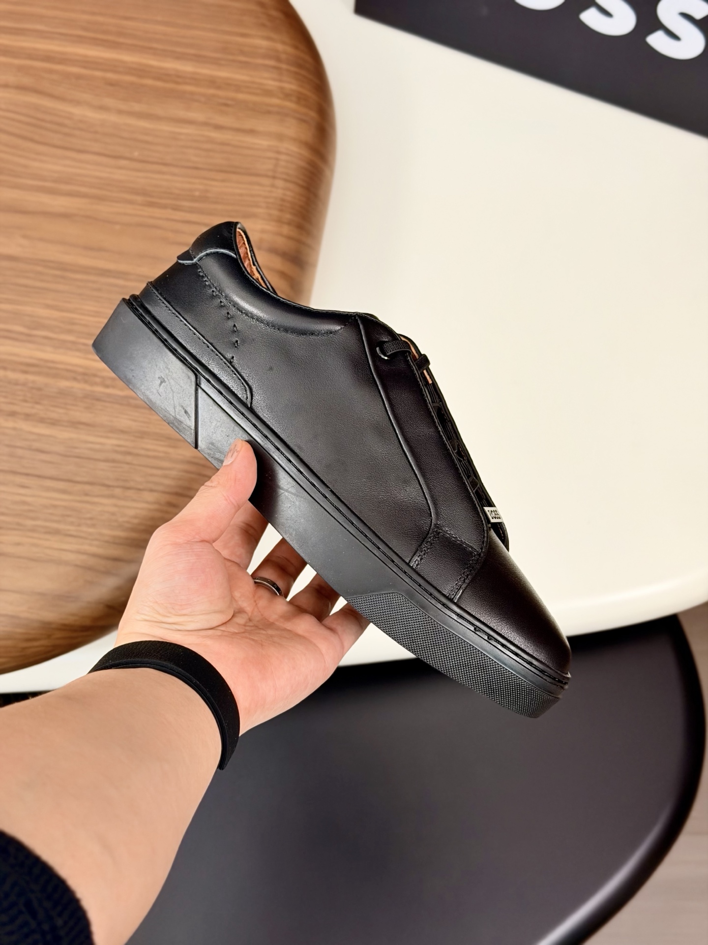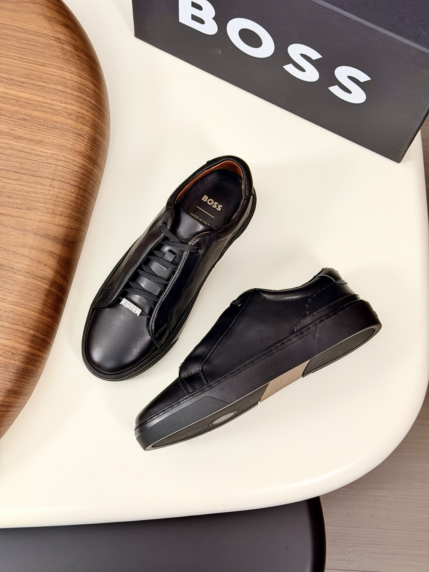 这款鞋子是AAAAA 1:1 质量 (非常棒). 使用了和原版一模一样的材料. 商标部分也保持了和BOSS一样. 图片拍摄是实物鞋子拍摄, 您所收到的实物保证和我们图片一模一样.